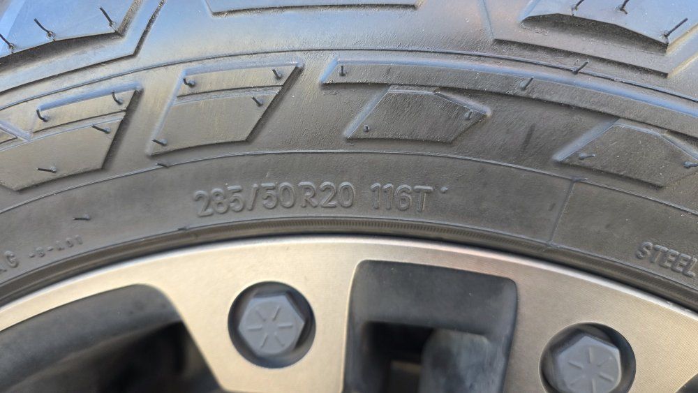 Tires are Nitto RECON GRAPPLER A/T 285/50R20 116T