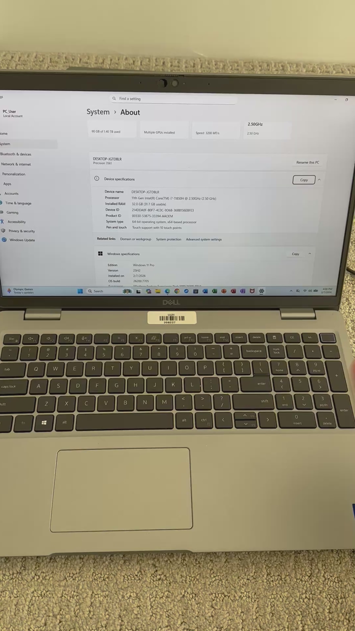 Windows 11 Pro OS latest 25H2 version,