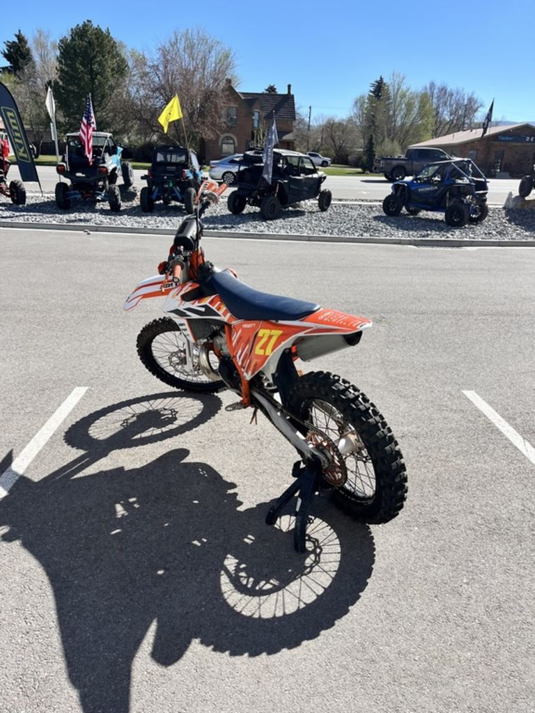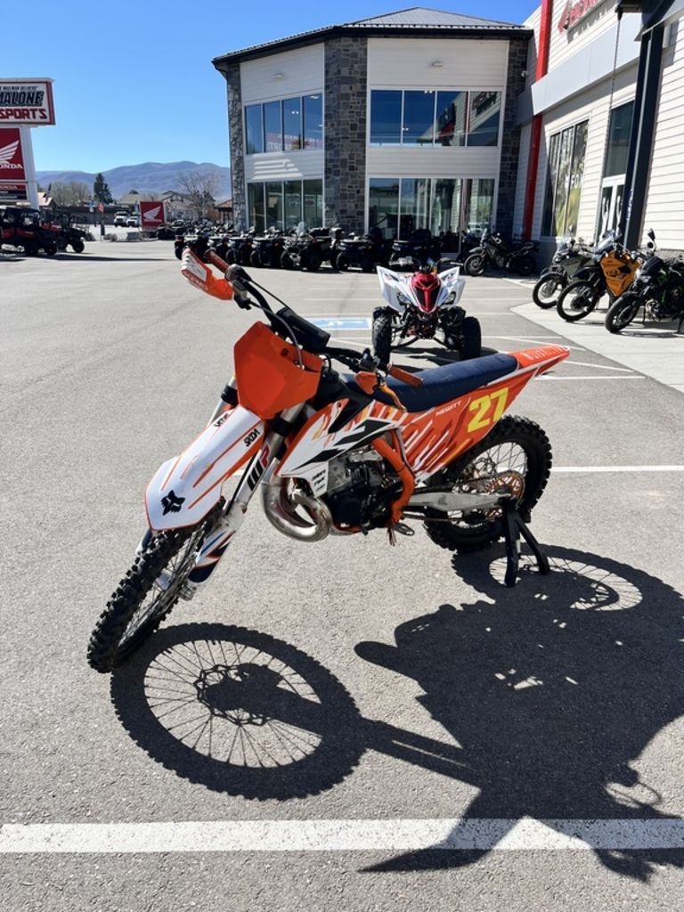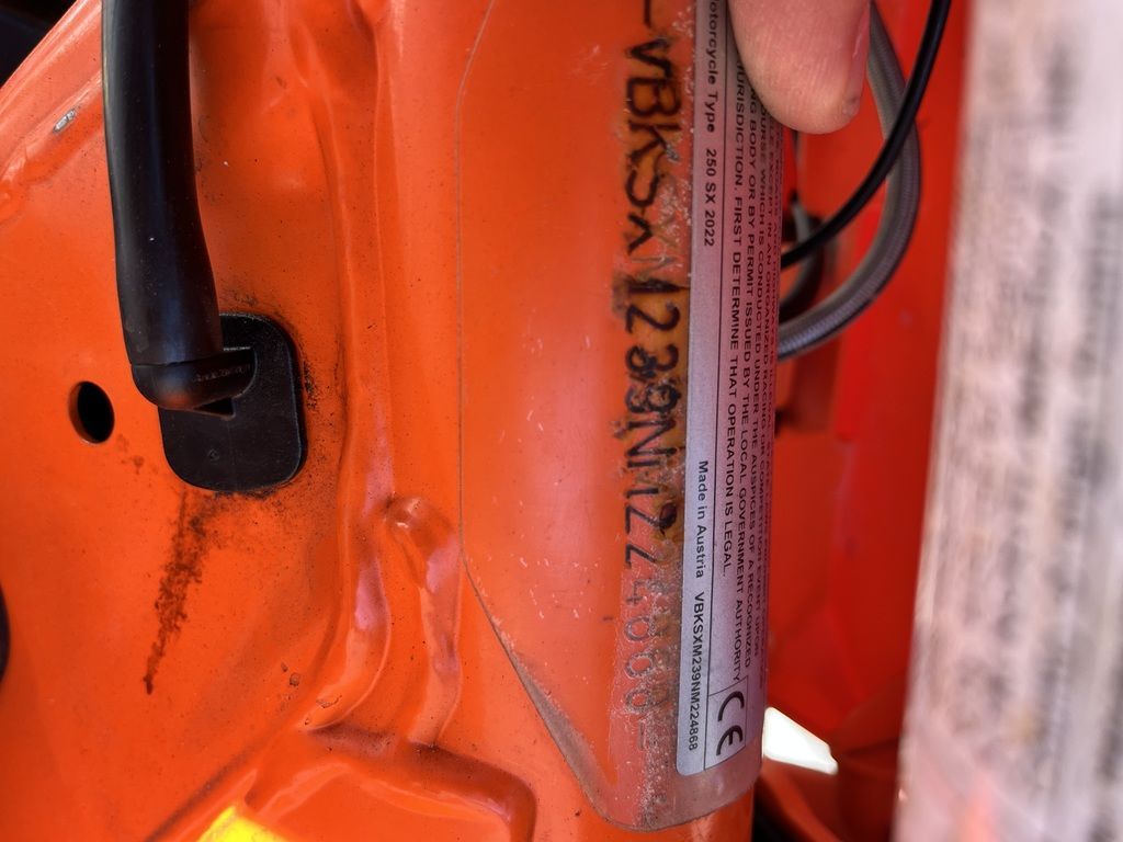 2022 KTM 250 SX STELLAR 2-STROKE PERFORMANCE The KTM 250 SX is a legend among motocrossers. Featuring a high-performance 2-Stroke engine, a proven state-of-the-art chassis, and top-shelf componentry, there are few other machines that come close to its sheer ferocity. This proven race weapon is the right choice for those who thrive on that glorious 2-Stroke sound while smashing out one hot lap after the next. Features may include: ENGINE & EXHAUST POWER PROGRESSION ENGINE The engine of the KTM 250 SX features the latest 2-stroke technology, with a counter-balance shaft for low engine vibration, as well as a reliable hydraulically operated DDS clutch. It has a twin-valve controlled power valve, which contributes massively to making the KTM 250 SX engine the most competitive 2-stroke in its class. Powering through its 5-speed transmission truly is an exhilarating experience. CHASSIS CONTROL AT THE CORE FRAME The frame is professionally crafted from hydroformed chromium molybdenum steel tubes that are robot welded, ensuring the highest levels of consistent quality. The stiffness has been precisely tailored for the most dynamic handling, and works in perfect harmony with the suspension to provide nimble agility without losing high-speed stability. The frame also features "no dirt" footpegs, which have a simple but effective self-cleaning system that ensures the footpegs return to their original position, providing complete control in all conditions. All SX frames feature the same highly durable powder coating as the KTM Factory machines and come with standard frame protectors. The subframe is made from lightweight aluminum, providing rear fender stability and strong support for the rider at little extra weight. ERGONOMICS & COMFORT COMFORT MEETS PERFORMANCE SEAT All KTM SX models feature a seat that perfectly matches the range's dynamic performance-oriented ergonomics. The seat cover features silicone strips that provide better feel and grip for the rider. The seat is conveniently fixed to the bike using one long, lateral screw, making it secure and easy to handle. BODYWORK & GRAPHICS Look the part DECALS In an ode to KTM's illustrious past in the motocross realm, the KTM 2022 SX range receives a nostalgic makeover, merging distinctive RED BULL KTM FACTORY RACING colors with old-school inspired design. A new blue seat and orange frame complete this visually striking package.