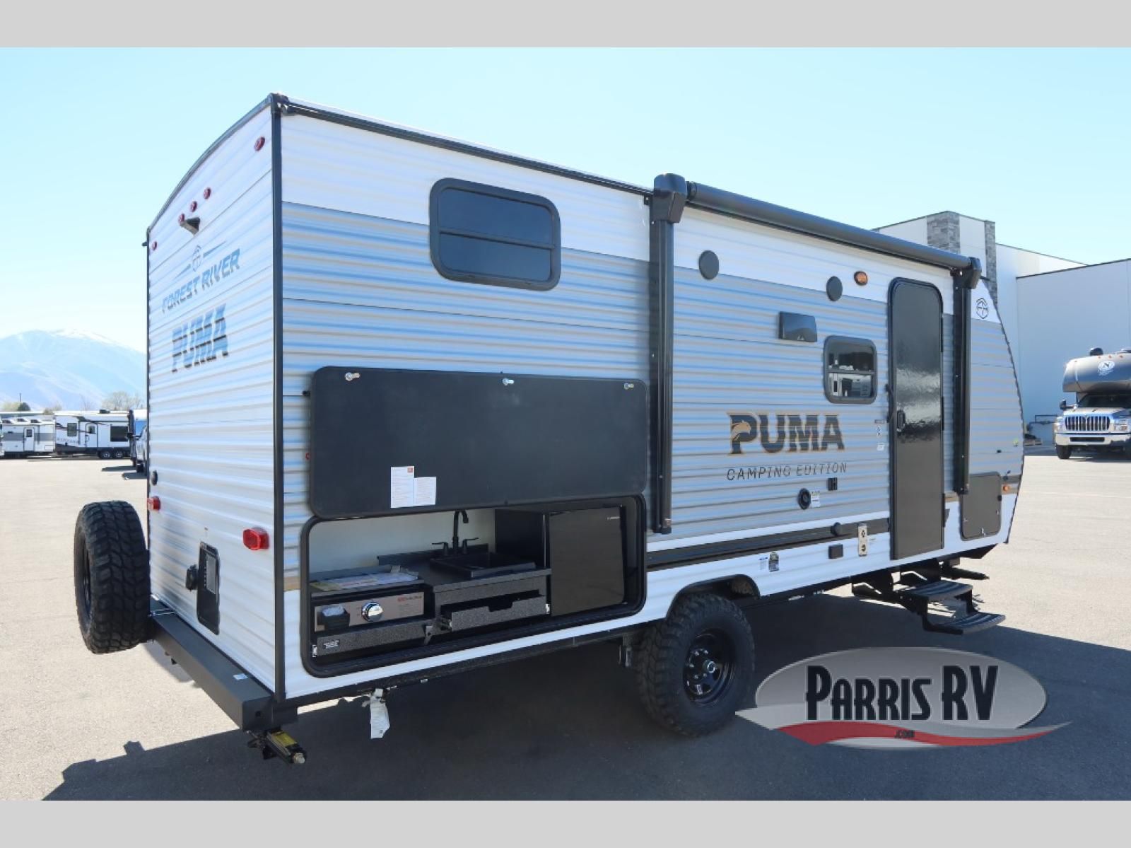 The Puma Camping Edition by Forest River offer an affordable travel trailer for rookie campers or seasoned RVers! They are built with 5/8" tongue and groove plywood flooring and a front diamond plate for added protection. There are also exterior magnetic baggage door latches, back up camera prep, a battery disconnect. Head inside to find Thermofoil countertops with a smooth drop edge, bedroom USB ports and outlets, and pleated shades in the living room.