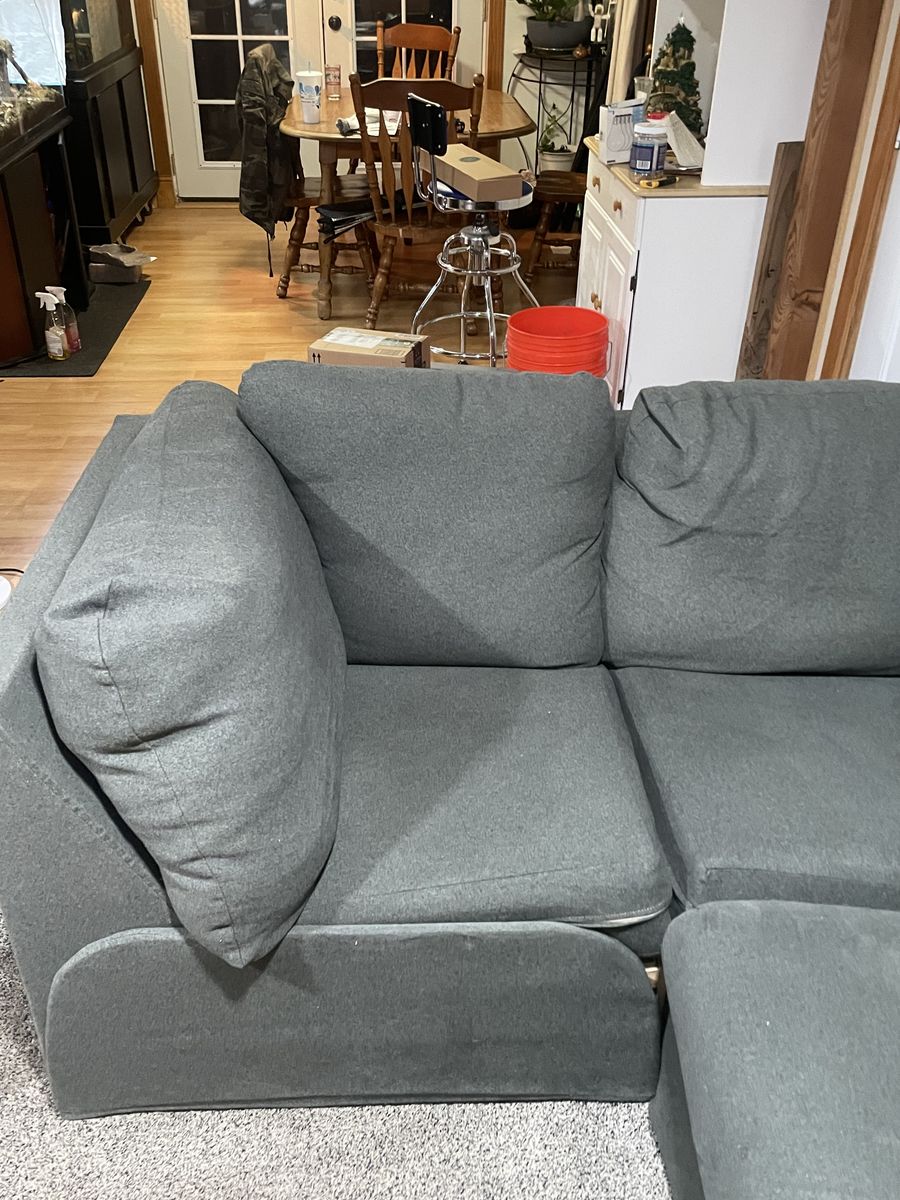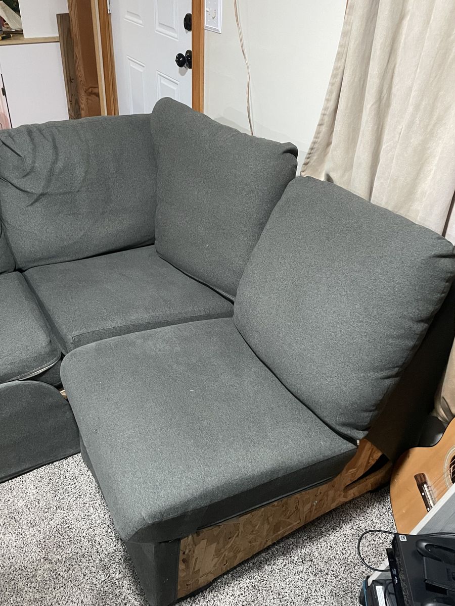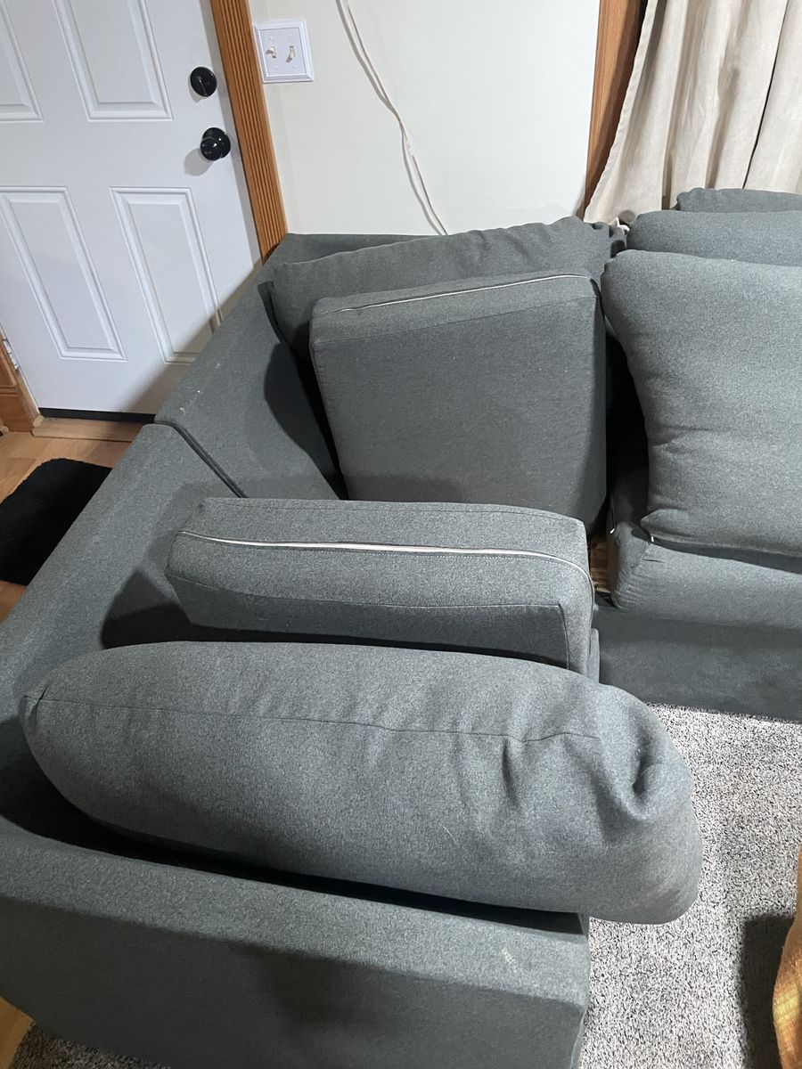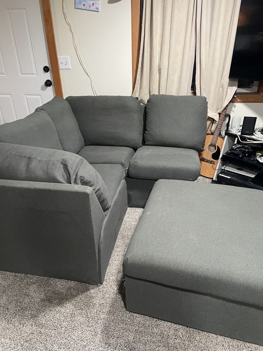 VenmoIn great shape, covers can be washed, can separate into individual pieces for easy moving and placement. Minor damage to ottoman(cat scratching) Asking $300, can negotiate!