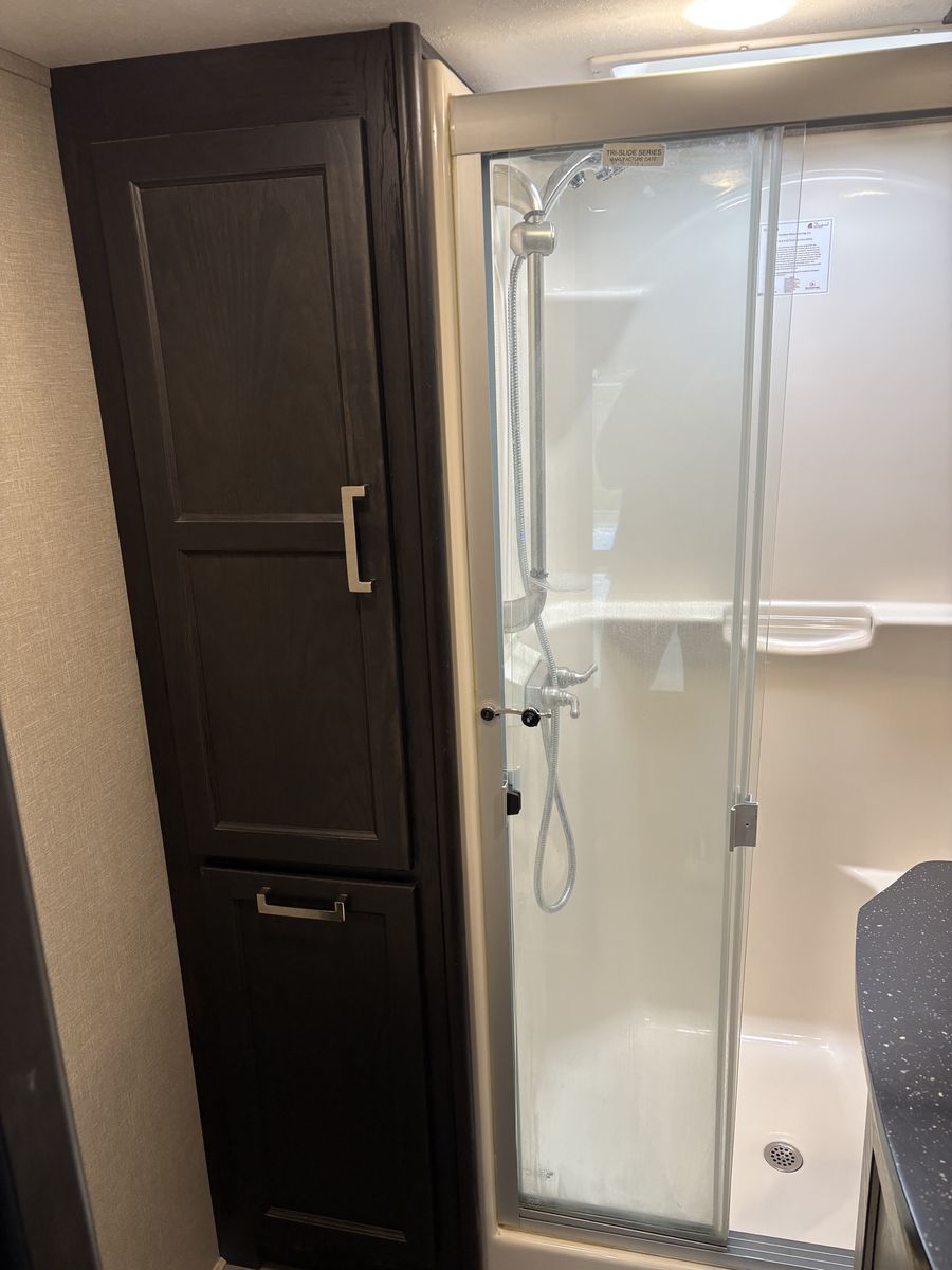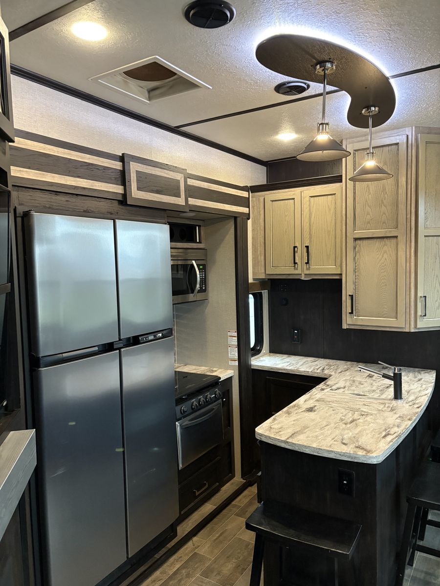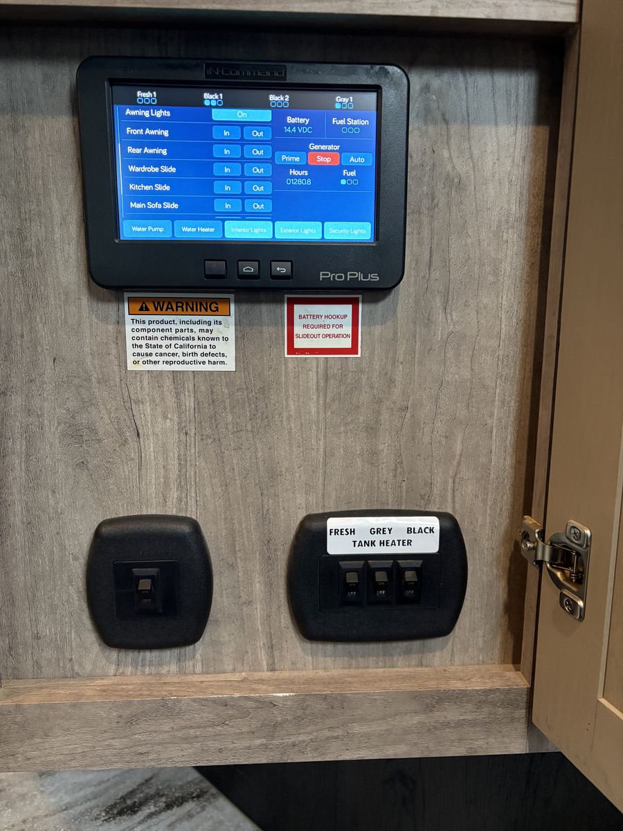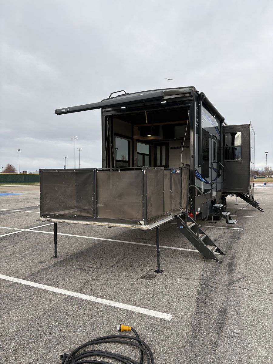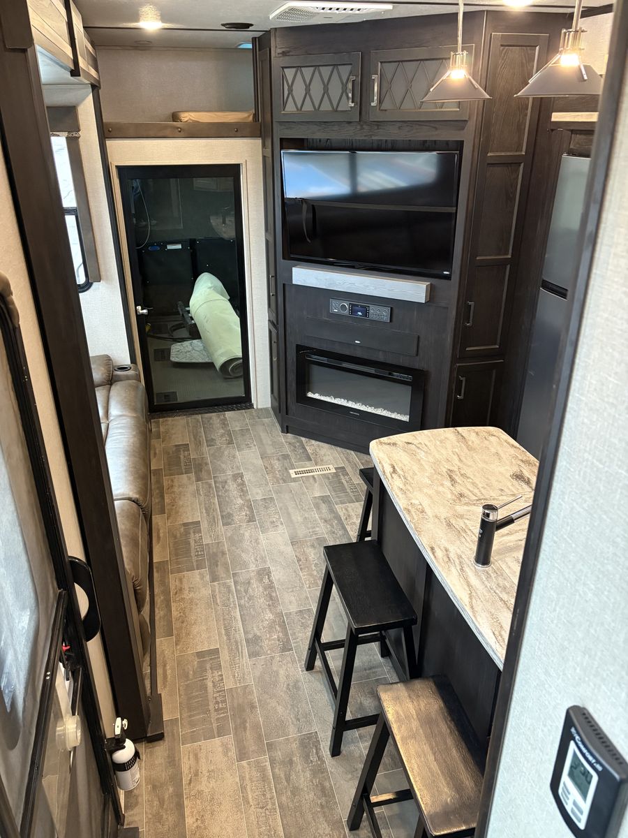 Great 5th Wheel completely loaded. Can operate almost everything with your phone. 11 ft. Garage with 1/2 bathroom. Two 30 gallon fuel tanks (1 for generator and separate one with fuel pump for toys). 12 gallon hot water heater and heated tanks.