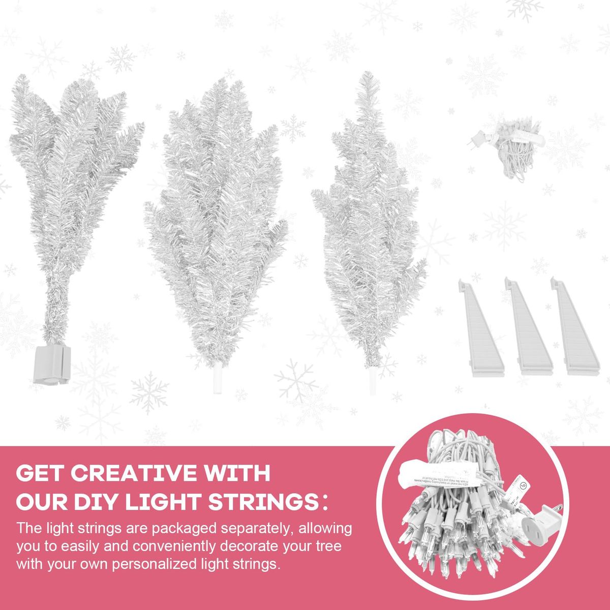 NATURAL LIFELIKE APPEAL: The 4ft white Christmas Tree with 122 PVC Branch Tips, which are very vivid and beautiful when fully unfolded. You can put this illuminated Christmas tree anywhere, such as the living room, garden, bar, hotel, supermarket or any other place. It is suitable for indoor and outdoor Christmas and halloween decoration. WHITE CHRISTMAS TREE WITH LIGHTS: This Artificial Christmas Tree will light up any room in your home. There are 50 Warm White lights evenly scattered on the branches of the whole artificial Christmas tree. IDEAL SIZING, FAKE CHRISTMAS TREE: Tree stands 4 feet tall and 25 inches in diameter at the base. Combined with exquisite craftsmanship, this tree is resistant to pressure and remains steadfast, providing you with lasting enjoyment year after year. HIGH-QUALITY PVC MATERIAL: Constructed with high-quality PVC material, our tree is not only visually appealing but also safe for your loved ones. The leaves are made from environment-friendly and non-flammable PVC, ensuring both the beauty and safety of your festive decorations. Combined with exquisite craftsmanship, this tree is resistant to pressure and remains steadfast, providing you with lasting enjoyment year after year. ATTENTION TO DETAIL, FUN FOR THE WHOLE FAMILY: Designed and decorated to feel lifelike, our Christmas collection features stunningly detailed decorations, Family and guests alike will marvel as you transform your home into a winter wonderland, capturing the beauty and charm of the holidays with our seasonal décor. 3-4-26 265398 00.1 rt46