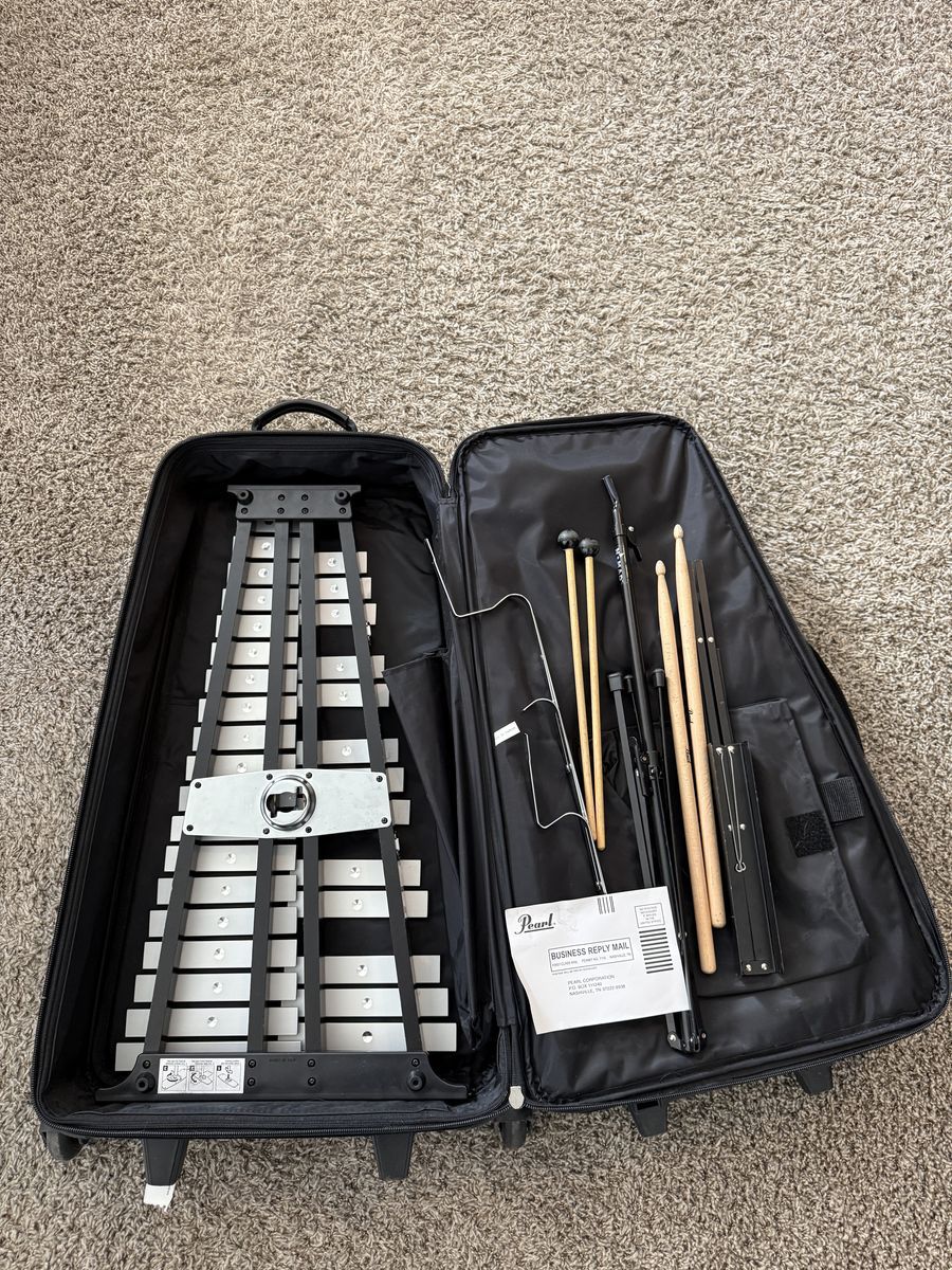 Pearl Percussion Learning Center bell kit with rolling case/ retractable handle. $290. Please text. Thank you.