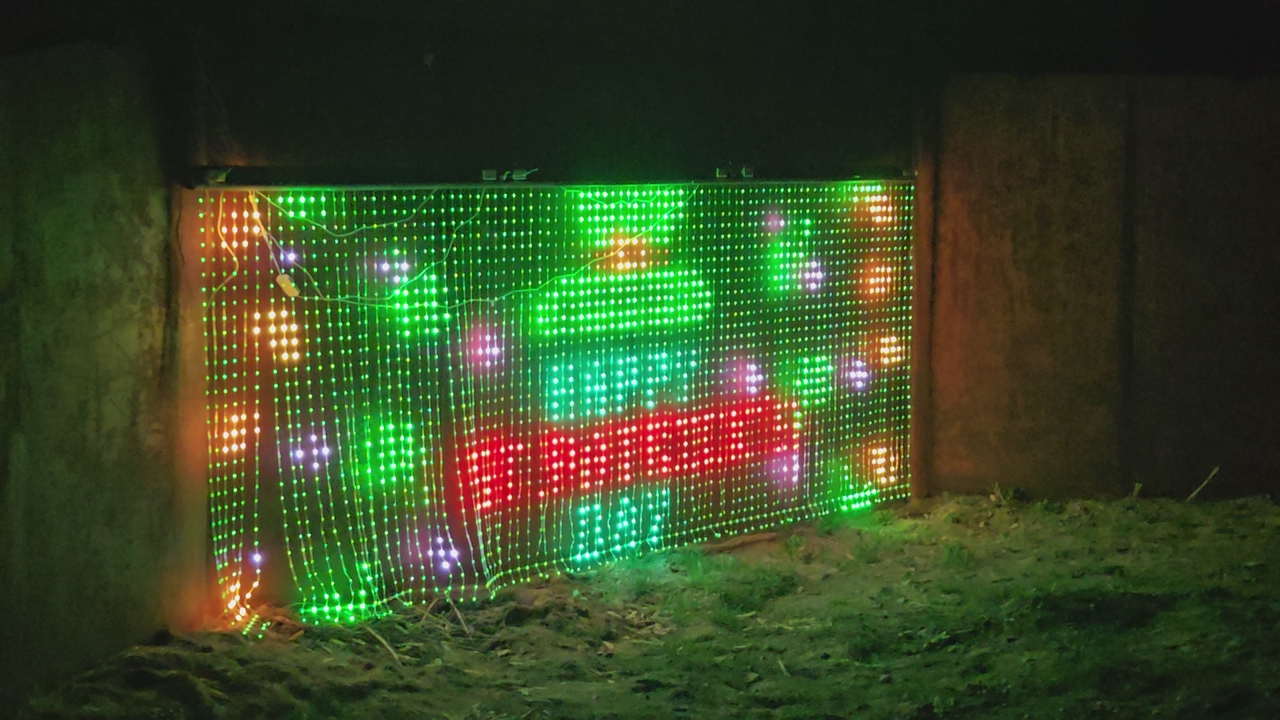 normally $600+. we had plans to setup in front of our house every holiday by simply "unrolling" the lights off the 2x4 that we installed them on but it doesn't fit our space as well as we'd hope. this thing is huge! approx 16' wide and 6' tall. if you are interested come buy it at night so you can see it in all it's glory. could be removed from the 2x4 if you prefer to not have it mounted but if you can just roll it up and put in your garage or side yard it can be an easy setup to hang on a fence etc.
