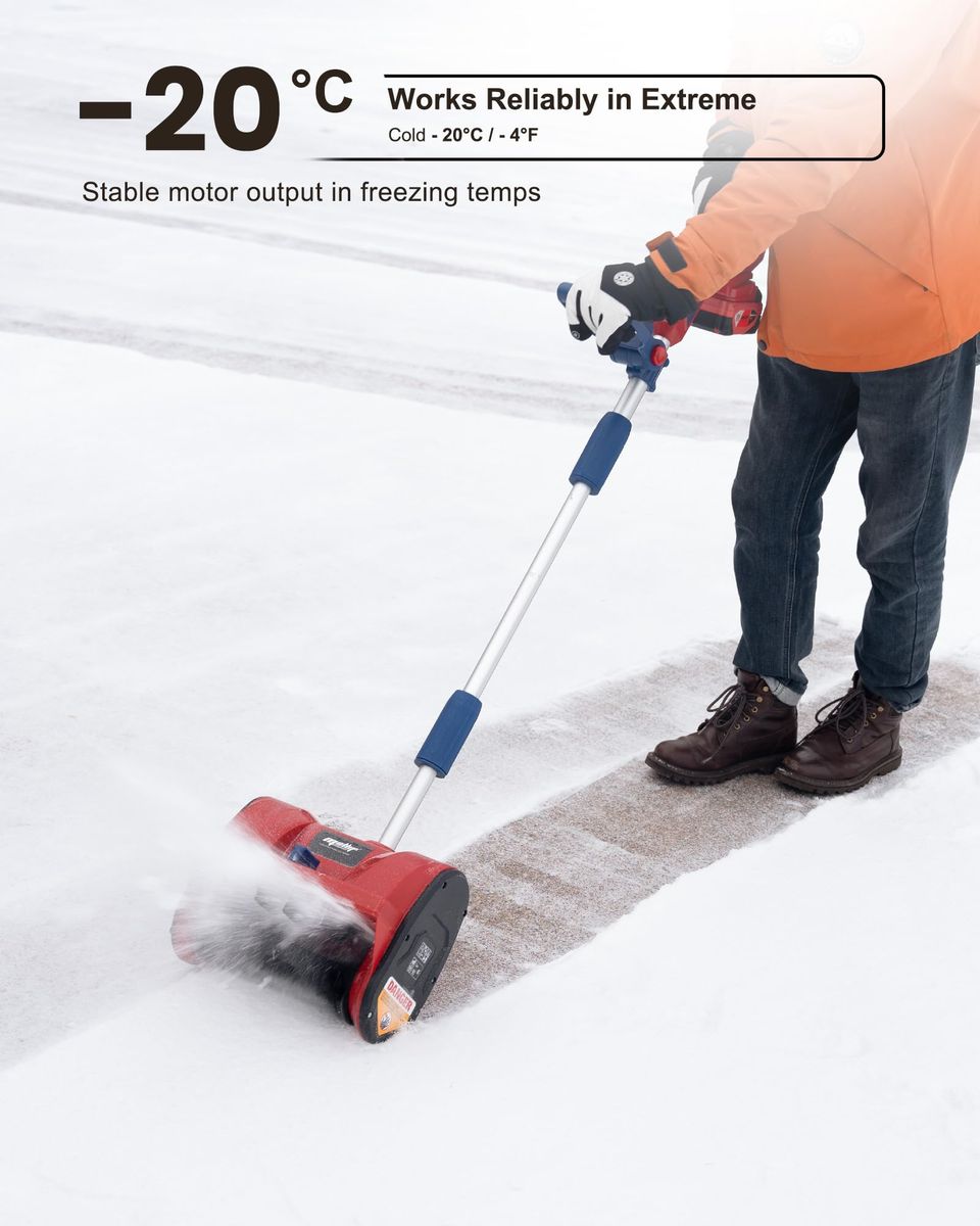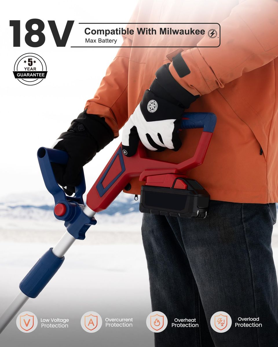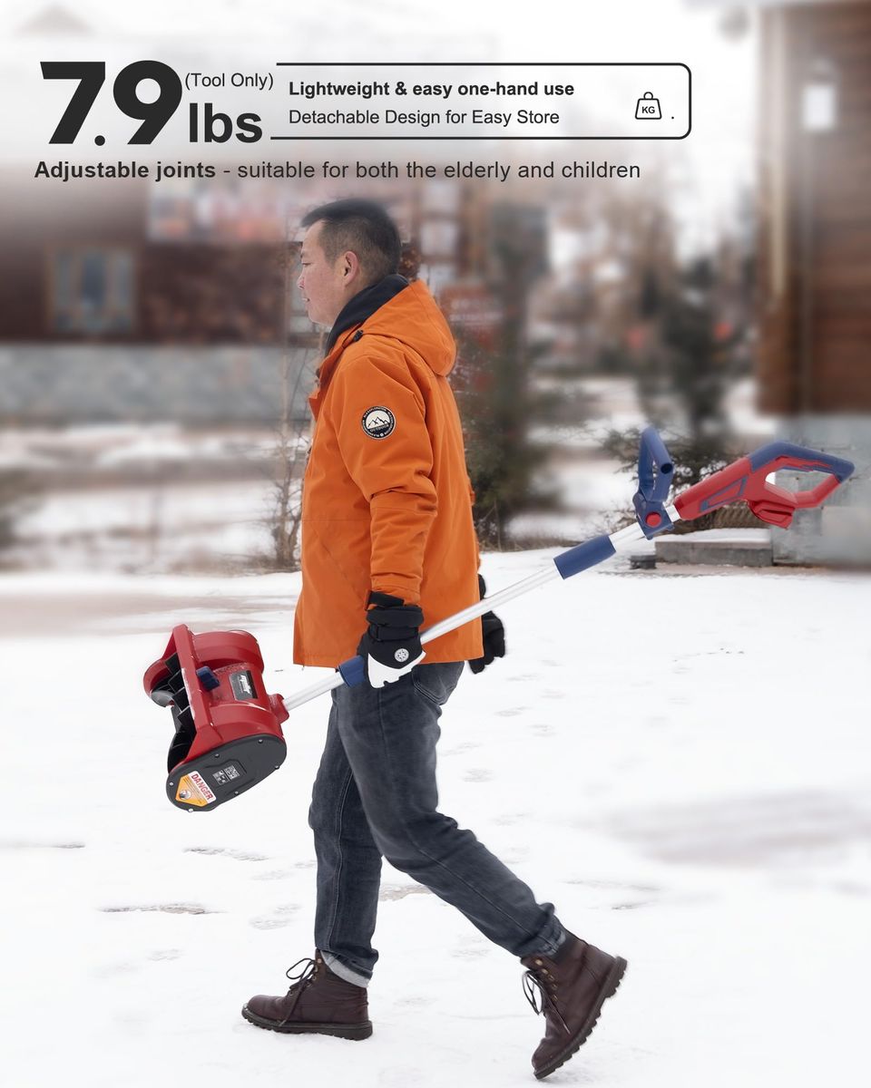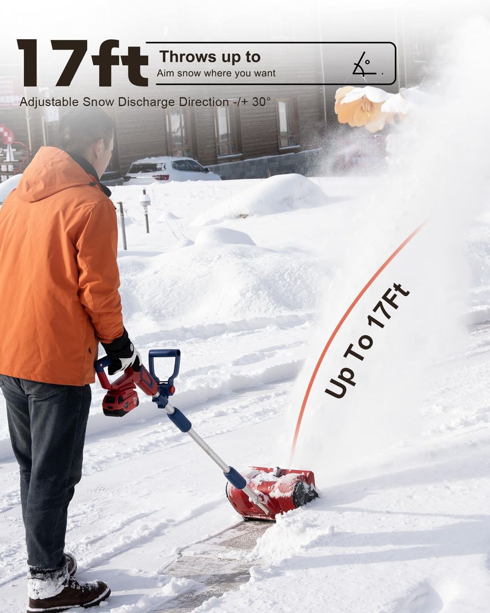 Compatible with Milwaukee 18v batteries. Built-in smart chip provides over-voltage and over-current protection for safe and reliable performance. The package DOES NOT include any batteries and chargers! High Efficient Brushless Motor: Equipped with a powerful brushless motor delivering up to 2,400 RPM, the Mellif snow blower offers longer runtime, higher durability, and 30% more working efficiency compared to brushed models Fast & Effective Snow Clearing: With a 12-inch clearing width, 6-inch clearing depth, and up to 17 feet throwing distance, this snow shovel quickly removes snow from driveways, sidewalks, patios, and decks—perfect for residential winter needs Built for Harsh Winters: Made with durable materials and stable lithium cells, this cordless snow blower delivers reliable performance even in extreme cold down to -20°C (-4°F) Lightweight & Adjustable Design: Weighing only 7.9 lbs (without battery), this snow shovel reduces fatigue for long use. 60° adjustable chute controls snow direction easily(left, right, or straight), while the detachable design makes storage simple Safe & User-Friendly Design: Features an ergonomic auxiliary handle and dual safety switch for comfortable operation, plus a 5-Year Warranty for long-term peace of mind 2-26-26 230659 00.3 rt130
