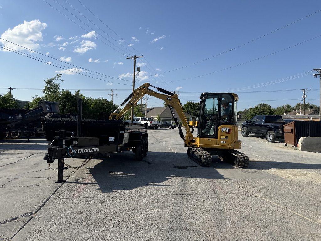 CAT 302.7 mini excavator paired with a dump trailer for a complete dig and haul setup. This combo allows you to dig, load, and remove material efficiently without needing multiple rentals.