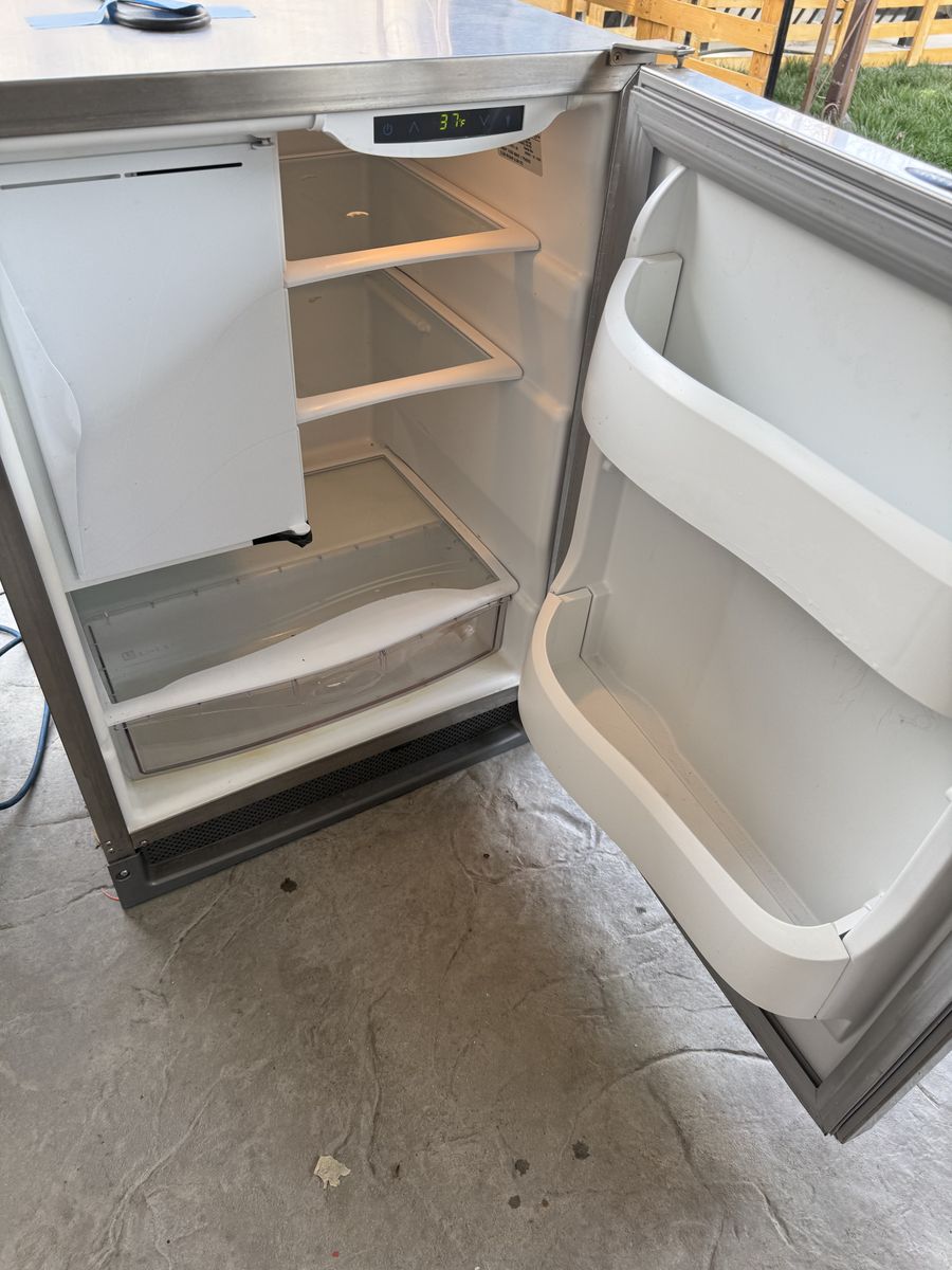 Uline brand. Has small freezer and radius cube ice maker. Stays cold. Ice maker has not been tested
