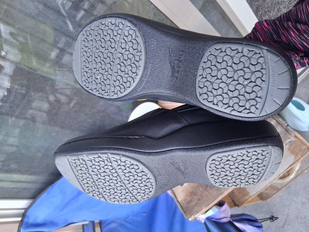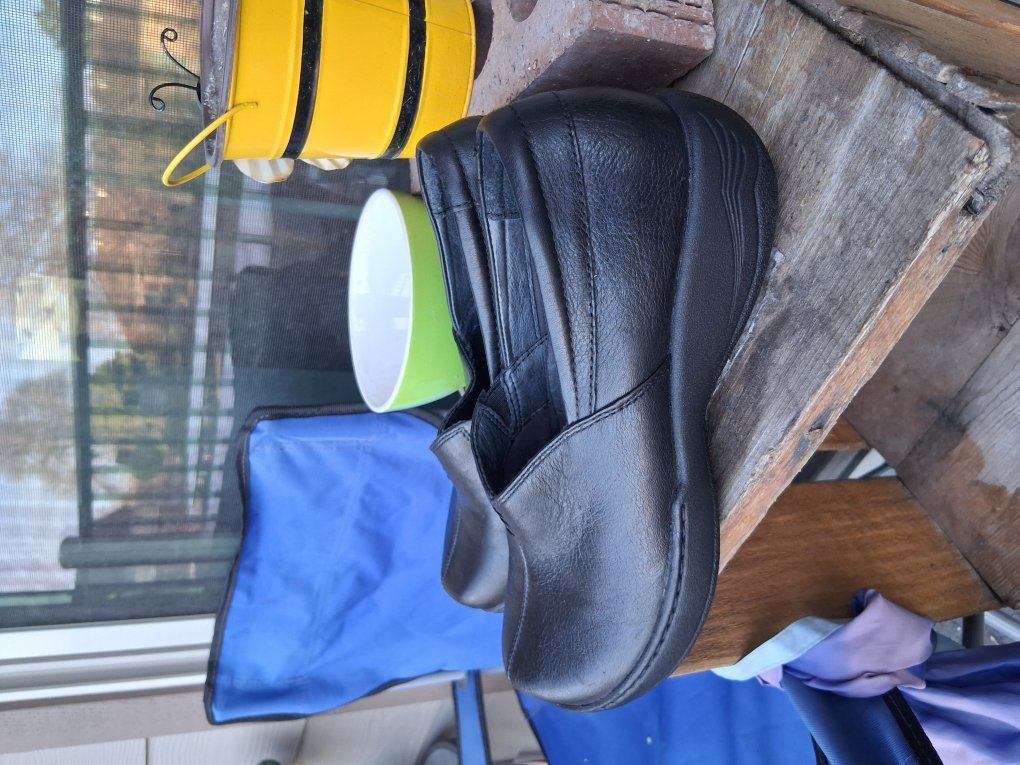 Black leather slipons, regular width. Us sz 7,great condition.