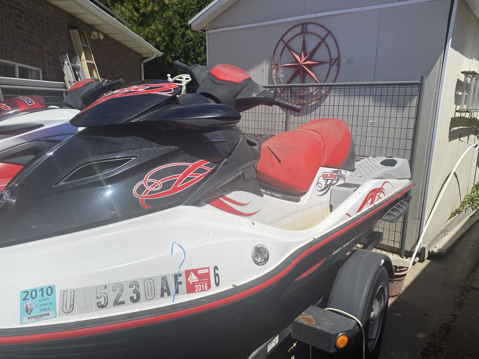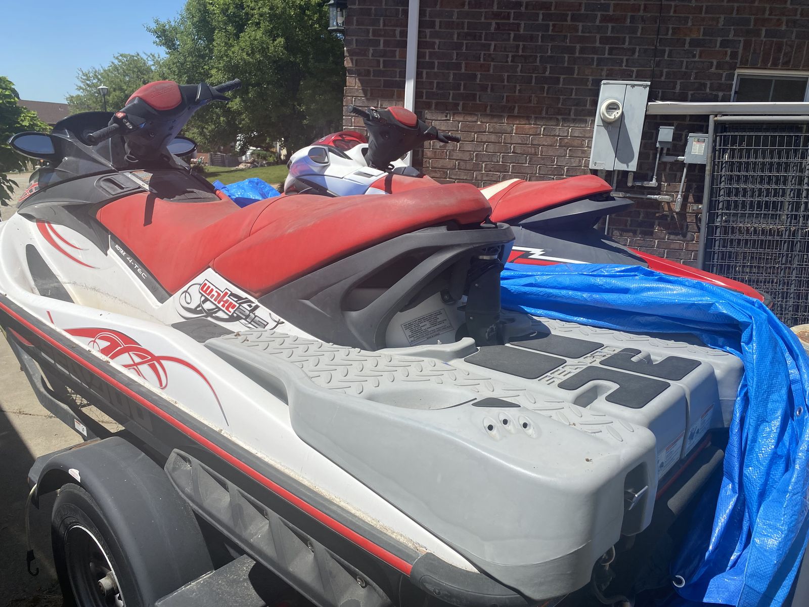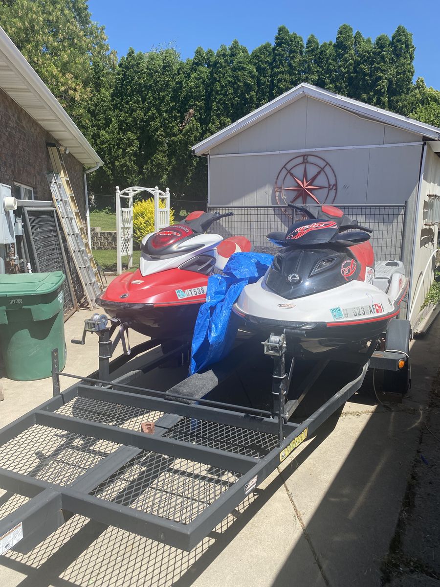 PayPal2,2008 seadoo waverunners with very low hours. The 3 seater is a wake board special and the 2 seater is an XRP. always covered. Trailer has new tires. They will need new batteries. Many acces to include water tube, ropes and life vests.