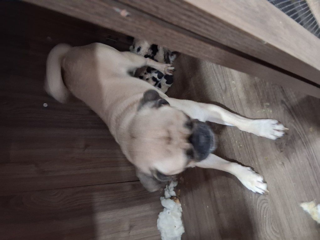 Willow is an energetic very playful pug. She is needing a new home as I am moving to an apartment and there's pet limits on puppies. She takes a minute to warm up but is extremely loyal. Shes been socialized with other dogs, but she does tend to be a little much for them (little dog syndrome). So being an only fur baby or getting a rough and tumble dog her size is best. She lives to wrestle with our other dog. A slow introduction is also important with another dog. She has never bitten anyone and has been socialized with little hands and cats. She does try to wrestle the cats too and they dont want to be her friend as much as she wants them to be. She loves to lay at your feet or next to you on the sofa. She is kennel and leash trained and will come back on command. Im able to let her out in the front yard and she goes out and comes right back. I have to move by Saturday and cannot take her with me. She will come with a brand new kennel, dog bed, dog food and water dishes, dog food, and a leash (she will need a harness though). It will be best to keep her on a leash until she gets to know you well and learn your voice. Im asking a $100 rehoming fee to make sure she goes to a good home.