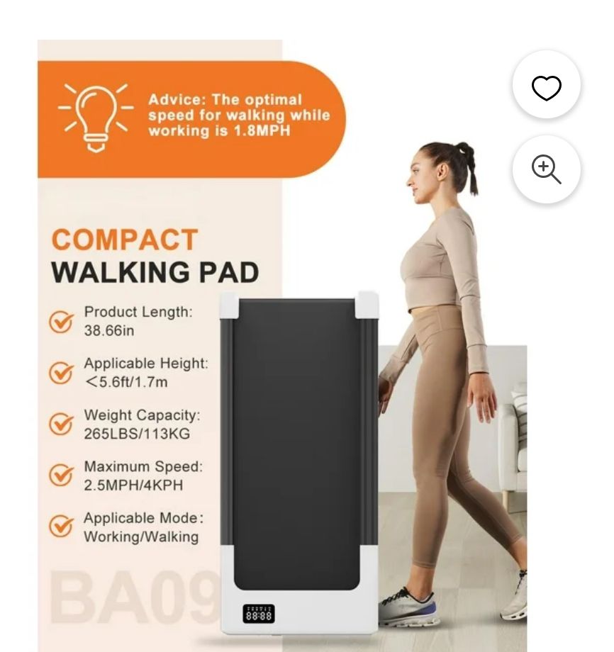 Elevate your home or office fitness routine with the SSPHPPLIE Walking Pad. This compact and lightweight treadmill offers a 15" x 31.5" walking area and a speed range of 0.6-2.5 MPH, allowing you to walk or jog comfortably. Featuring a sleek, streamlined design and a maximum weight capacity of 250 lbs, this versatile walking pad can be easily stored under furniture or against the wall when not in use. Powered by a 1.2 HP motor , the SSPHPPLIE Walking Pad provides a smooth and efficient workout experience without the need for bulky handrails. Enjoy a versatile 2-in-1 walking pad that can be used for both walking and jogging, with a speed range of 0.6-2.5 MPH to meet your fitness needs. The walking pad features a spacious 15" x 31.5" walking area, accommodating users up to 250 lbs with its sturdy design. Weighing only 33 lbs, this compact treadmill can be easily stored under a desk, bed, or against a wall when not in use, saving valuable space. Powered by a 1.2 HP motor, the walking pad offers a smooth and quiet operation, allowing you to stay active while working or relaxing at home. Evolutionary upgrade presenting a sleeker, more organic shell profile. Enjoy the upgraded, more rounded and streamlined exterior shell for a modern and sleek appearance that complements your home or office decor.