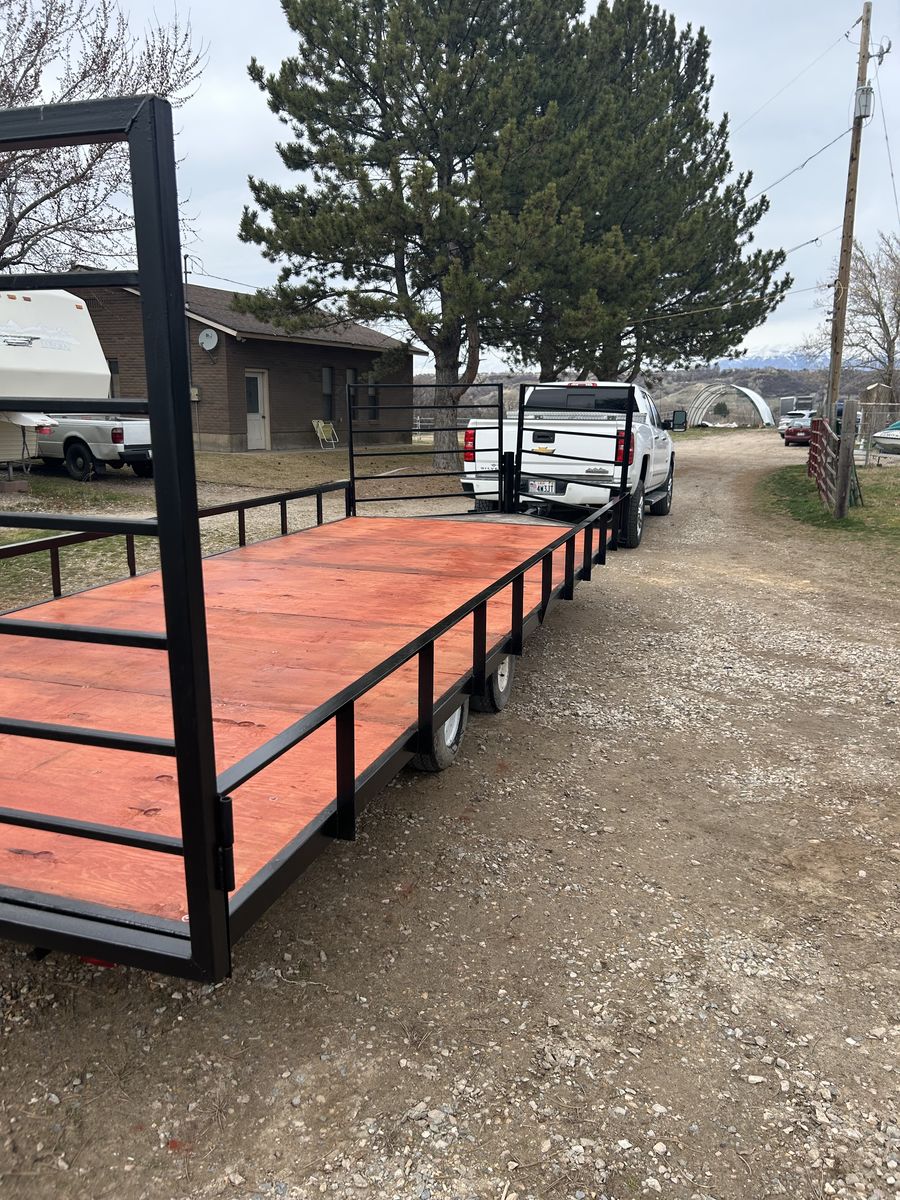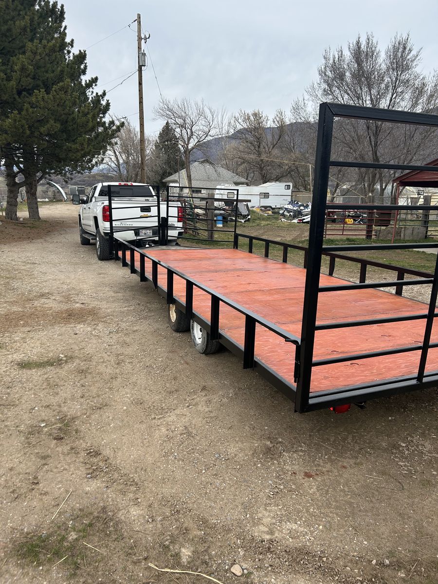 I've went all through this trailer you can see in the last picture I took it all the way down wire wheeled every inch and put a rust inhibitor on then two coats of paint has all new deck that's 3/4" plywood not wafer board, all new wiring and lights tires in great shape has one new axle. each axle is rated for 3500lbs. The box is 20' with another 3' to the vee ive had two side by sides on it both two seaters but fit. Could haul 6 wheelers and about anything else. bearings all repacked it's ready