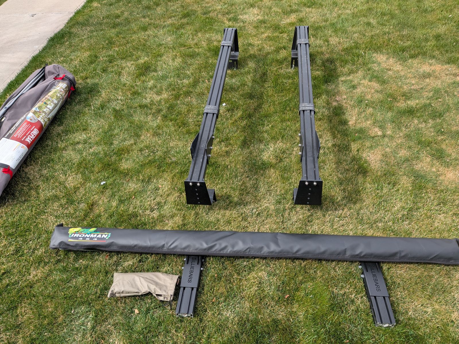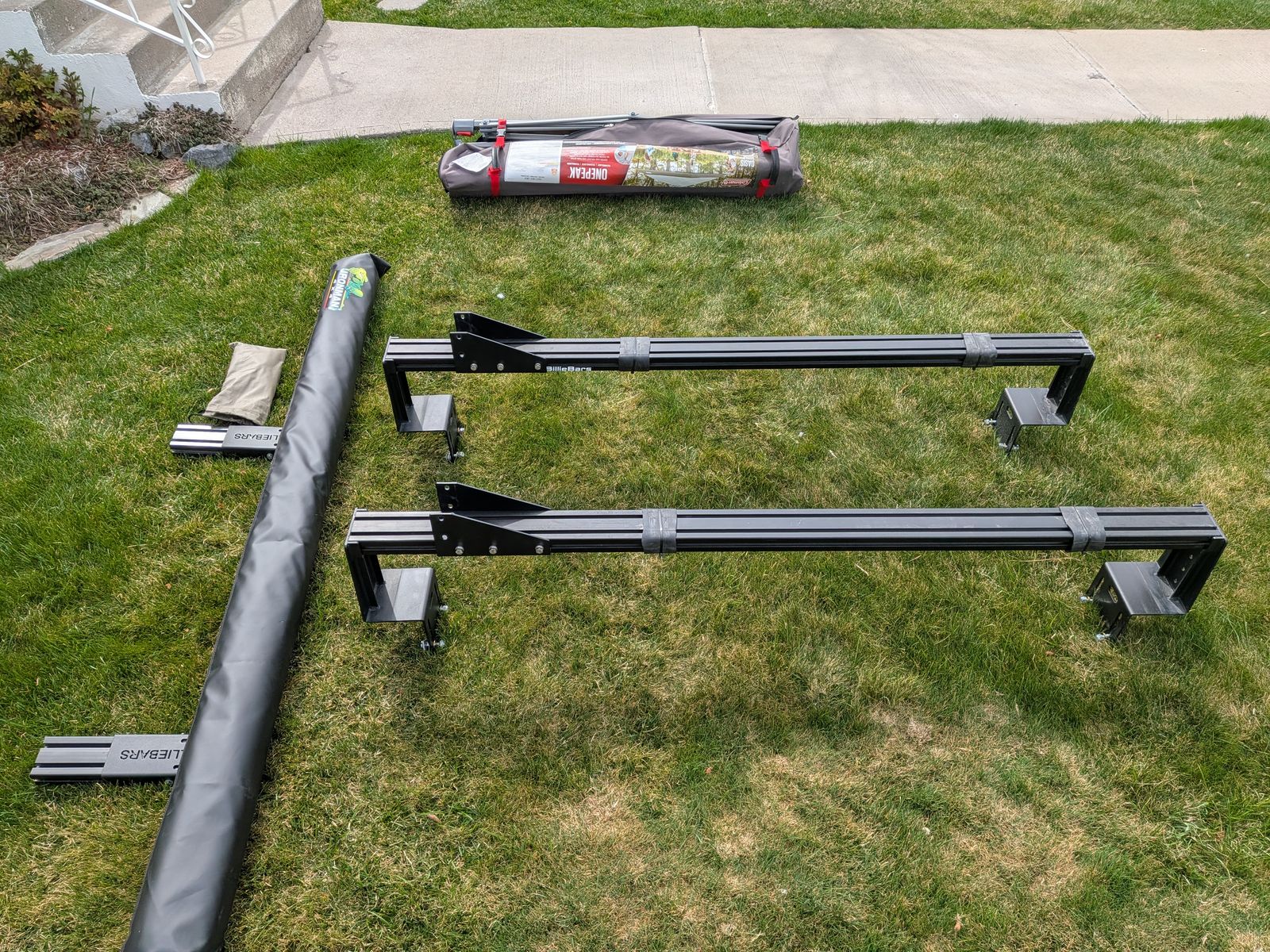 ZelleEverything is like new and awning was only set-up once. Has a little dirt on the bars, but there's not even a scratch anywhere. I had this set-up on my 22 Tacoma and don't have a use for it since I sold the truck. Over $1200 for all of this when I bought new a year and a half ago. Must take all.
