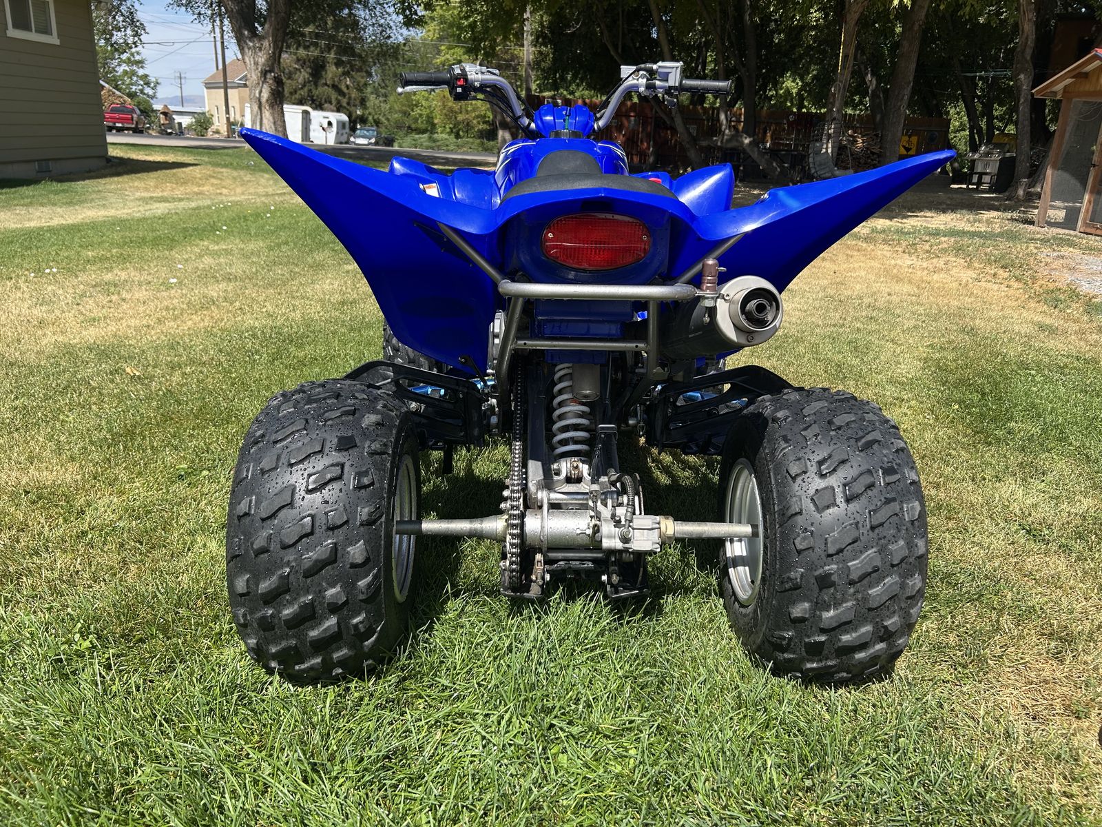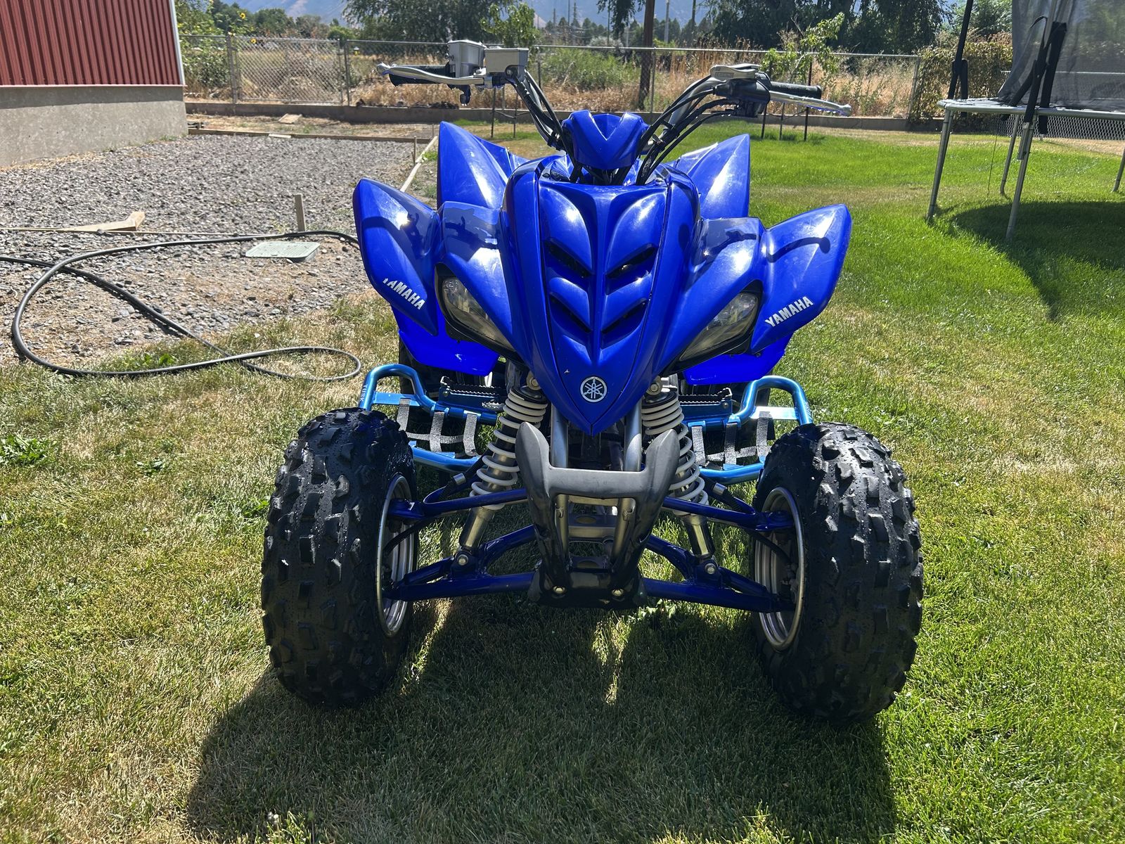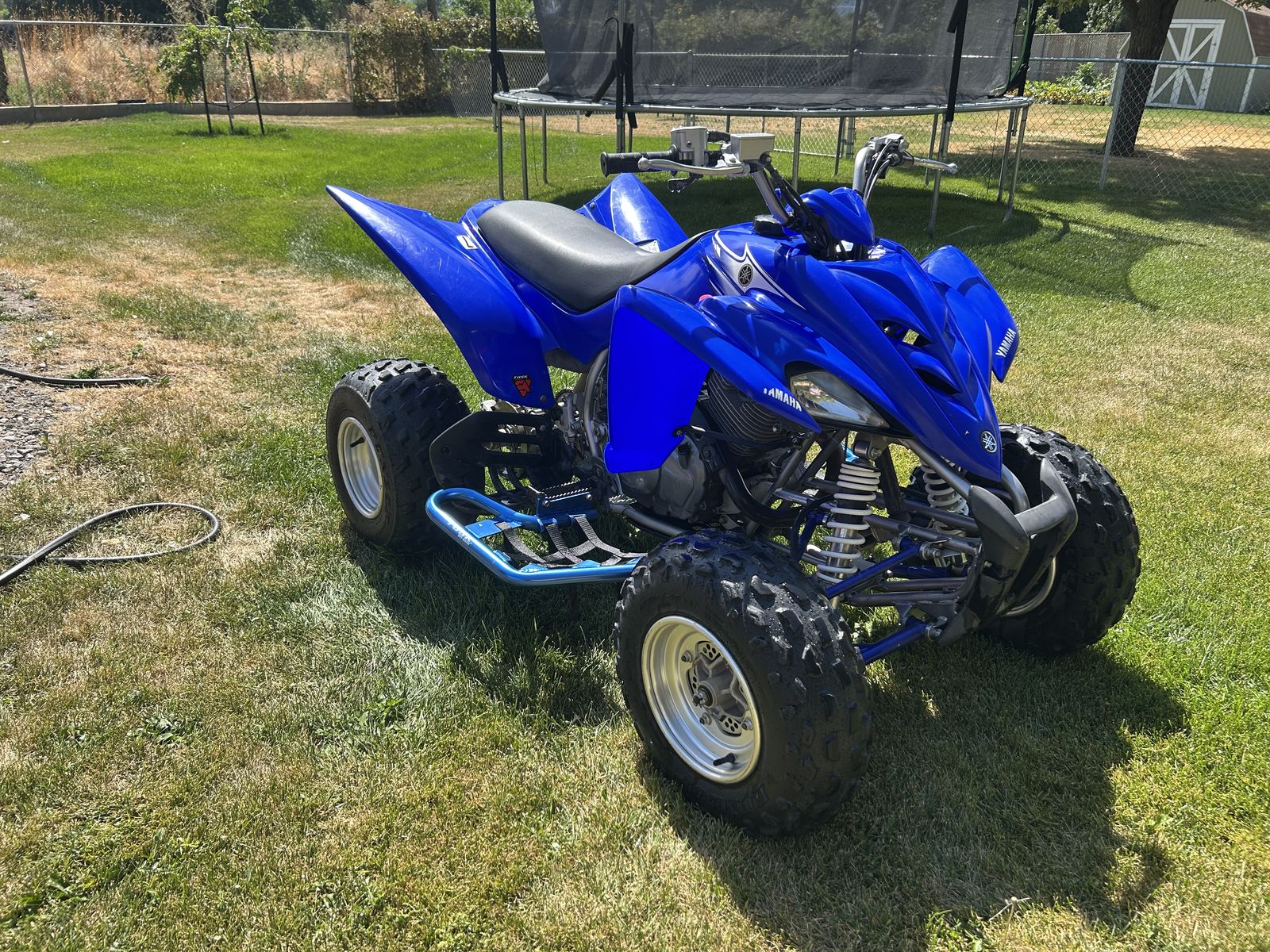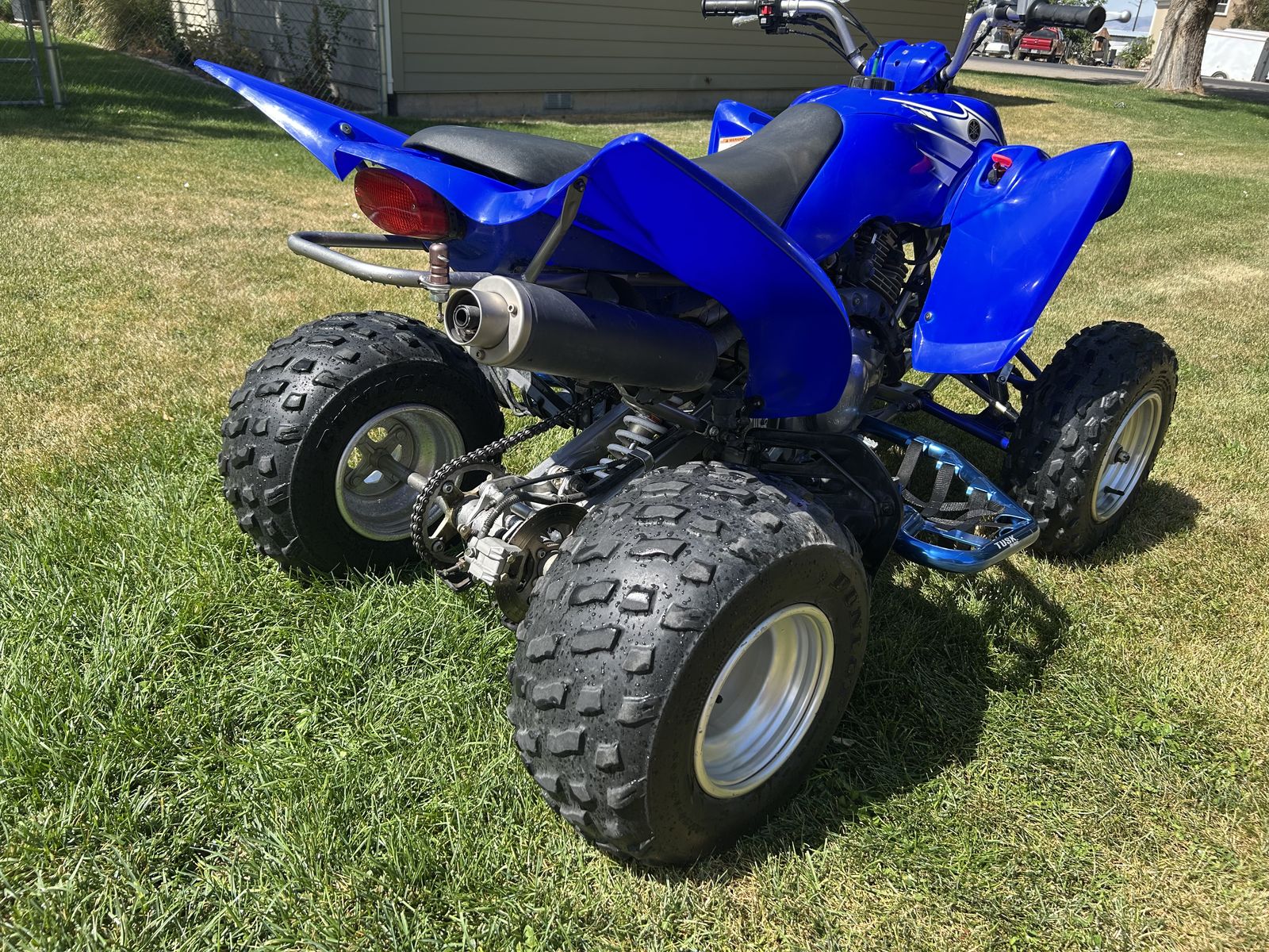 VenmoThe 2007 Yamaha Raptor 350 is a reliable, lightweight sport ATV featuring a 348cc air-cooled, 4-stroke engine with a 6-speed manual clutch and reverse. Known for its versatility, it is suitable for trail riding, dunes, and entry-level riders. Common features include a 2.4-gallon fuel tank, electric start, and a 43.1-inch width. Title in hand, new paddles on black wheels included. Accessory nerf bars, flag holder.
