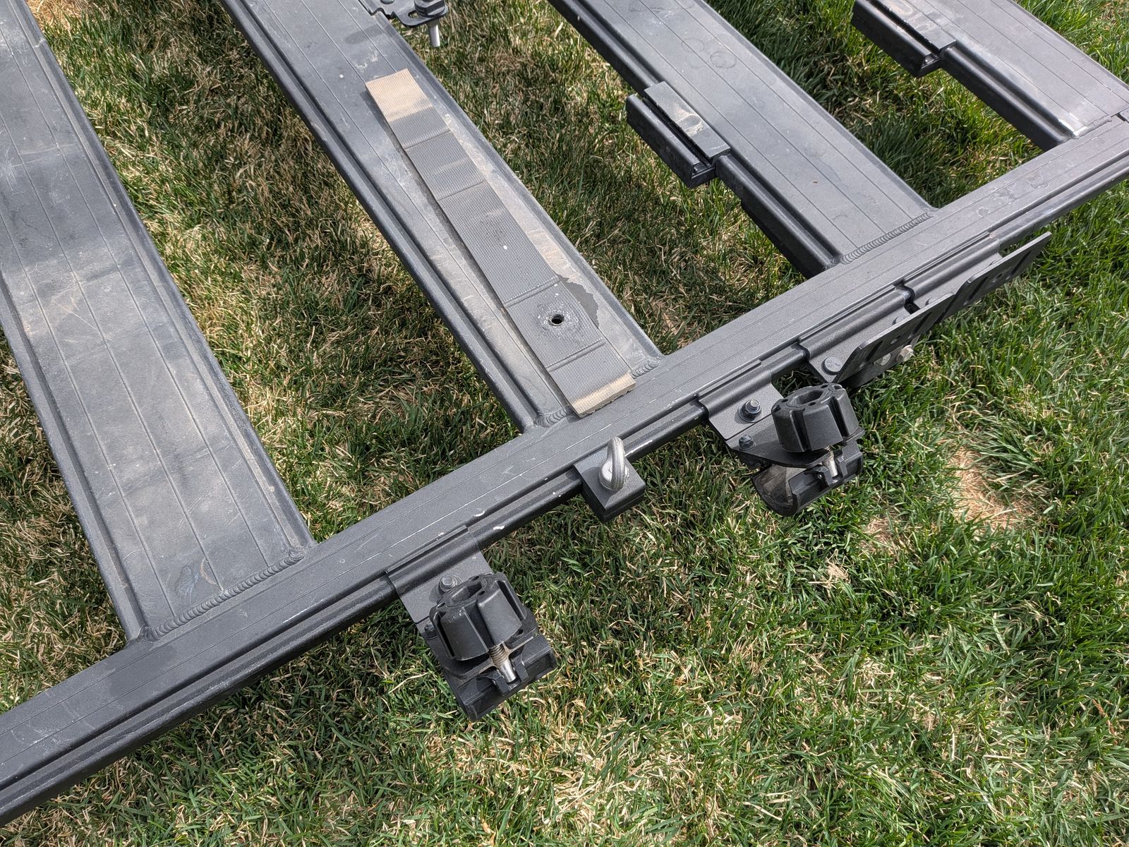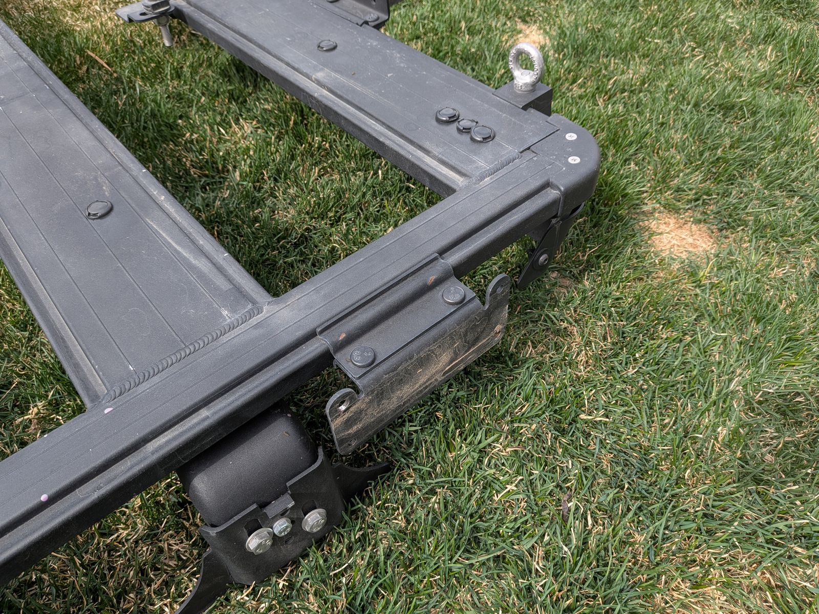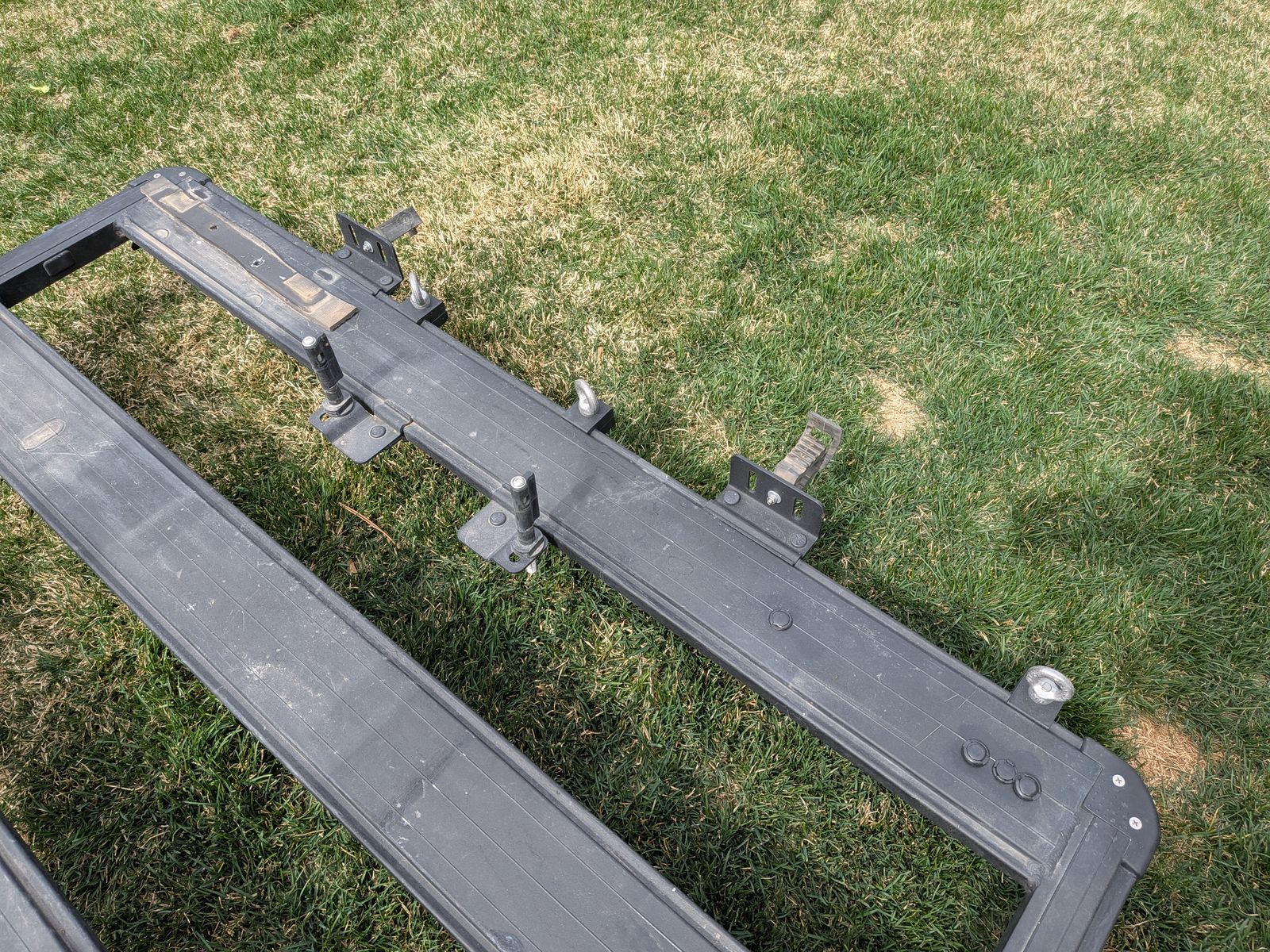 ZelleI wanted to keep this since it is so solid and I love how the accessory mounts attach, but I needed a full rack, so this one must go. It has several different mounts such as awning, shovel, eyelets, ski, etc. Nice rack in very good condition and will clean up to look almost new. Save a bunch of money!