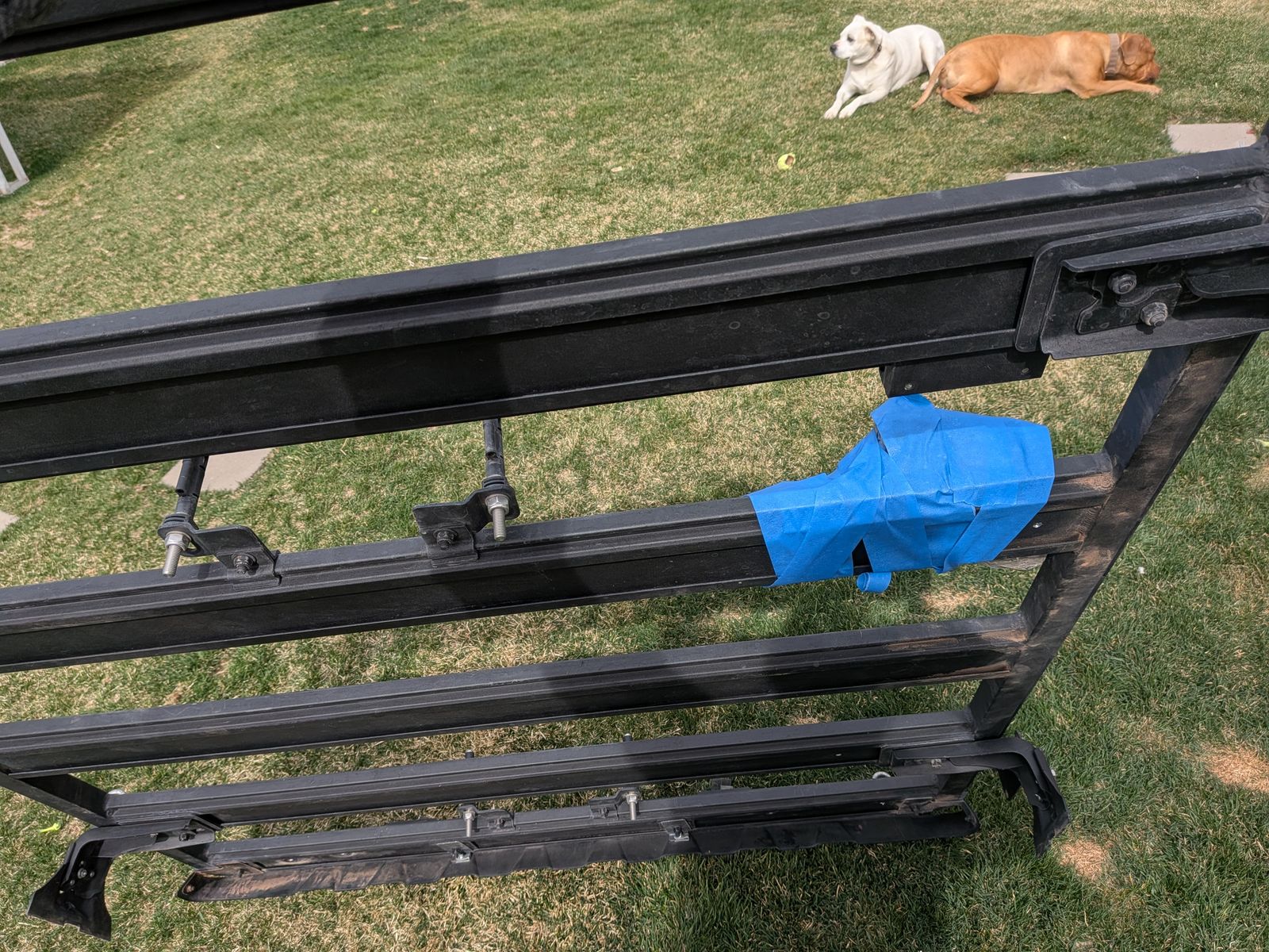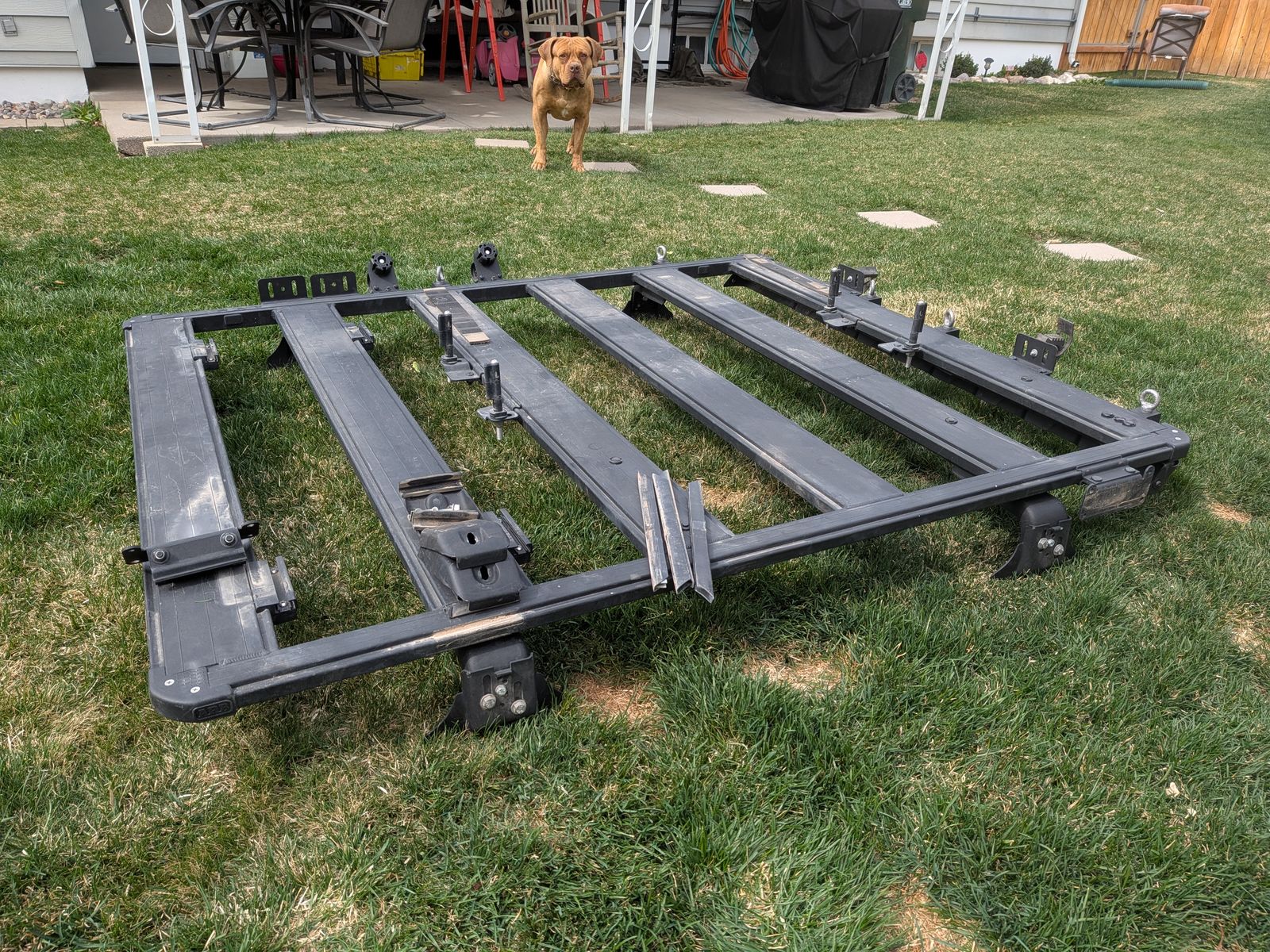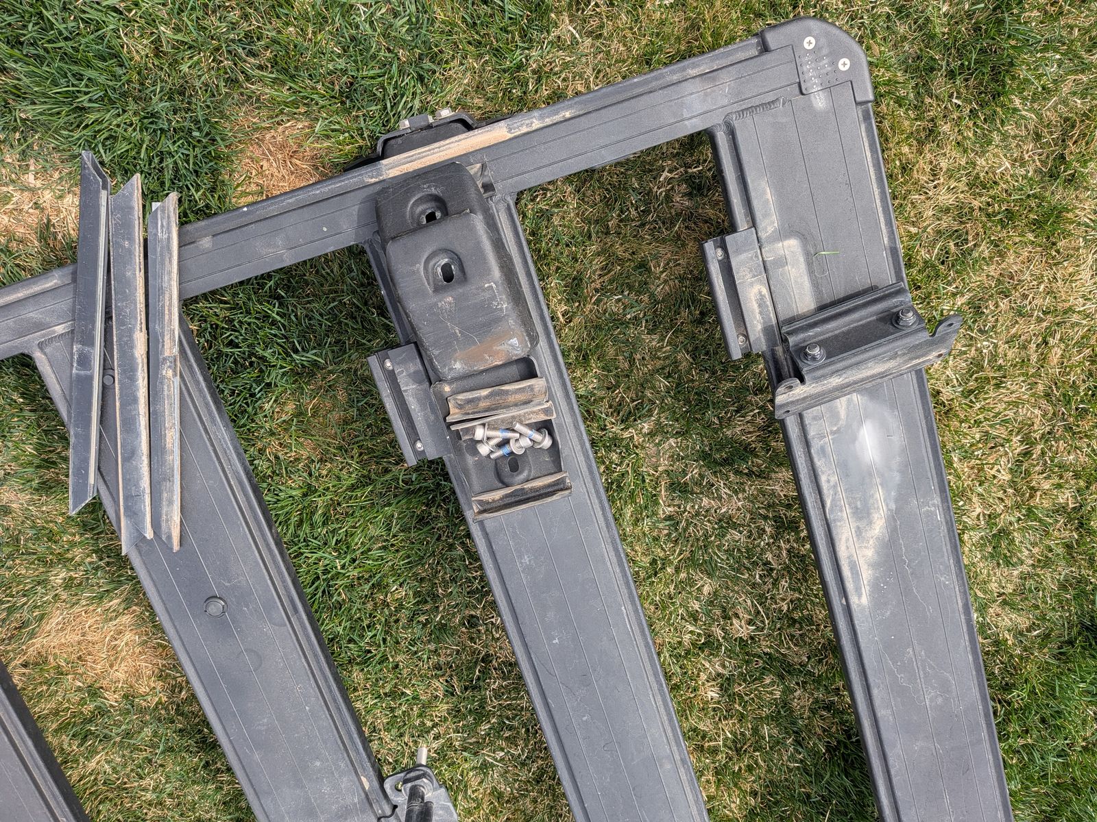 ZelleI wanted to keep this since it is so solid and I love how the accessory mounts attach, but I needed a full rack, so this one must go. It has several different mounts such as awning, shovel, eyelets, ski, etc. Nice rack in very good condition and will clean up to look almost new. Save a bunch of money!