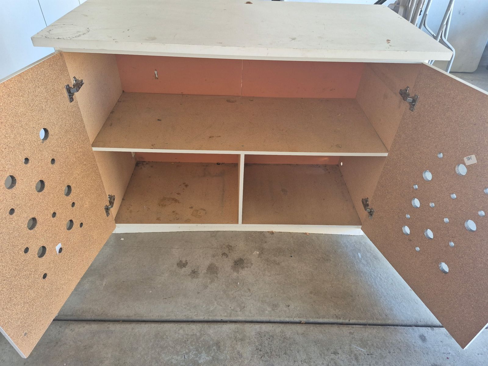 VenmoThis is a big cabinet that can have many uses. It has been used as an arts and crafts cabinet. A kitchen storage cabinet and a tool cabinet. A great way to store a lot of things, shut the doors and they are out of site. 48 wide, 24 inches deep and about 36 inches tall.