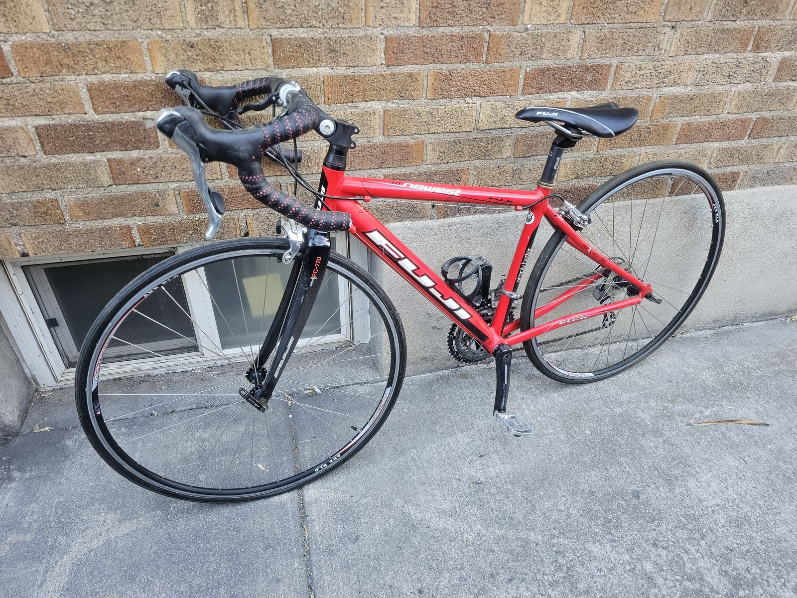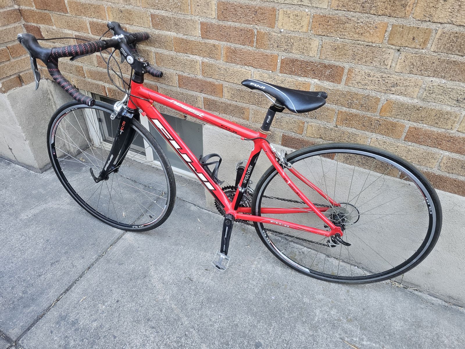 Here is a 42cm women's Fuji Newest 1.0 road bike that is in rideable condition. It was tuned seasons back and could probably use another.