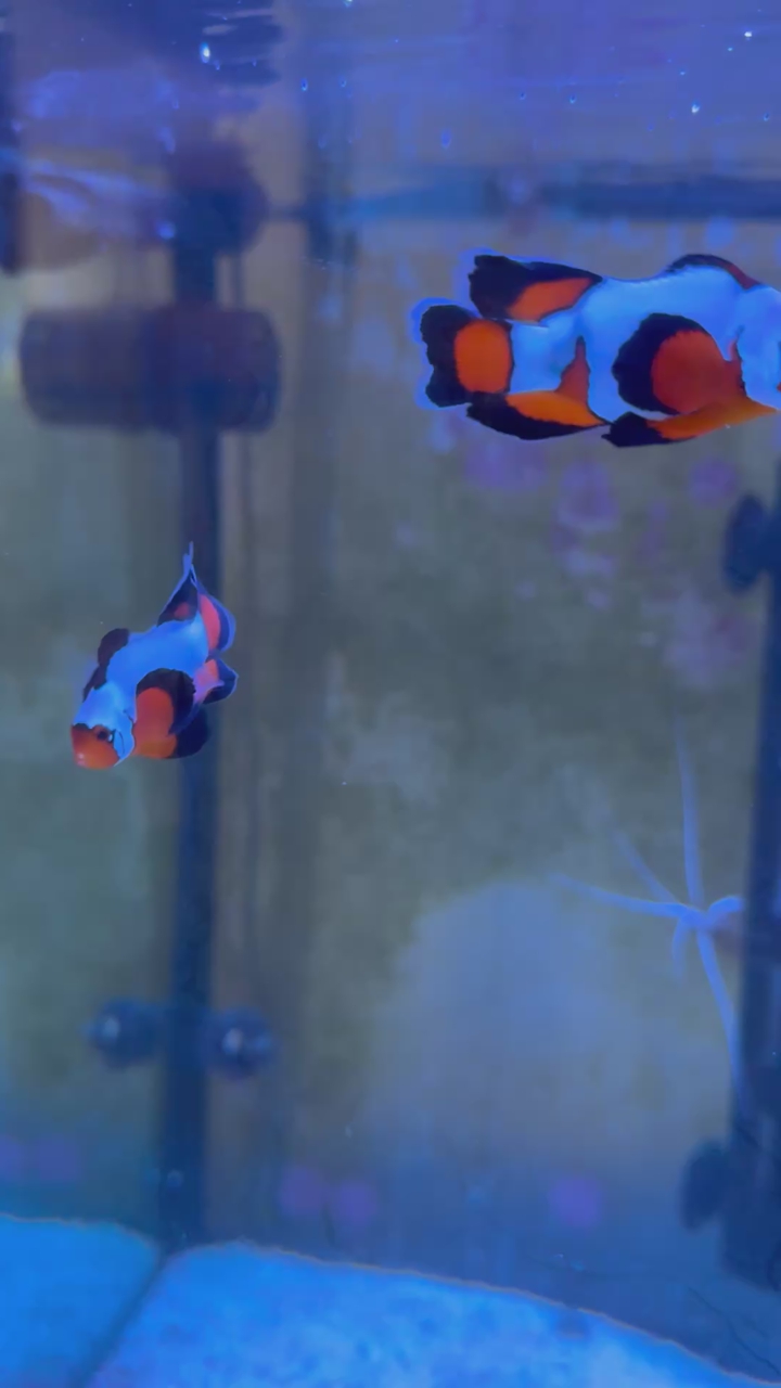 VenmoThese two are absolutely stunning longfin Ocellaris clown fish! I believe Black Ice color morph if memory serves. $300 for the pair FIRM. They are mature and I’ve had them for about 7 months now. Bought them this size so unsure on age, but expect a 10-20 year commitment to these beauties. They love to follow me around the tank and are very curious. I’m getting out of the saltwater reef hobby and these two are the only ones left.