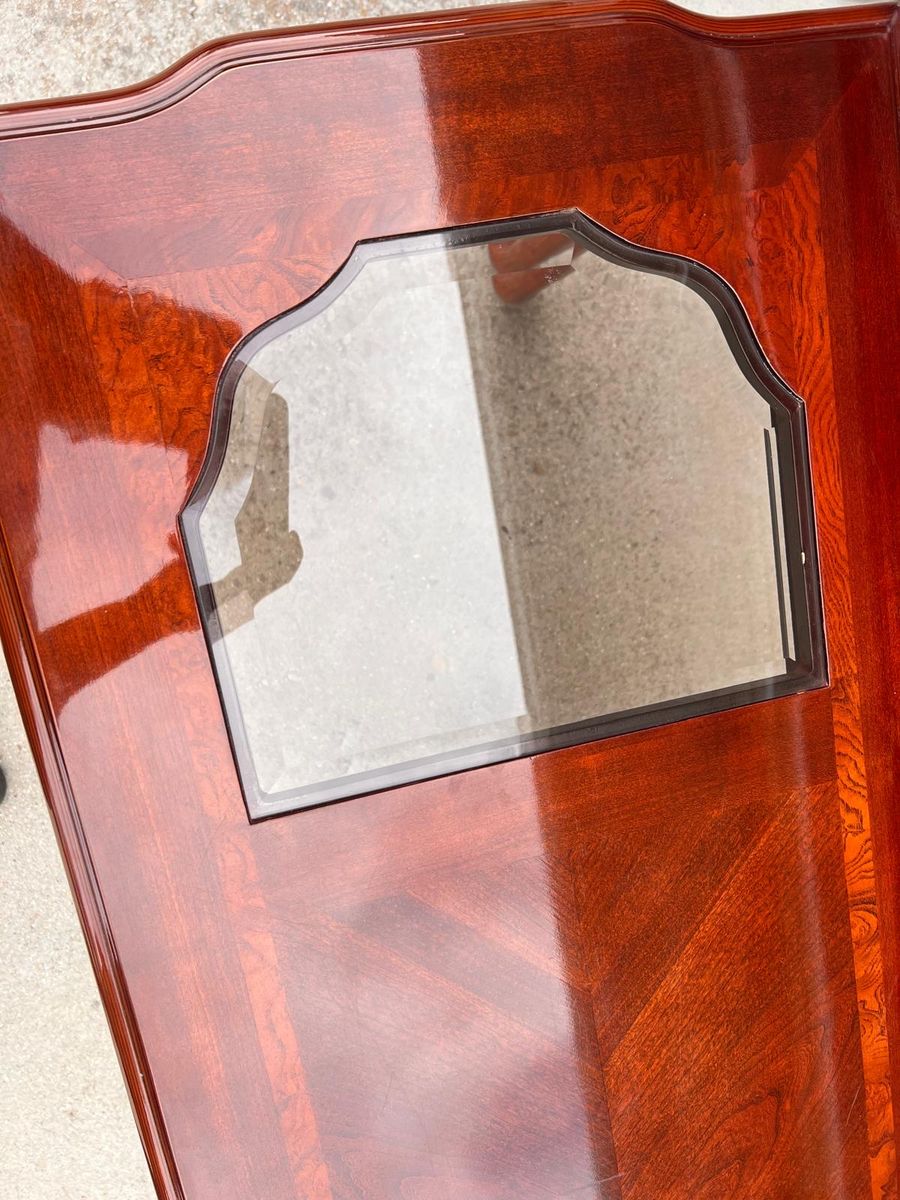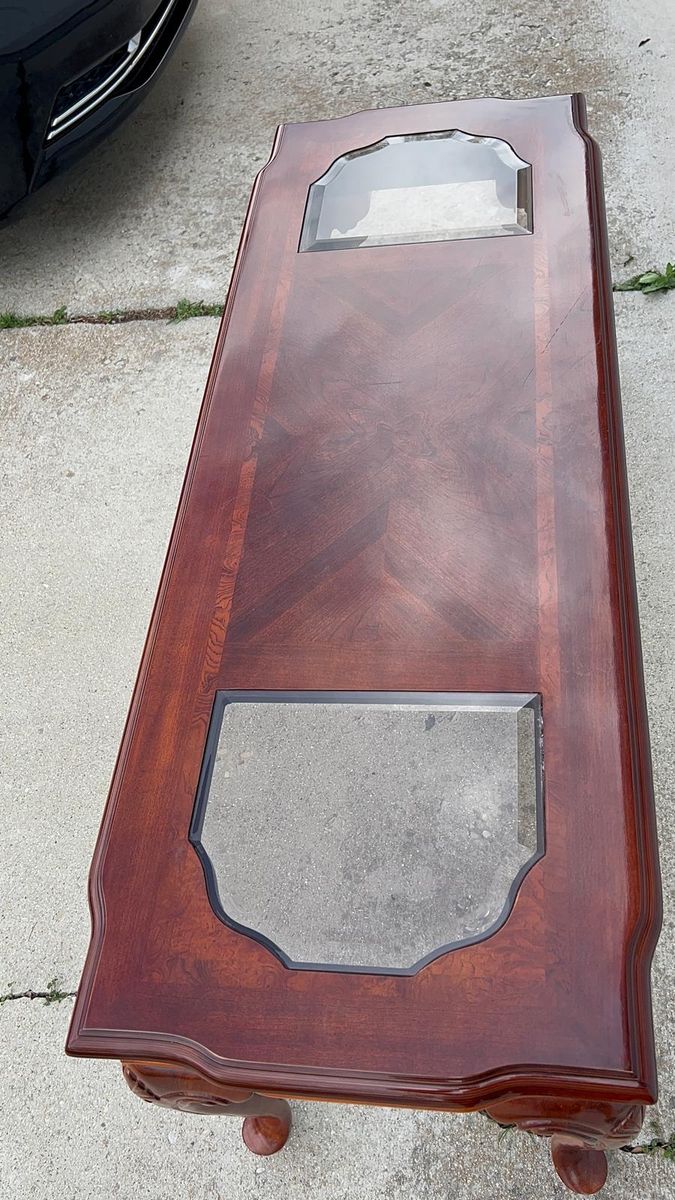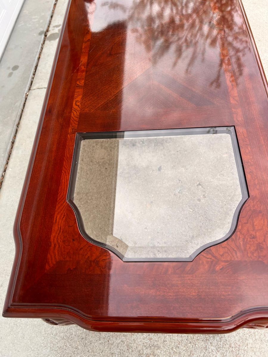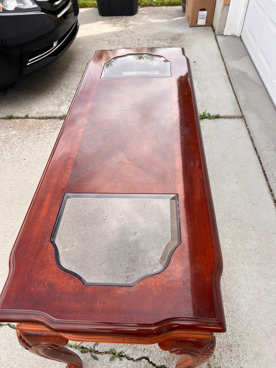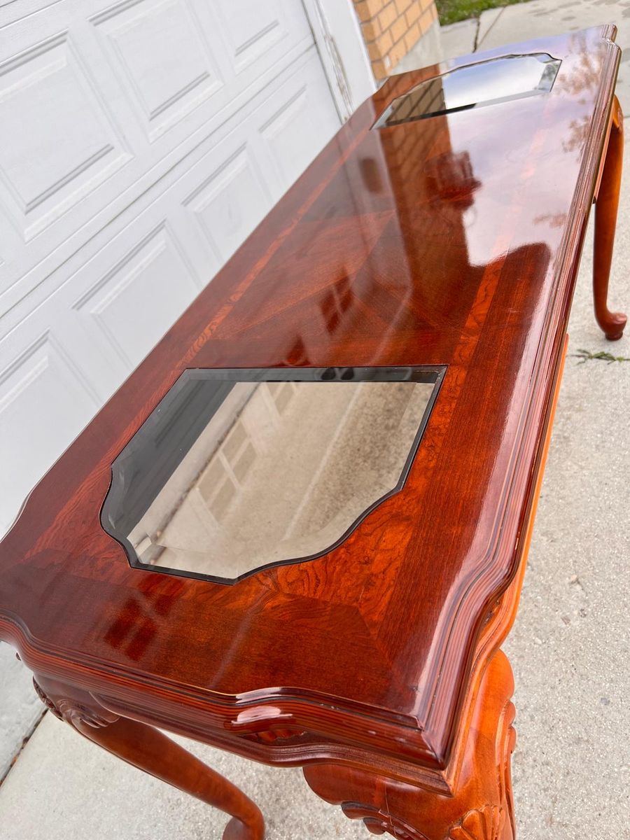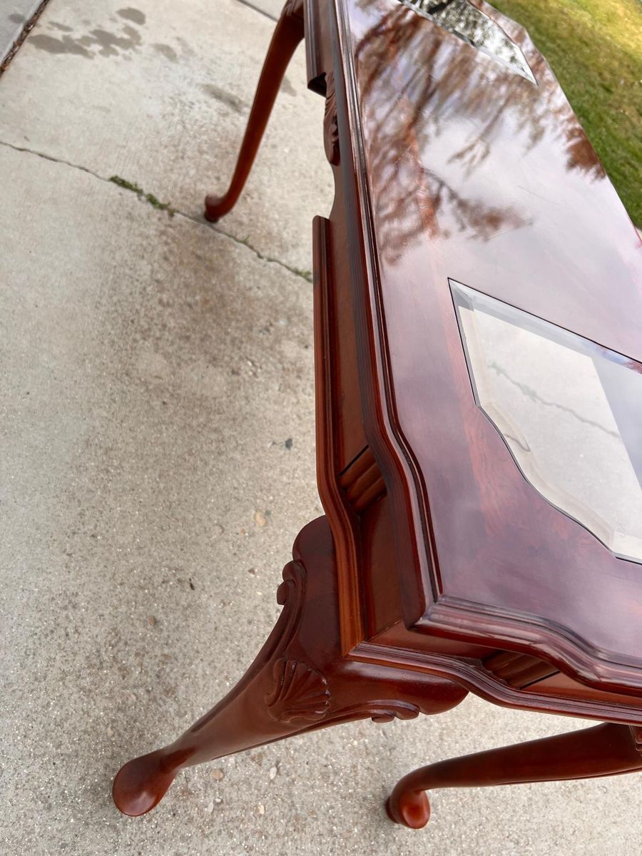 VenmoTraditionalaa Cherry Wood Console Table with Beveled Glass Inserts - Excellent Condition.