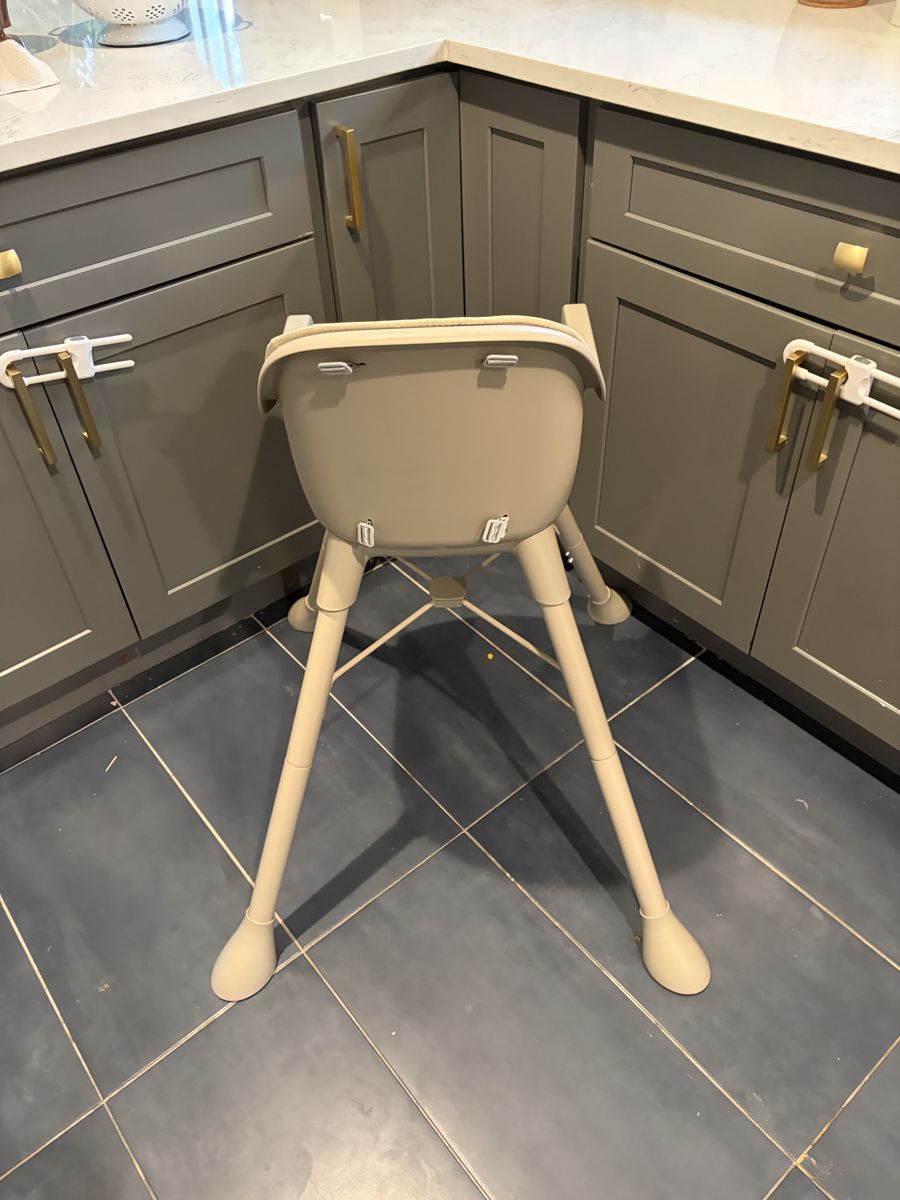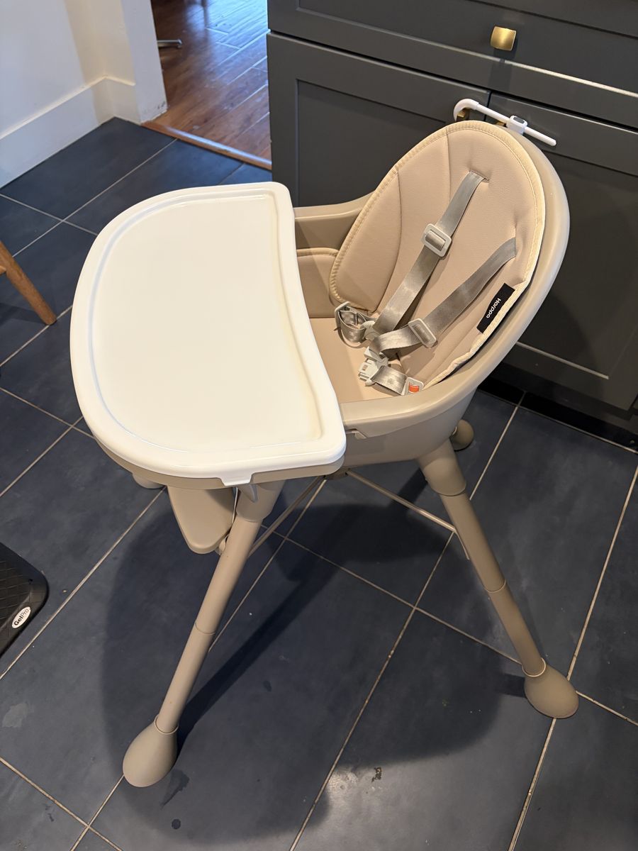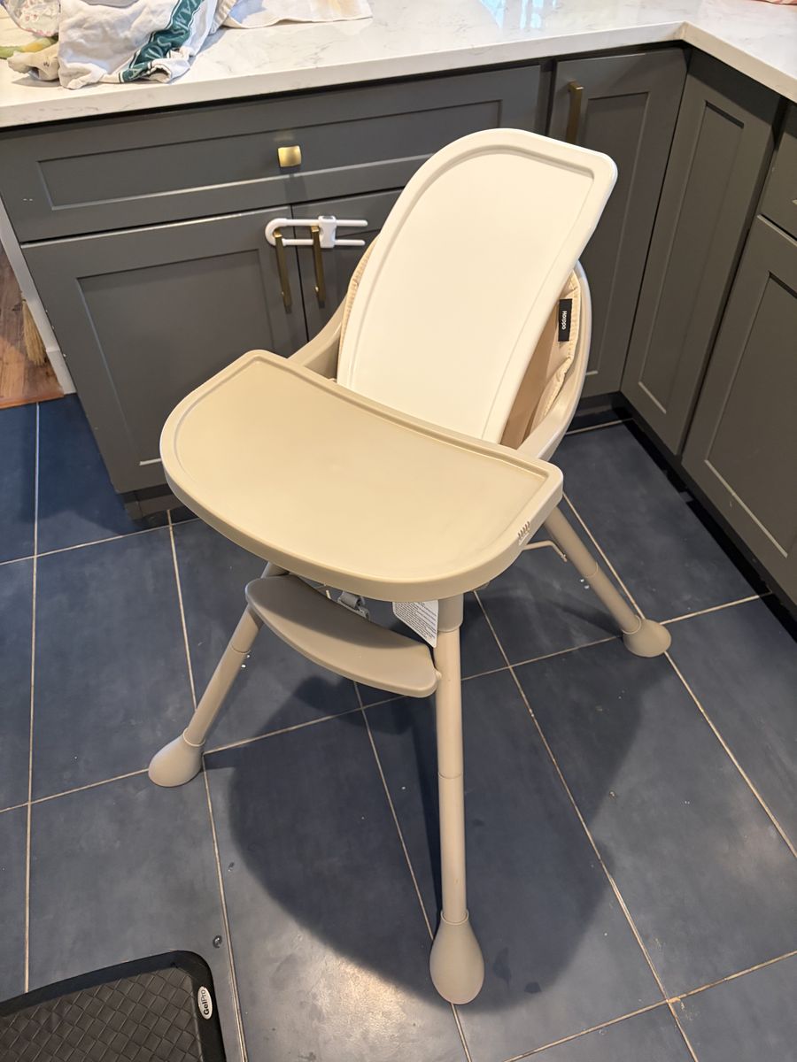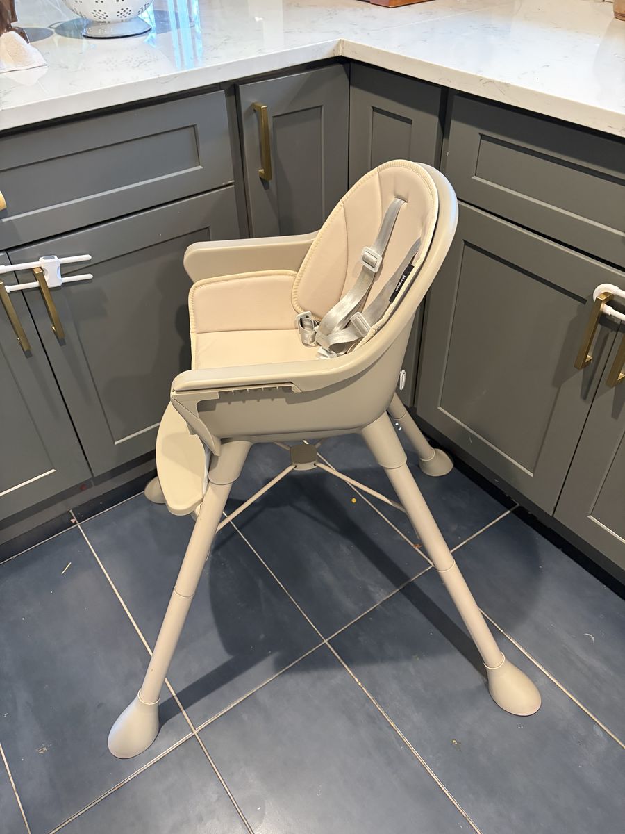 ZelleUsed for two days before we realized it was too big for our small house. Such a cute taupe color! The 5-point harness and wide legs make it super safe and sturdy. Cushion is in matching taupe color and is easy to clean. Retail price is $90. Come pick it up and it’s yours for $50.
