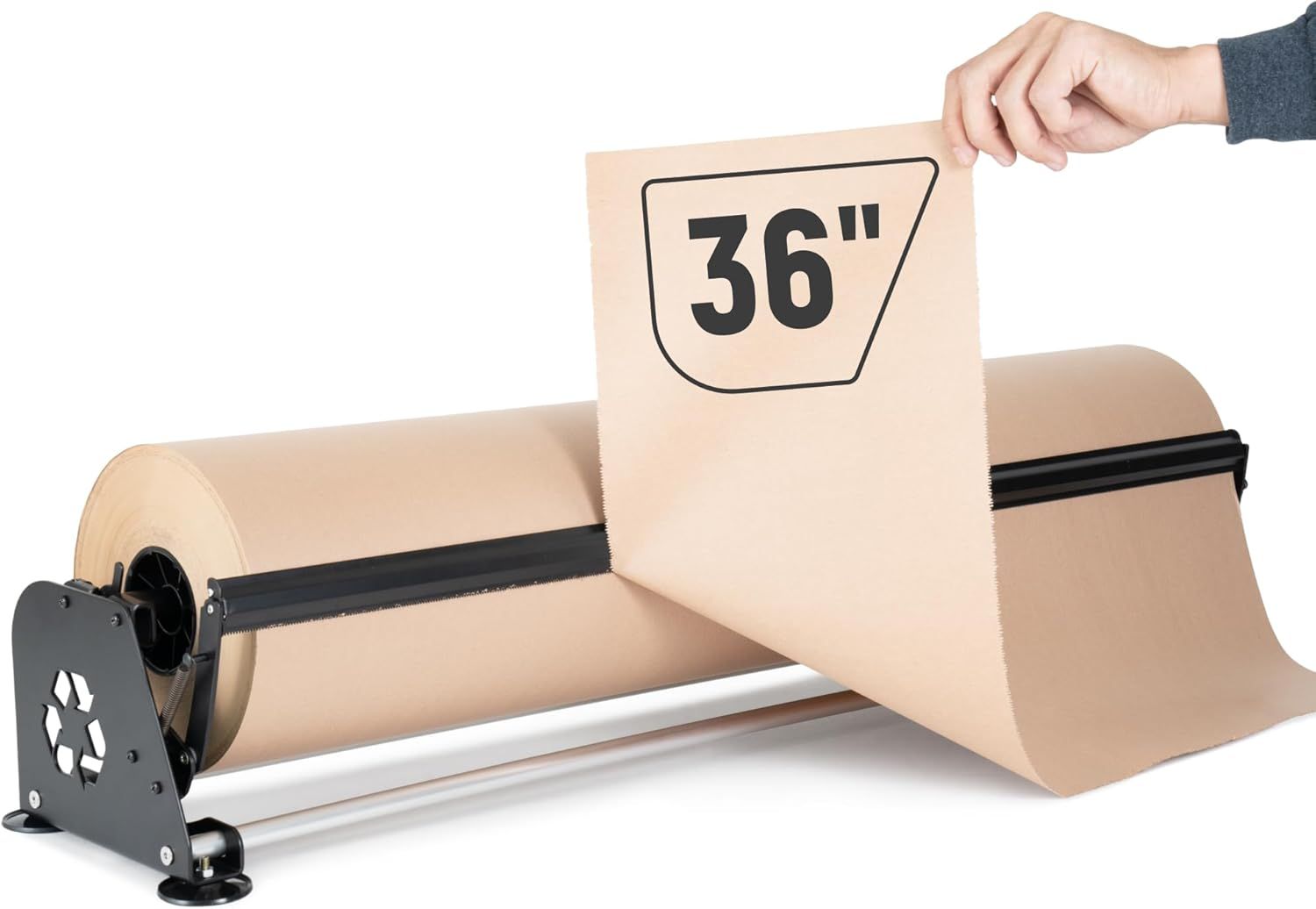 ApplePay36" Paper Roll Dispenser With a Cutter, Next Gen, Non-Slip Suction Cup Feet - Heavy-Duty Dispenser for Kraft, Freezer, Newsprint, Butcher Paper Rolls - Up to 10" in Diameter, Safe Rod Holder