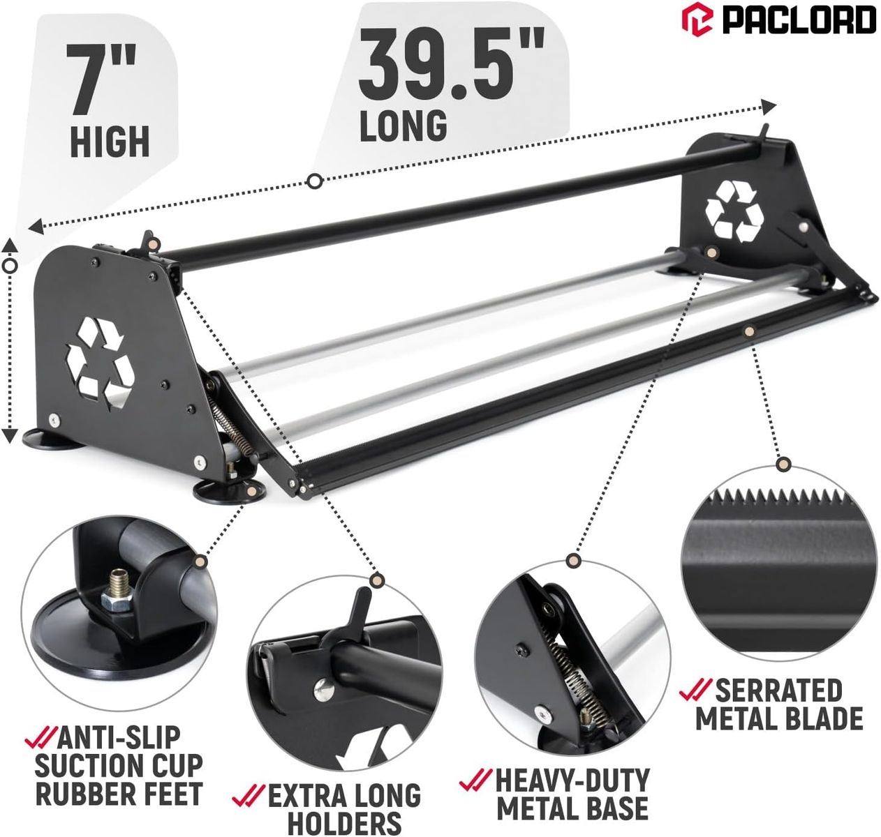 Heavy-Duty Paper Roll Dispenser: Paclord paper roll dispenser with a cutter is made of high-quality durable alloy steel with a matte black finish. This paper cutter fits rolls up to 36 inch (915 mm) wide and up to 10" in diameter - perfect for paper, plastic, or aluminum rolls. Its 1 inch (25 mm) rod diameter is able to fit most to all paper rolls on the market