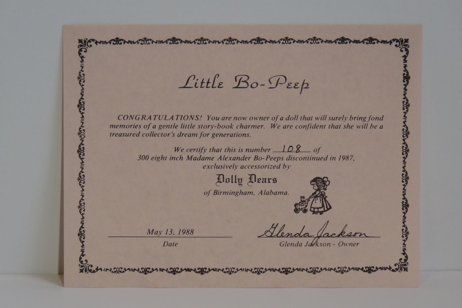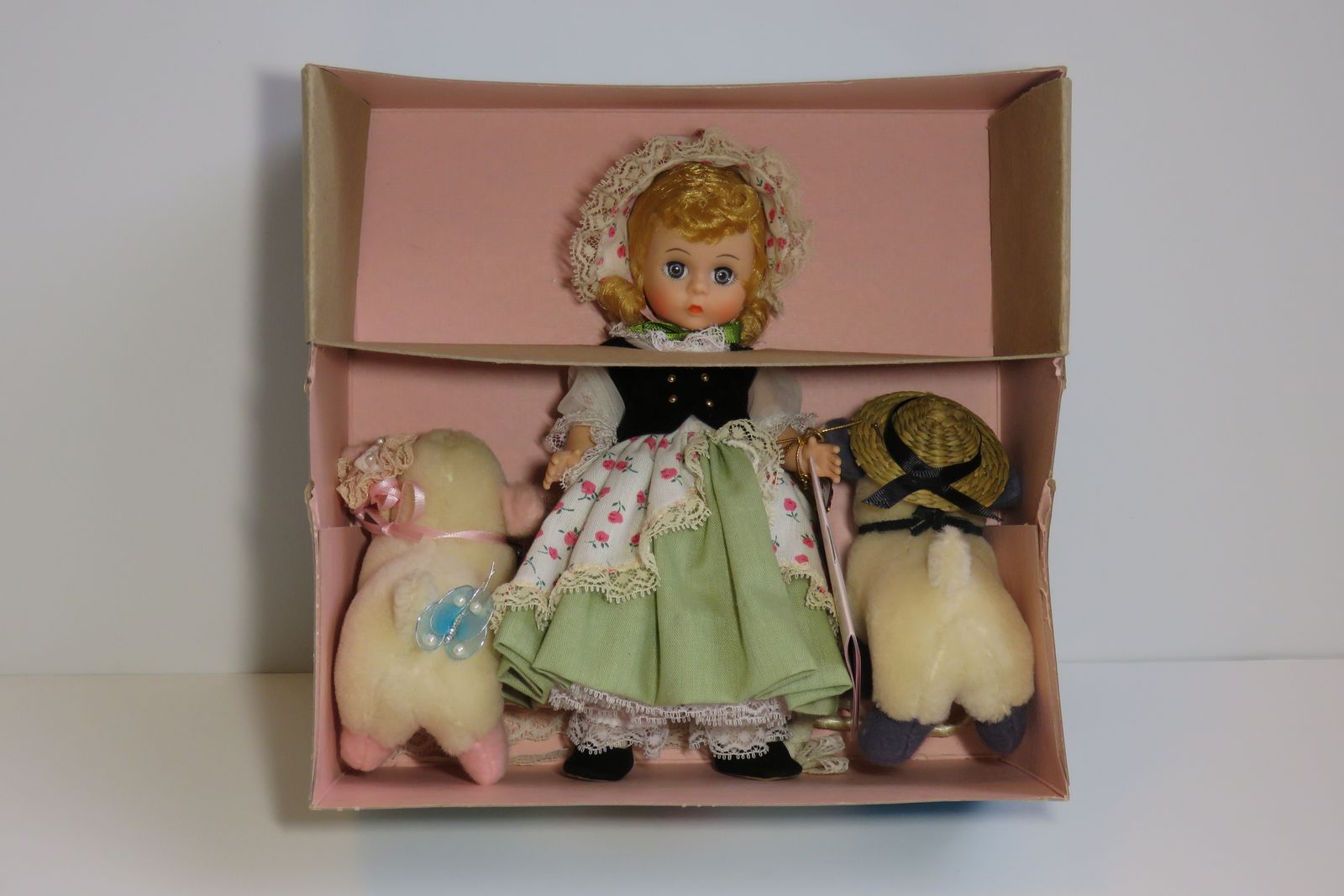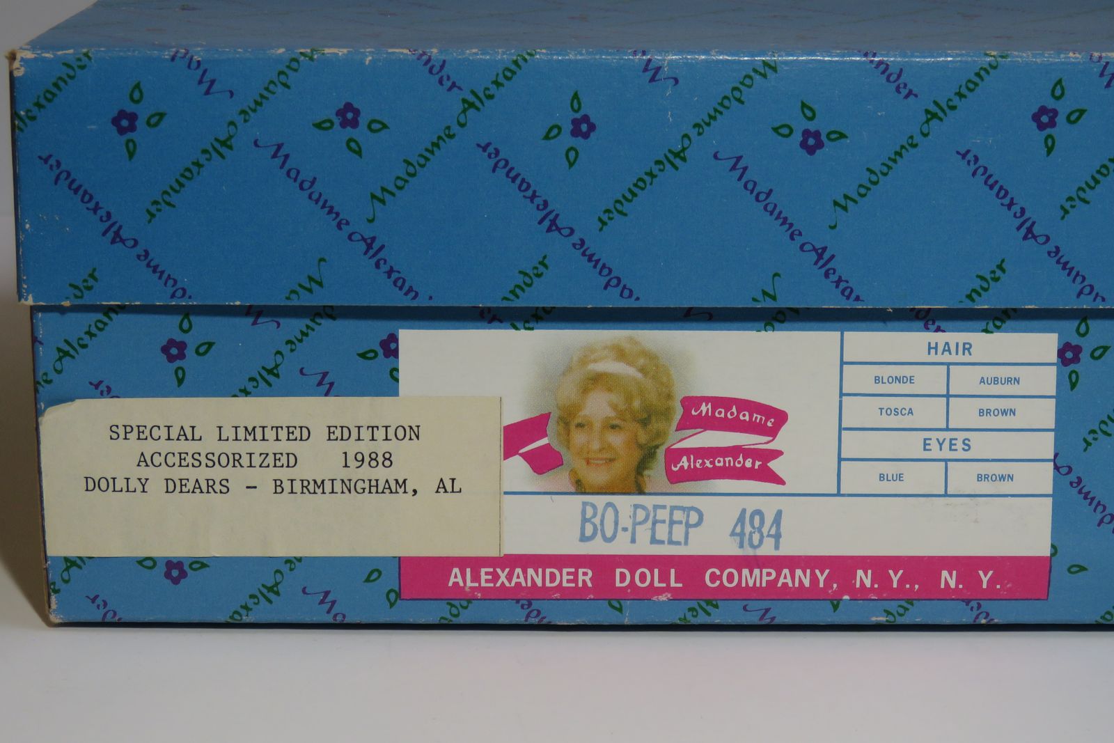 Pre-Owned. This is a special limited edition exclusively accessorized in 1988 by Dolly Dears of Birmingham, AL. She has the certificate showing that she is #108 of 300. The hang tag copyright is 1987 and she was also discontinued in 1987. Doll and clothing are in excellent condition. She is wearing a sweet Little Bo-Peep nursery rhyme style costume. Her eyes need a tiny bit of help to open/close. Her accessories include a staff, two adorable little sheep, and a wrist charm. The neck brace is in excellent condition. The box has very minimal storage wear but no breaks, tears, or cushed corners. Please see photos.