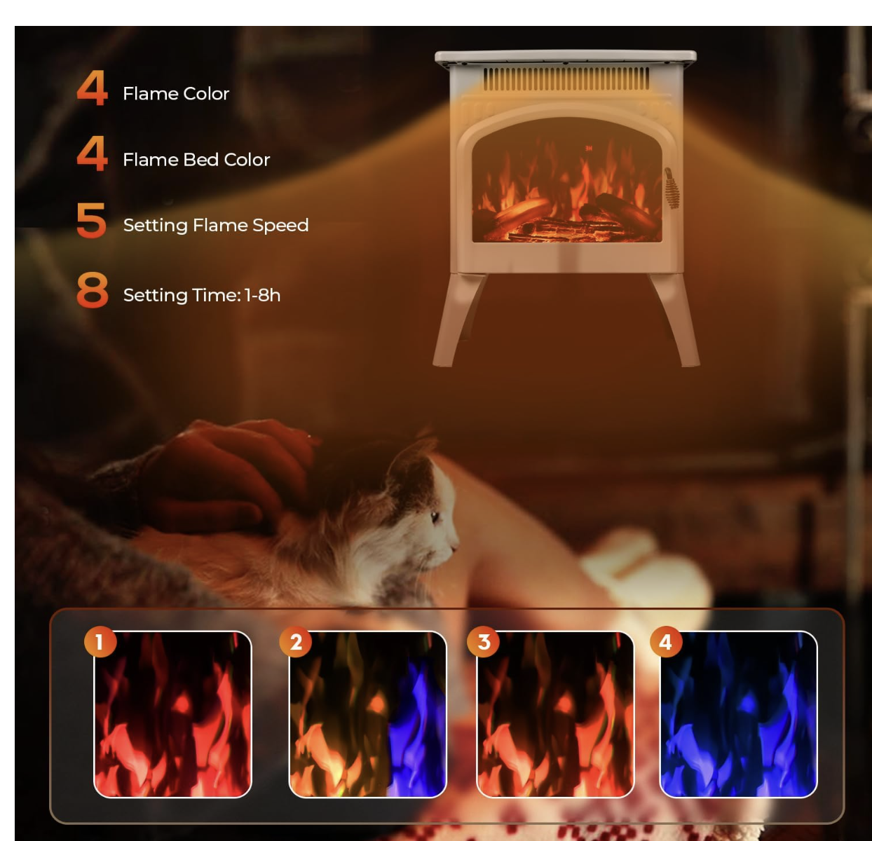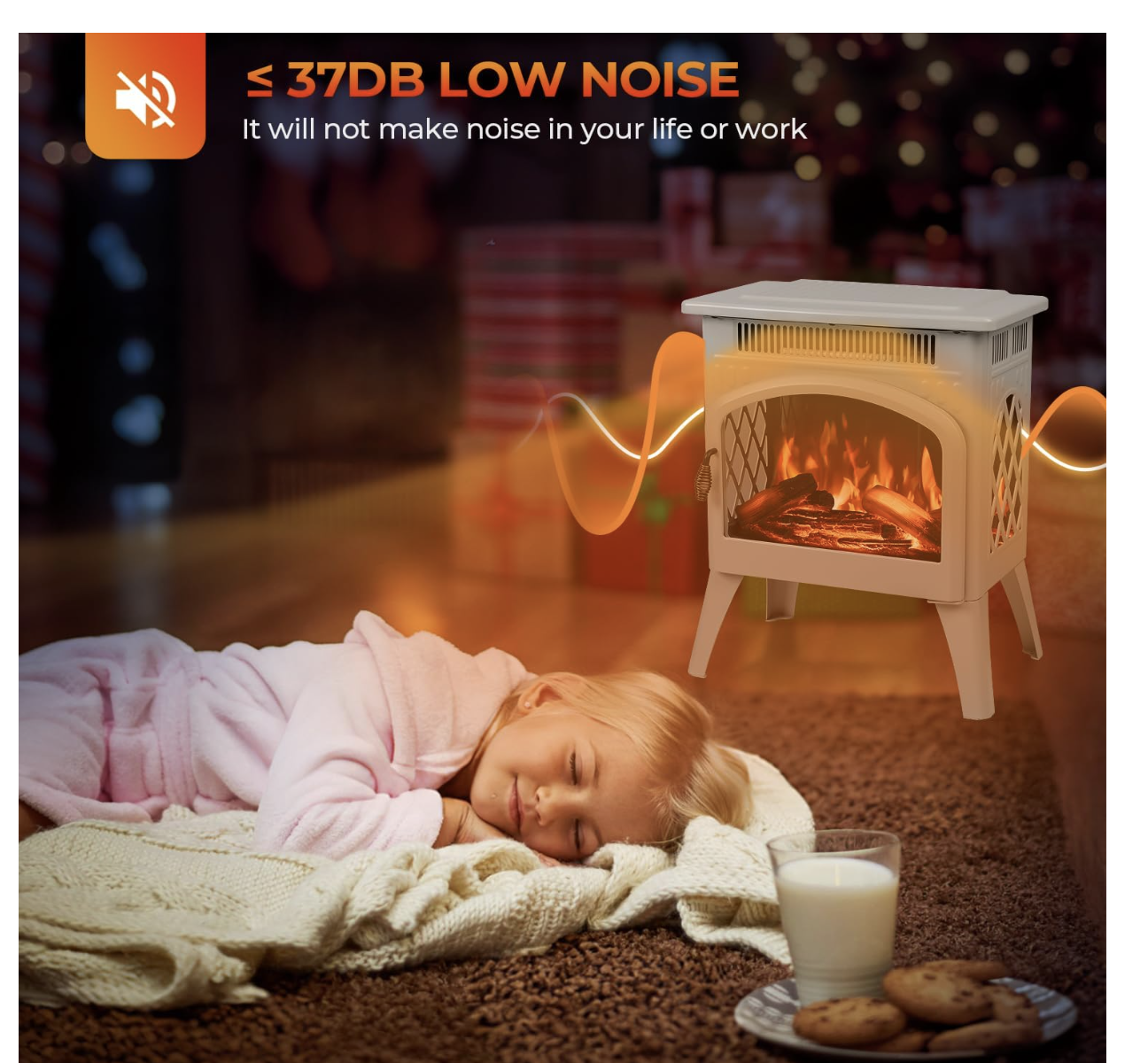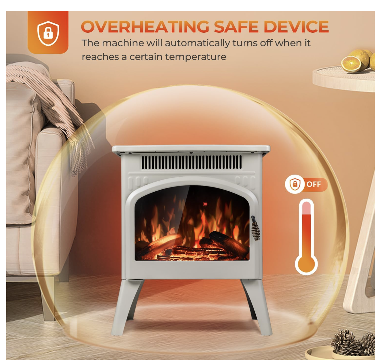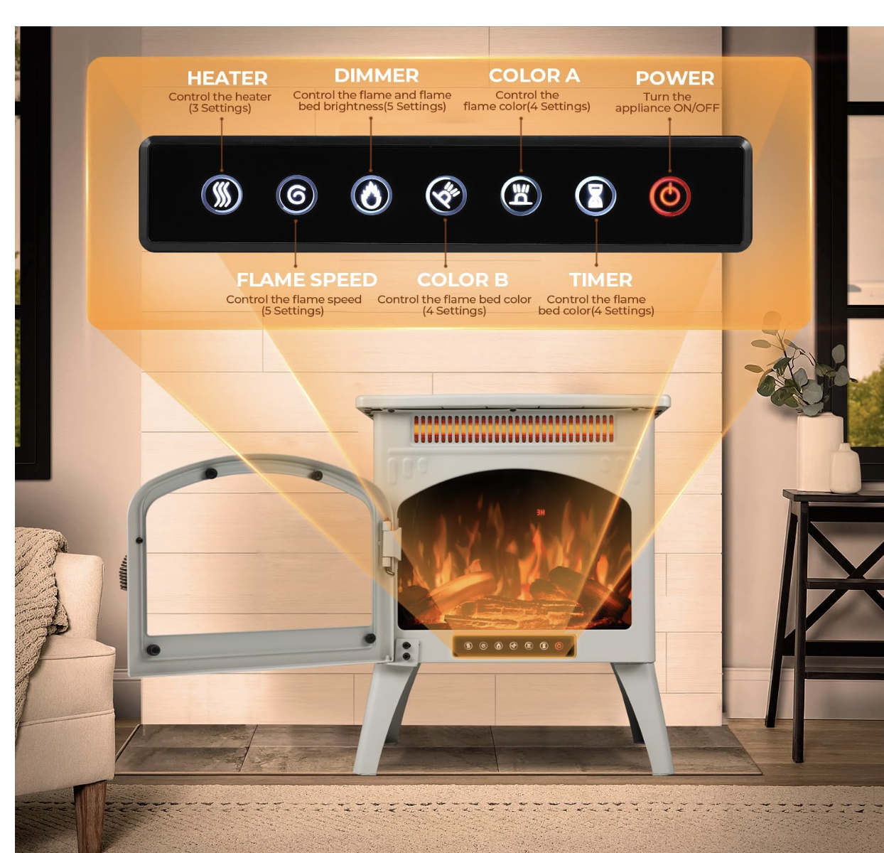 Brand new in box, Electric Fireplace Heater 17" with Remote Control, Cathedral Stylish, Different Flame Effects and Log Set Colors, Adjustable Brightness and Heating Mode, Overheating Safe Design, Beige
