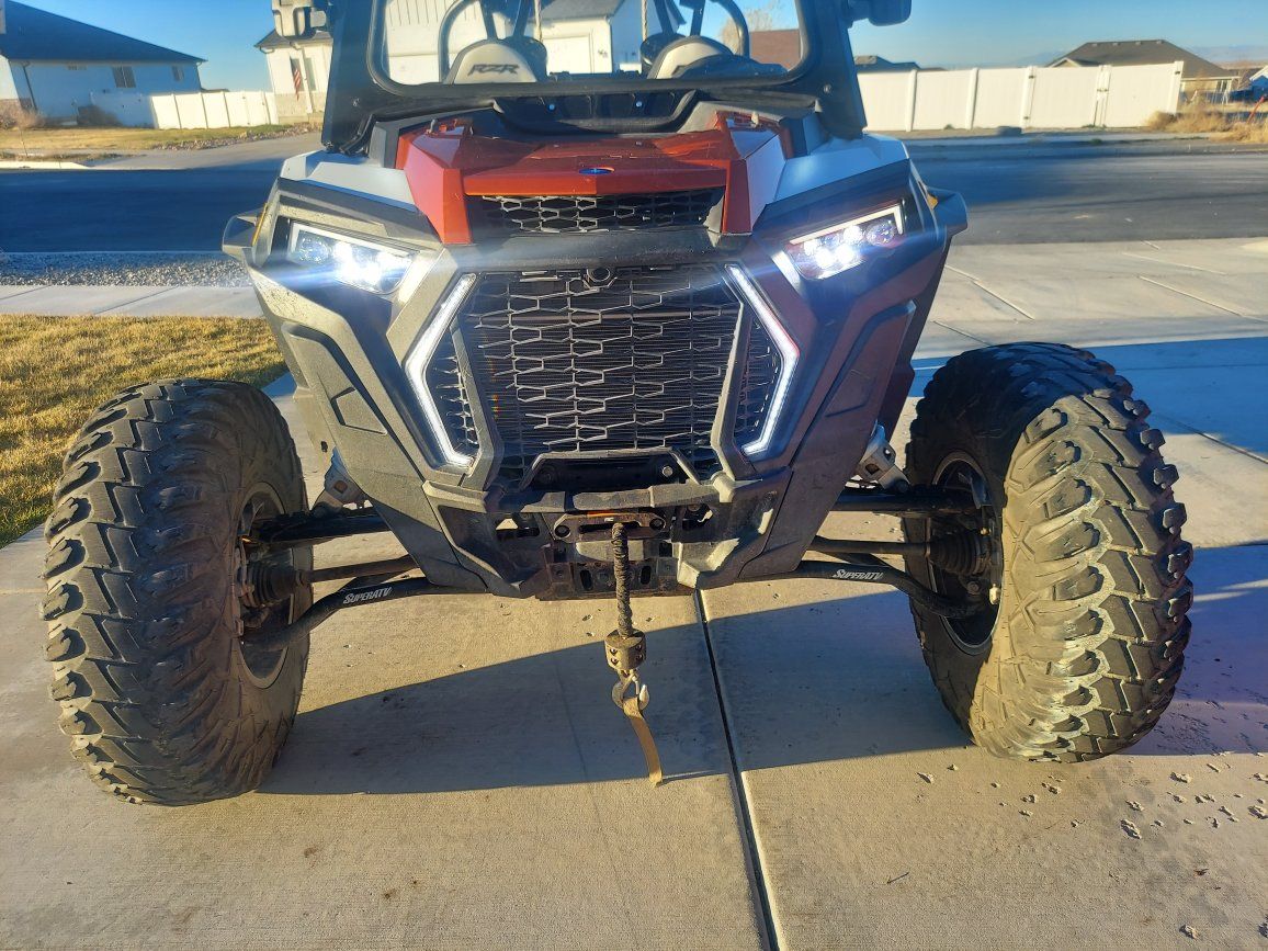 Upgrades: 32x10x14 Tires, street legal kit, full metal Roof, full front Windshield, LED front fang lights, Spare tire carrier, spare tire, PRP door pads and storage bags, under lights, light bar, whip lights, super ATV A-Arms, Tusk Gladiator rear axles, Blow Hole belt cooler, Belar Bluetooth speaker, Dynojet Tuner, Winch, wider body harnesses all around.