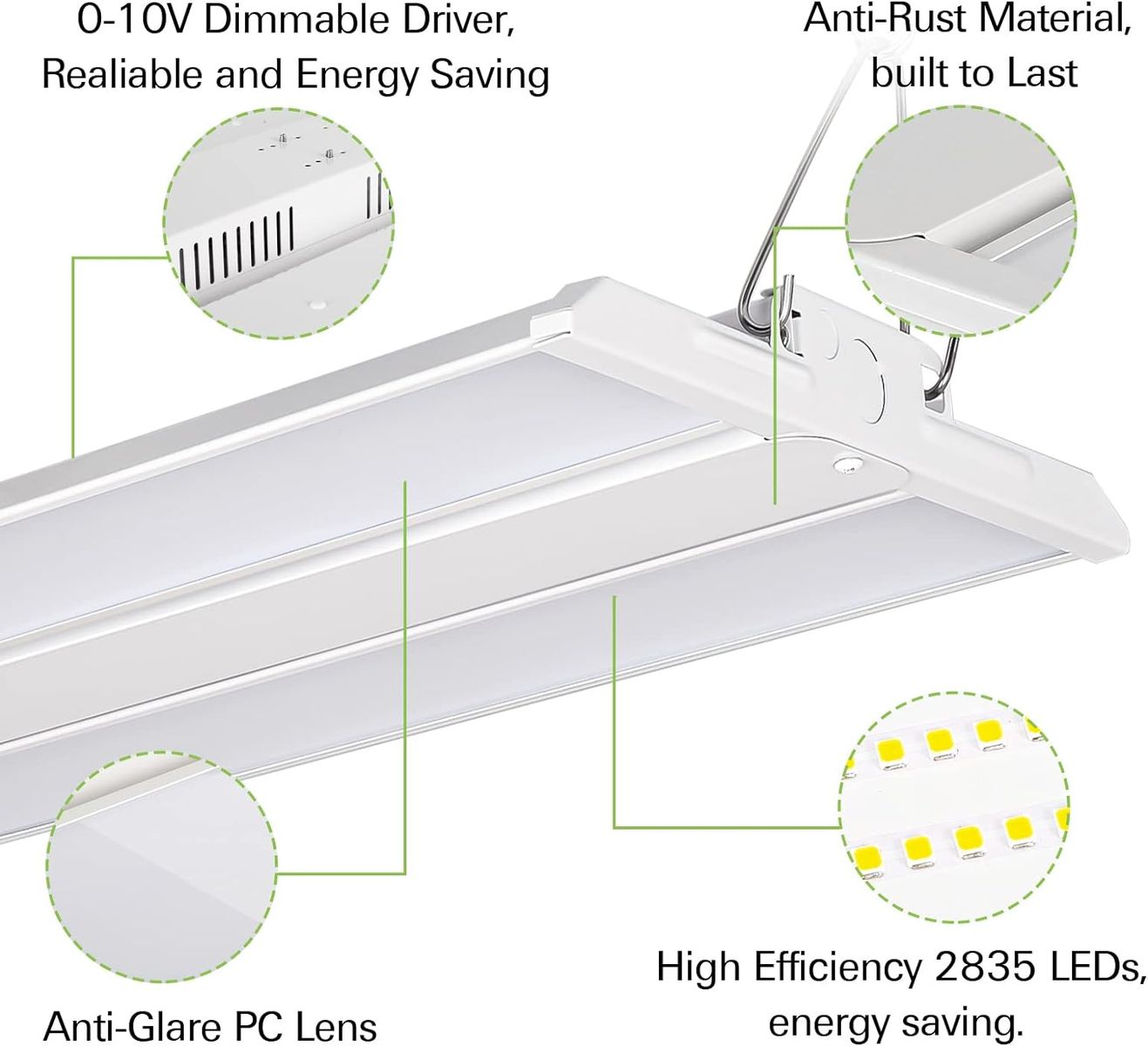 ๐๐ฎ๐ซ๐๐๐ฅ๐ ๐๐๐ฌ๐ข๐ ๐ง - Constructed of a robust durable housing, long-lasting led chips and energy-efficent LED driver, the commercial led high bay lighting fixtures ensure high performance for more than 50,000-hour of continuous use or 23-years when on every day for 6-hours/day.
