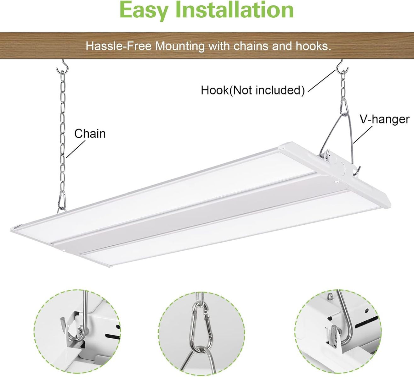 ๐๐๐ฌ๐ฒ ๐๐ง๐ฌ๐ญ๐๐ฅ๐ฅ๐๐ญ๐ข๐จ๐งThese high bay lights can be easily hung to the ceiling with the included chains and V-hooks.