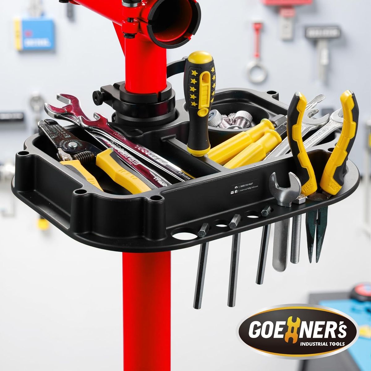 Multi-functional Tool Tray: Heavy duty bicycle repair stand is equipped with a quick-detach tool tray to safely store bike parts, screws or nuts, screwdrivers, keeping your maintenance tools organized and within reach, making your repair work more efficient.