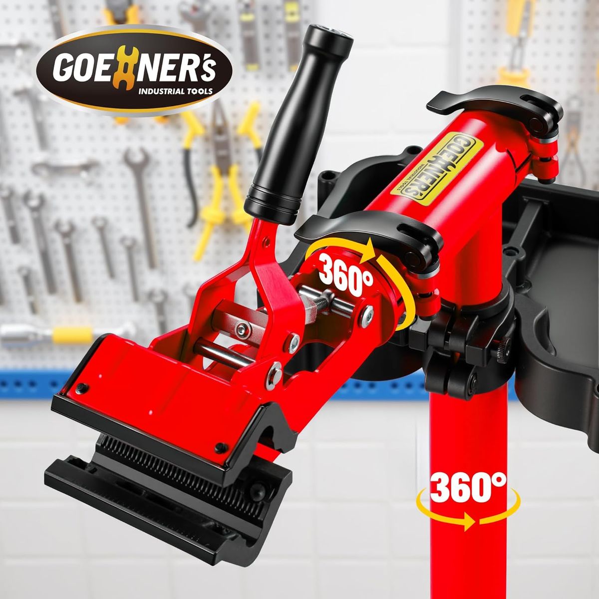 Upgraded 360° Rotating Clamp: Adjust the clamp opening size (1"-2.4") by rotating the hexagonal knob to securely hold bike tubes or seatposts of various diameters (1"-3"), and 360° rotate clamp for easy access to any angle during maintenance to make your repair work more efficient. The clamp surface is covered with rubber to ensure safe and scratch-free grip on your bicycle.