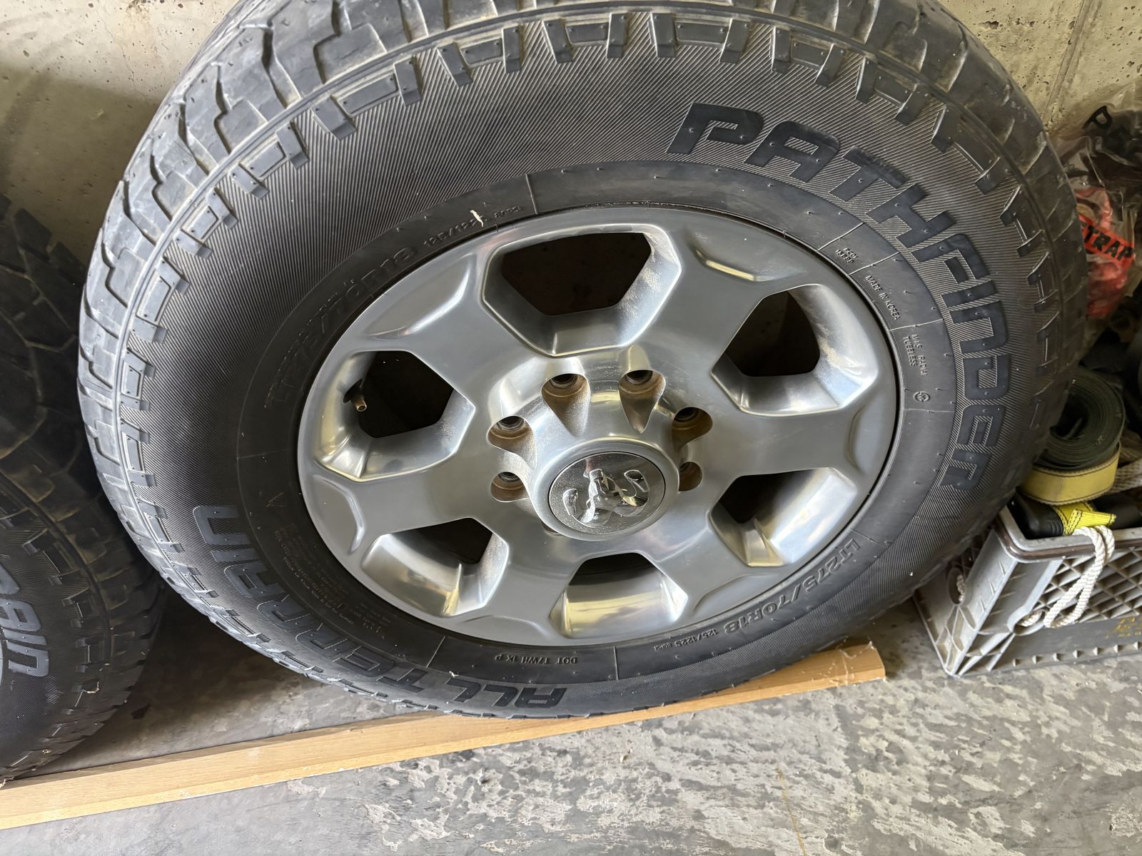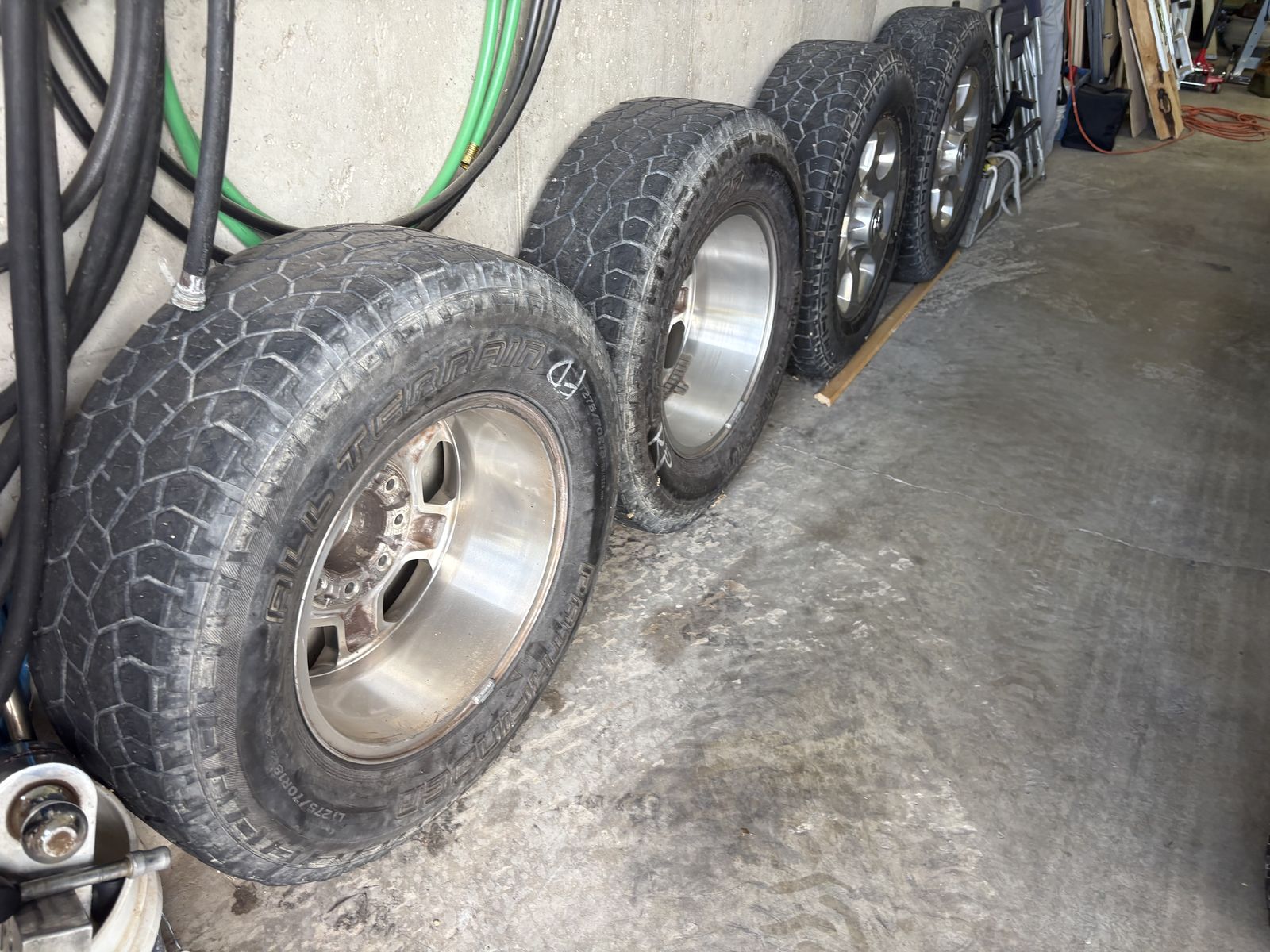 4 Ram 18” rims 8 lug tires hold air not much life left.
