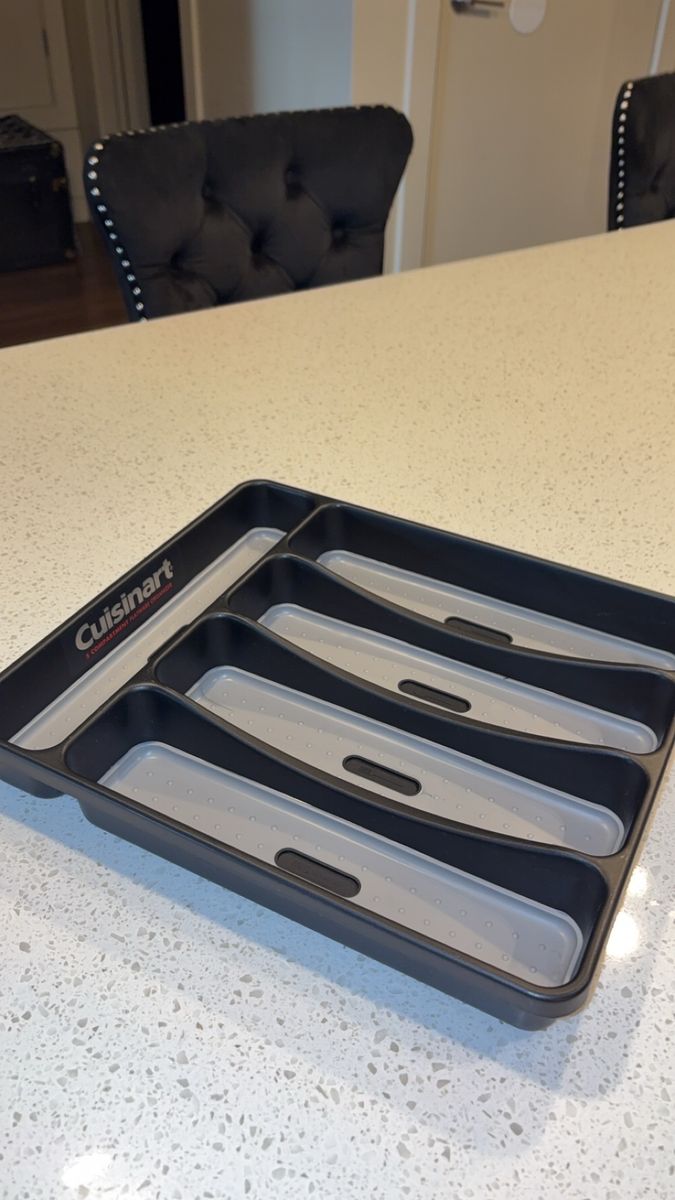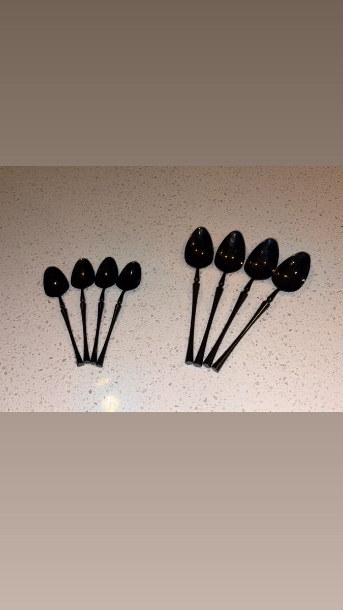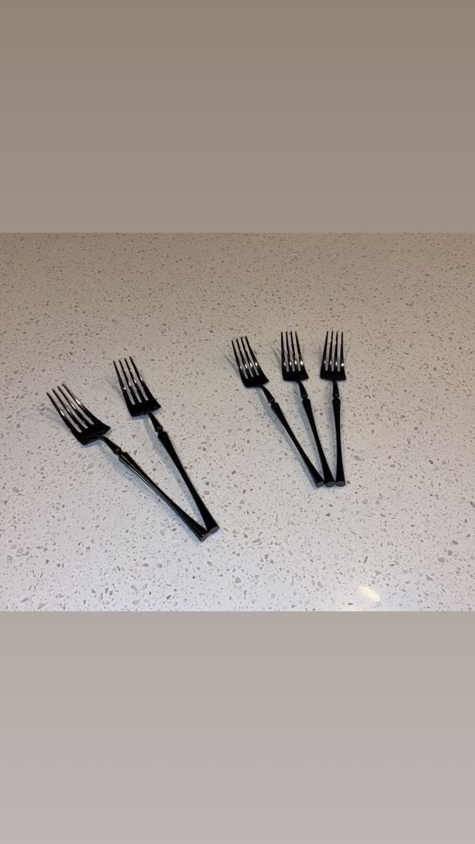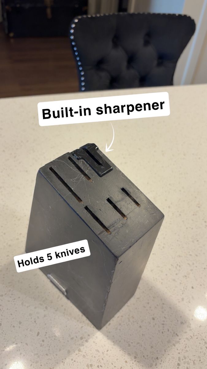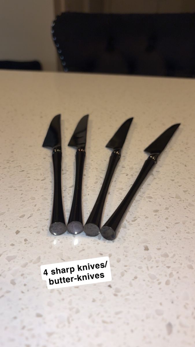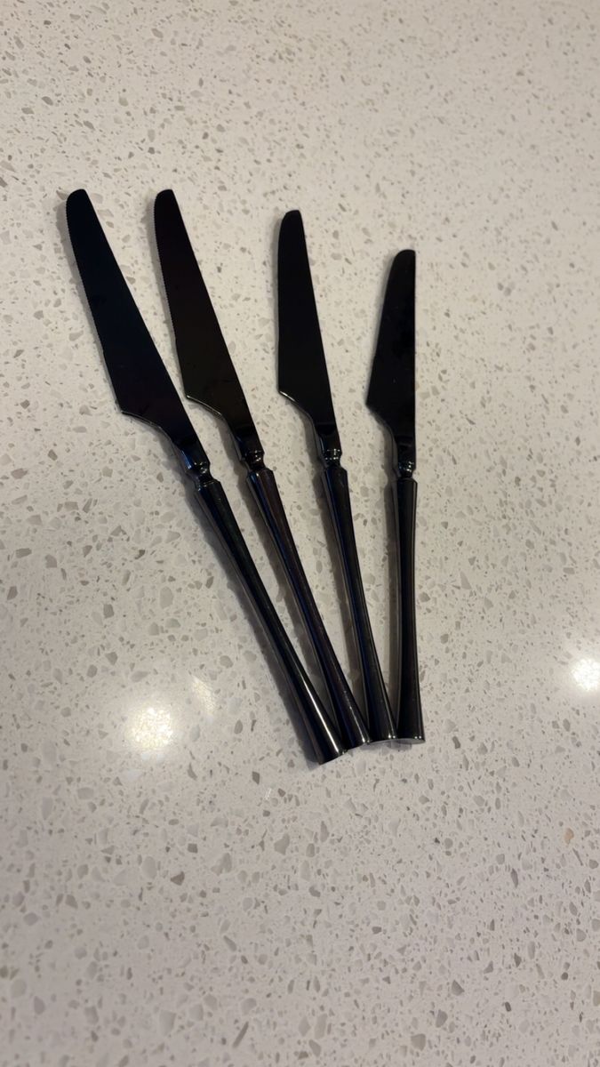 VenmoIncludes: -1 Cuisinart silverware organizer (has five organizing slots) -1 Black wood/marble design knife block + sharper (holds five knives) -One full set of shiny black silverware (4 small spoons, 4 big/regular-sized dinner spoons, 4 knives/butter-knives that’re lowkey sharp for butter knives lol, 3 small forks, and 2 big/regular-sized dinner forks. Making it a 17-piece silverware set) -A freshly-sharpened 10 piece knife set (that has been sanitized, and thoroughly washed as well) -Selling as a 27 total piece set