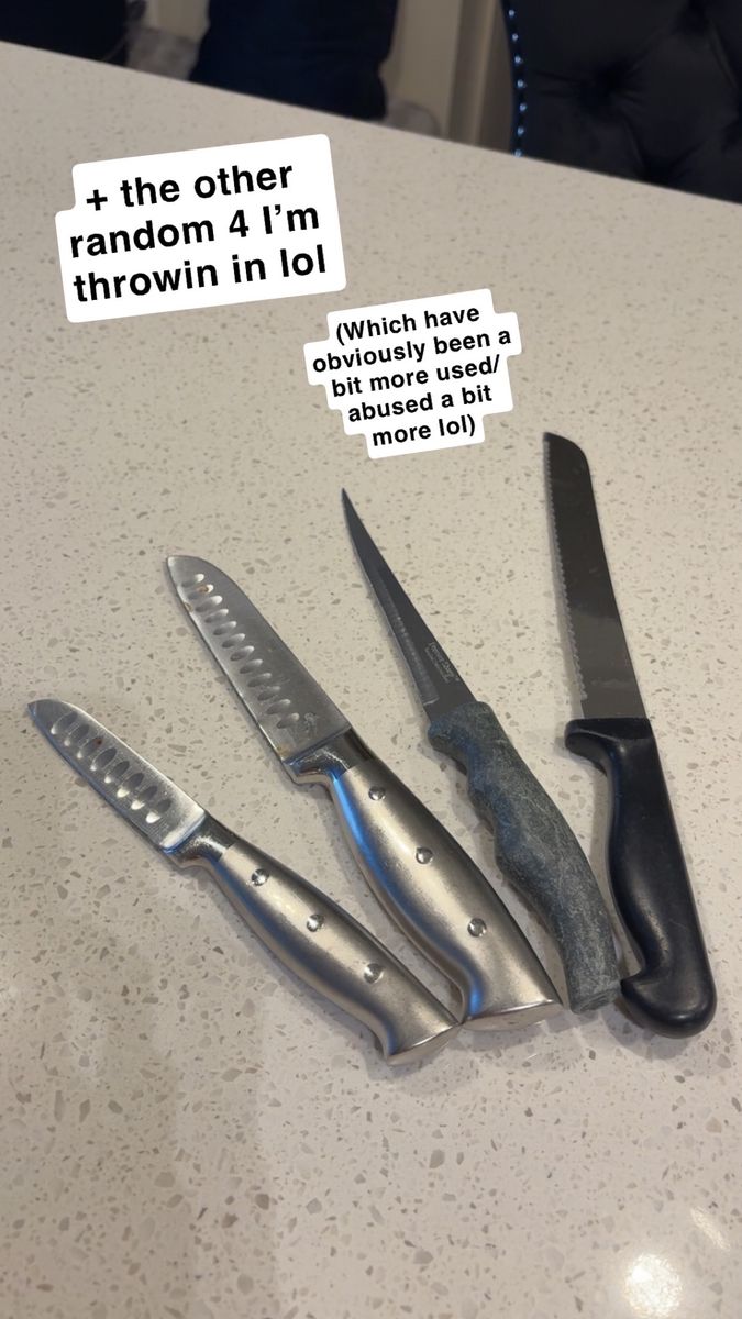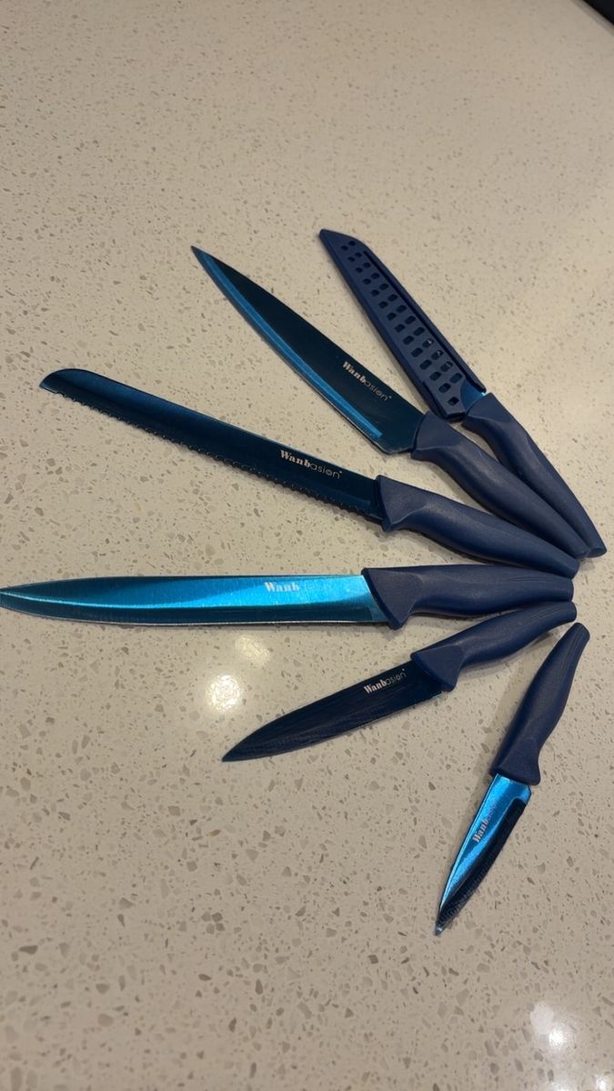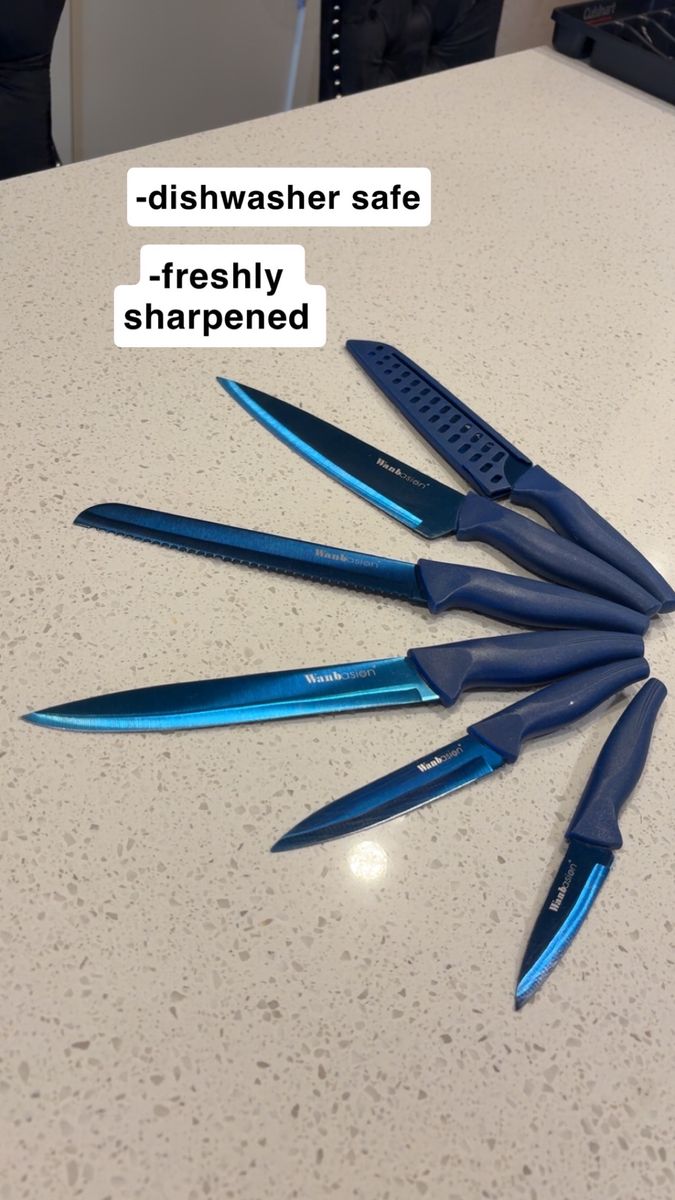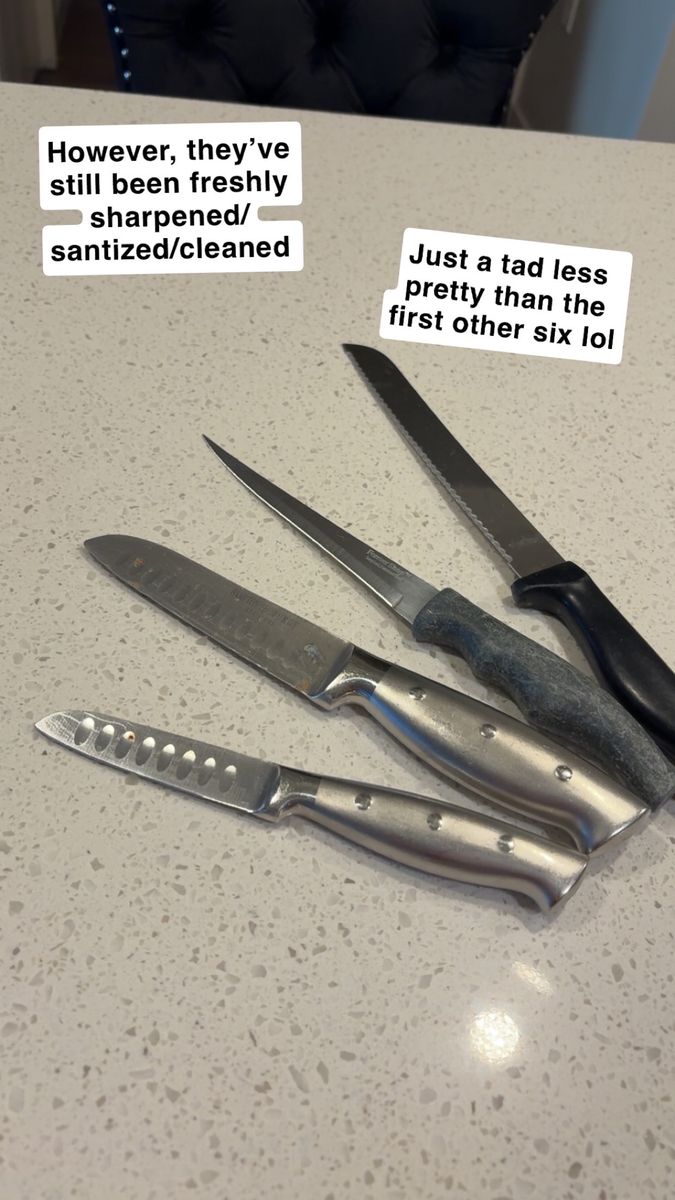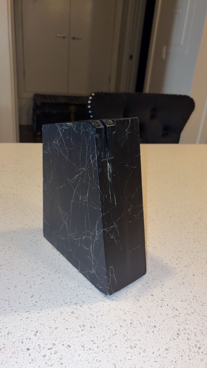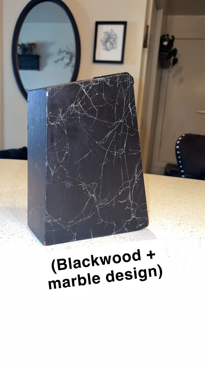 VenmoIncludes: -1 Cuisinart silverware organizer (has five organizing slots) -1 Black wood/marble design knife block + sharper (holds five knives) -One full set of shiny black silverware (4 small spoons, 4 big/regular-sized dinner spoons, 4 knives/butter-knives that’re lowkey sharp for butter knives lol, 3 small forks, and 2 big/regular-sized dinner forks. Making it a 17-piece silverware set) -A freshly-sharpened 10 piece knife set (that has been sanitized, and thoroughly washed as well) -Selling as a 27 total piece set