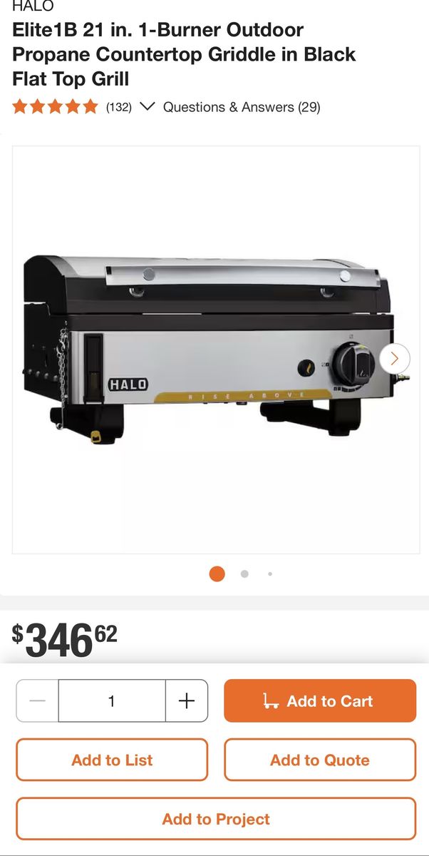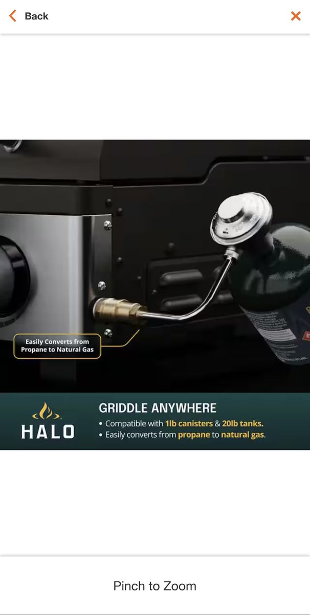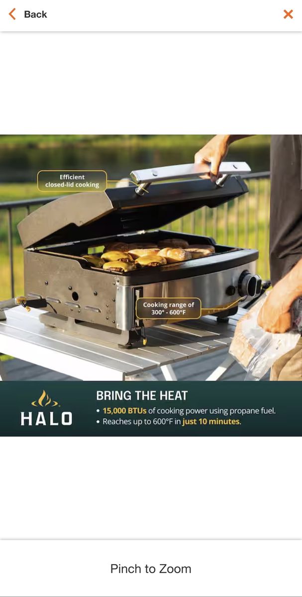 ApplePayNew In Box. HALO Elite1B 1-Burner Outdoor Propane Gas Griddle with 2-Zone Cooking and Compact Design.\