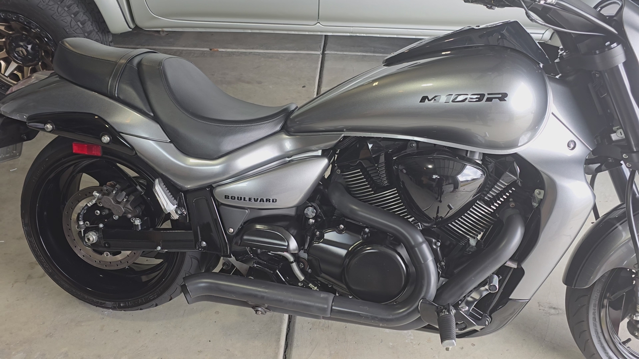 The 2020 Suzuki Boulevard M109R B.O.S.S. (Blacked Out Suzuki Special) is a high-performance muscle cruiser featuring a massive 1783cc (109 cu in) liquid-cooled V-twin engine, blacked-out styling, and a, prominent 240mm rear tire. It offers a 5-speed transmission, shaft drive, and distinct drag-style bars, emphasizing aggressive, modern styling with a 7,500 RPM redline. This bike also has DYNO JET Power Commander V tune and exhaust along with K&N air filters. and is very fast and very loud! Also updated LED headlight and LED front turn signals have been upgraded. Also ceramic coating has been applied for easy cleaning and protection. Very well maintained and kept very clean.
