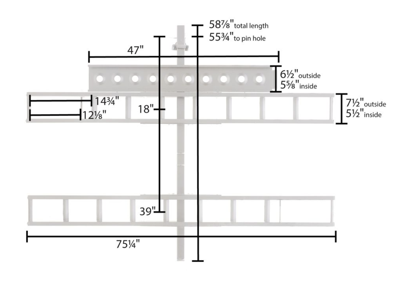 ApplePayCarrier is in good shape. No accidents. Measurements in one of the pictures. I will include a BlueOx 10" riser for $40 for your hitch if you want to mount this on a lower vehicle.