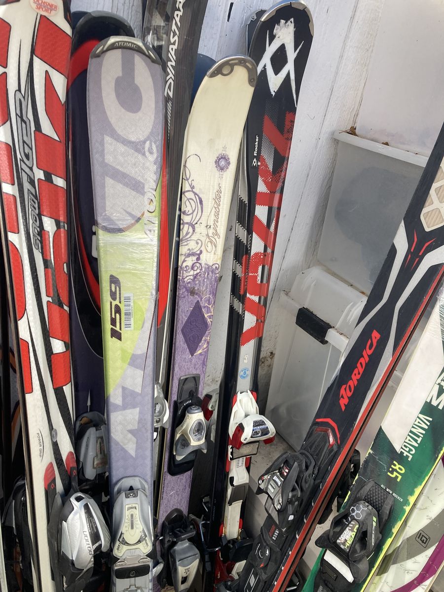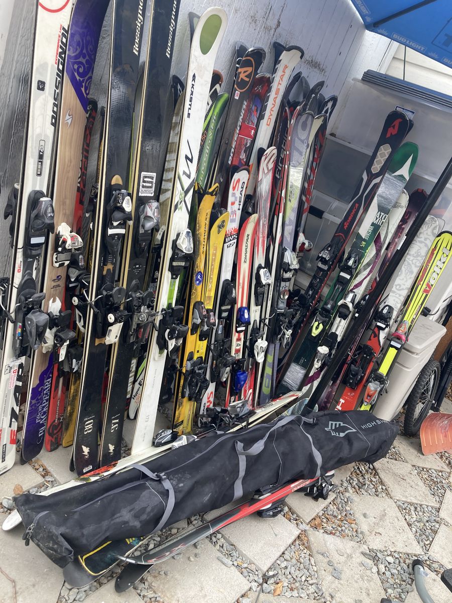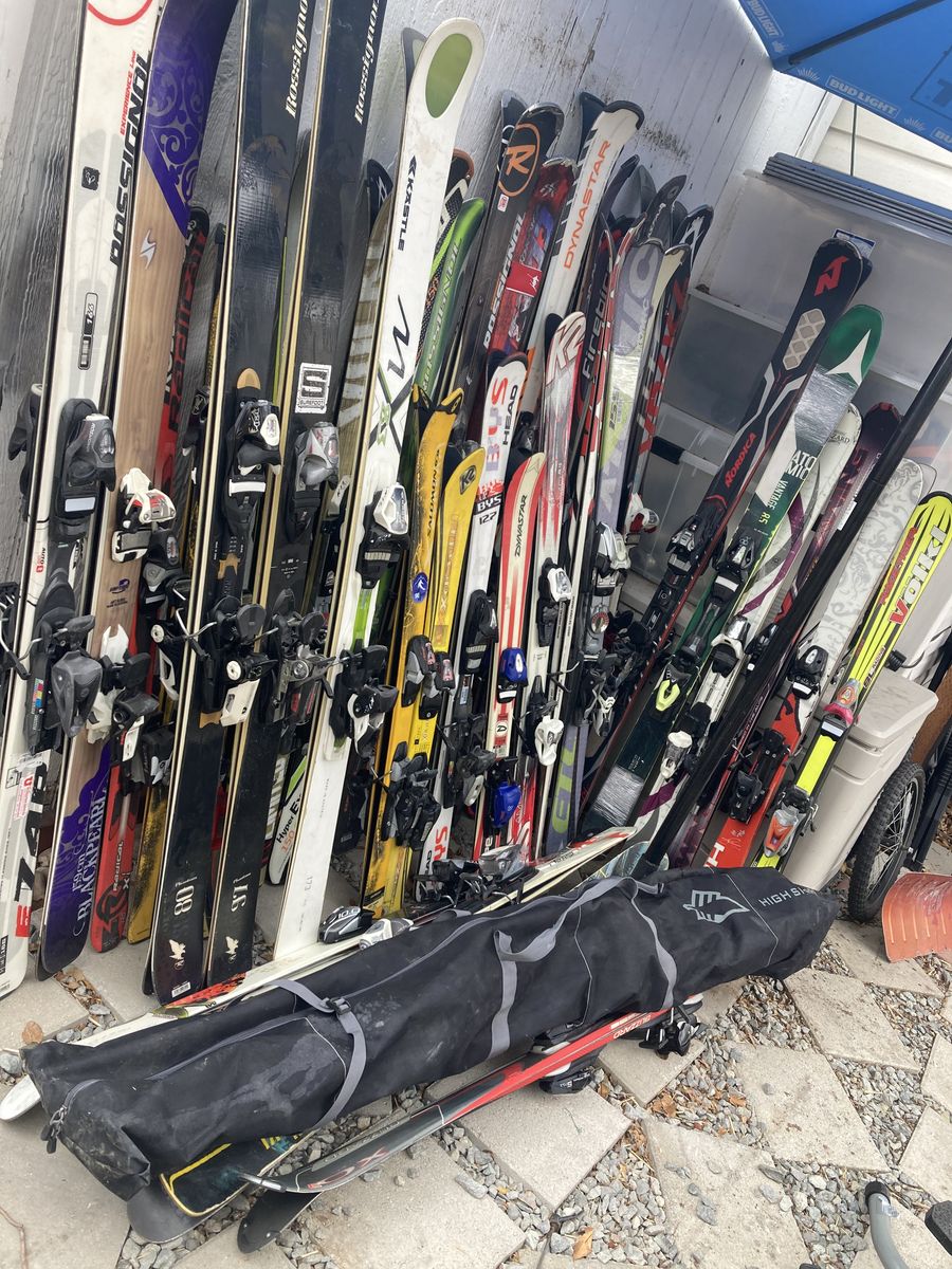 Roughly 40 skis they are the ones shown in photos they are complete and working some Of this stuff just need cleaning and a tune up I have had it stored in my storage