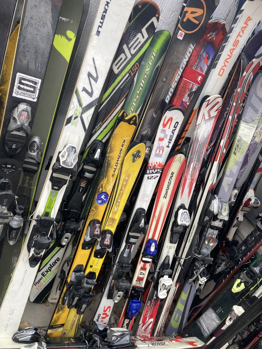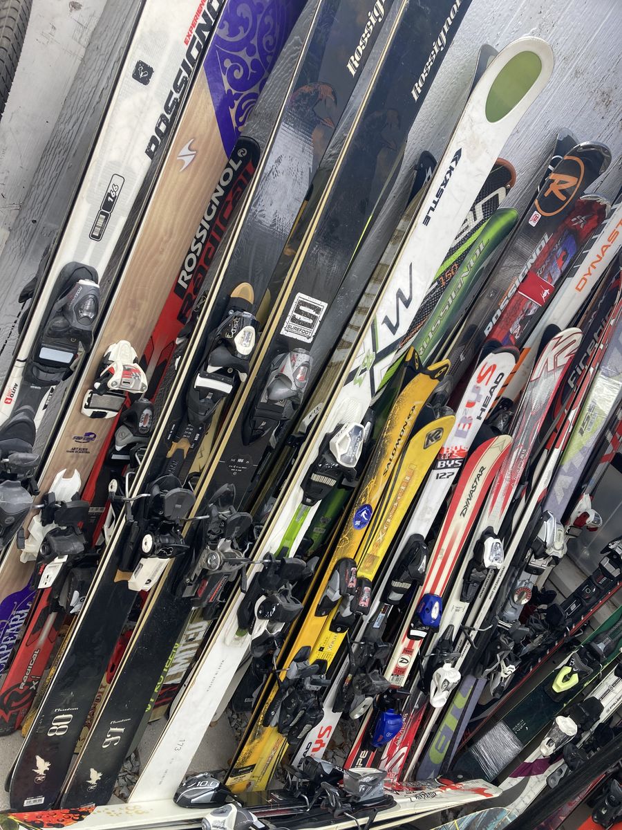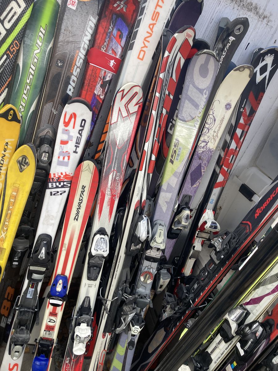 Roughly 40 skis they are the ones shown in photos they are complete and working some Of this stuff just need cleaning and a tune up I have had it stored in my storage