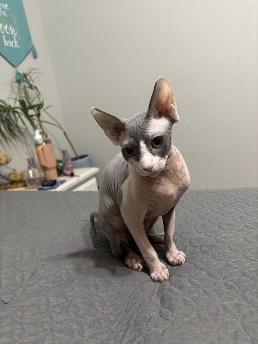 VenmoMax is a 9 month old Nutered Male. This has been a hard discsion for me and I will be picky on who he goes to. He comes with all of his supplie. I also would like him to go somewhere with another sphyx or even a cat.