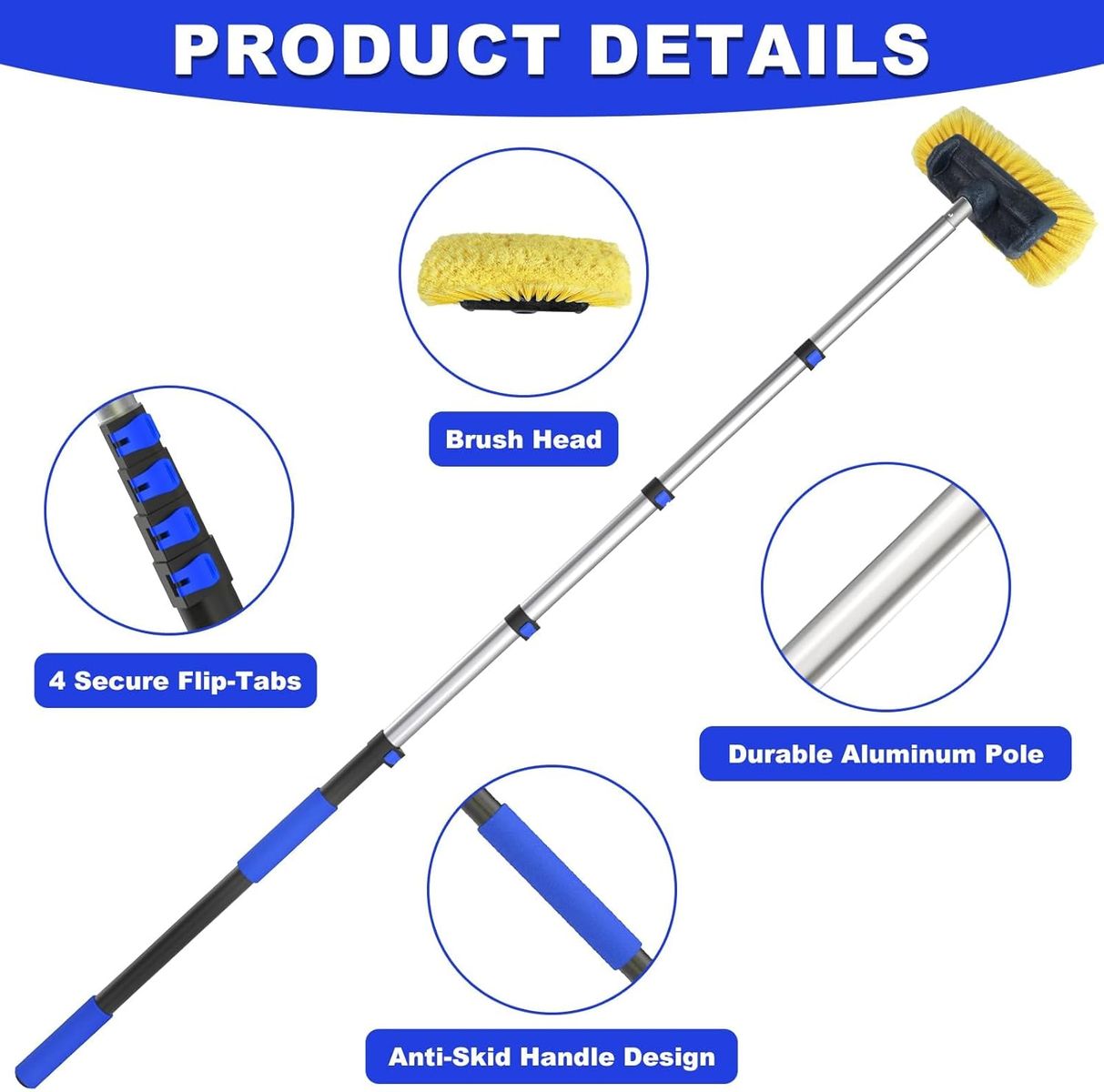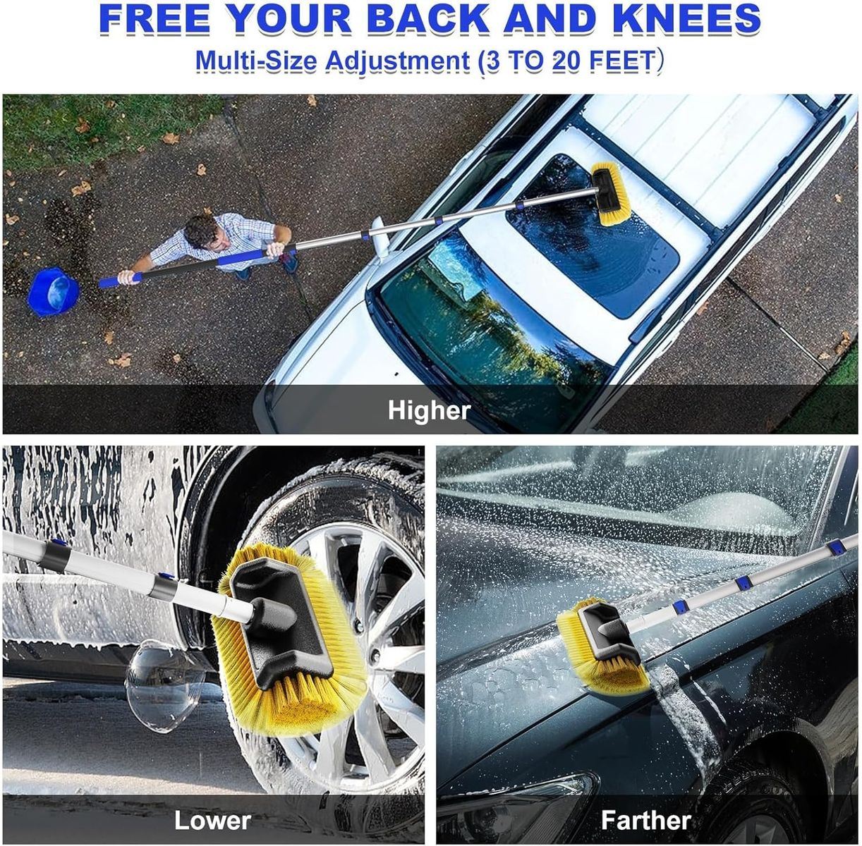Multi size adjustment - The car wash brush telescopic rod has multiple length modes that can be adjusted to different lengths as needed (3-20 feet). High quality aluminum makes it sturdy and durable, not only lightweight, but also prevents it from stretching or twisting.