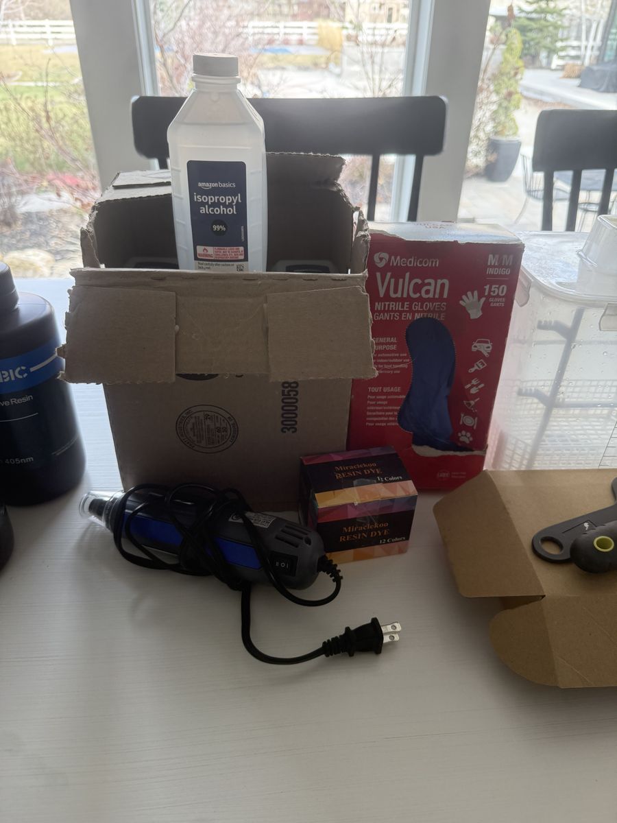 ZelleThis has everything you need, it has the washer and curing machine and 10 bottle of isopropyl alcohol and 5 bottles of resin also it comes with tools like a heating gun and resin dye