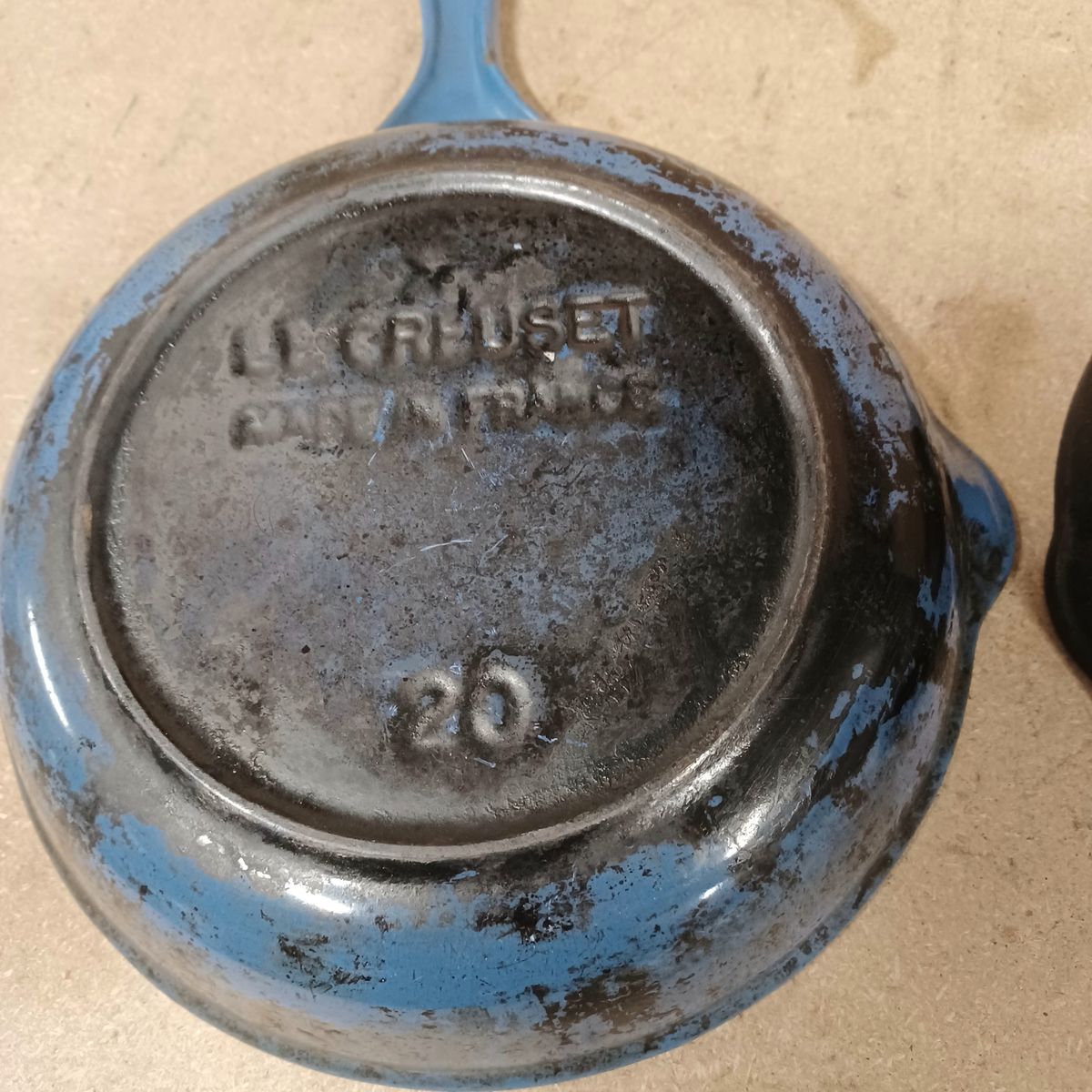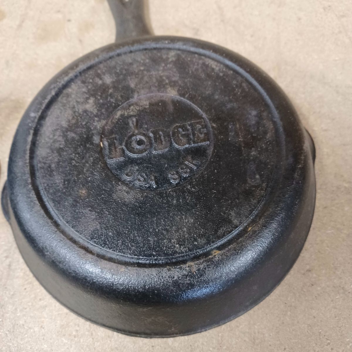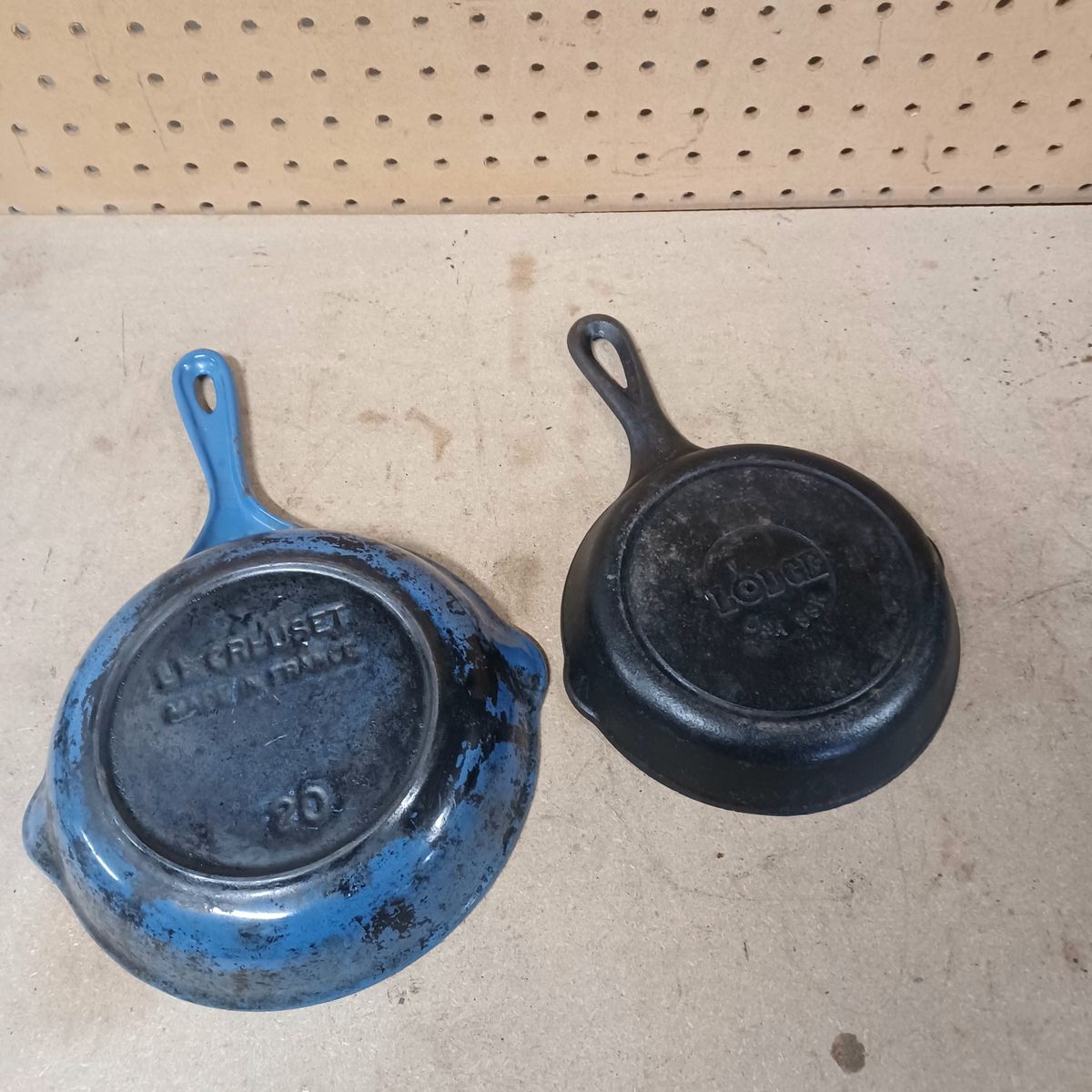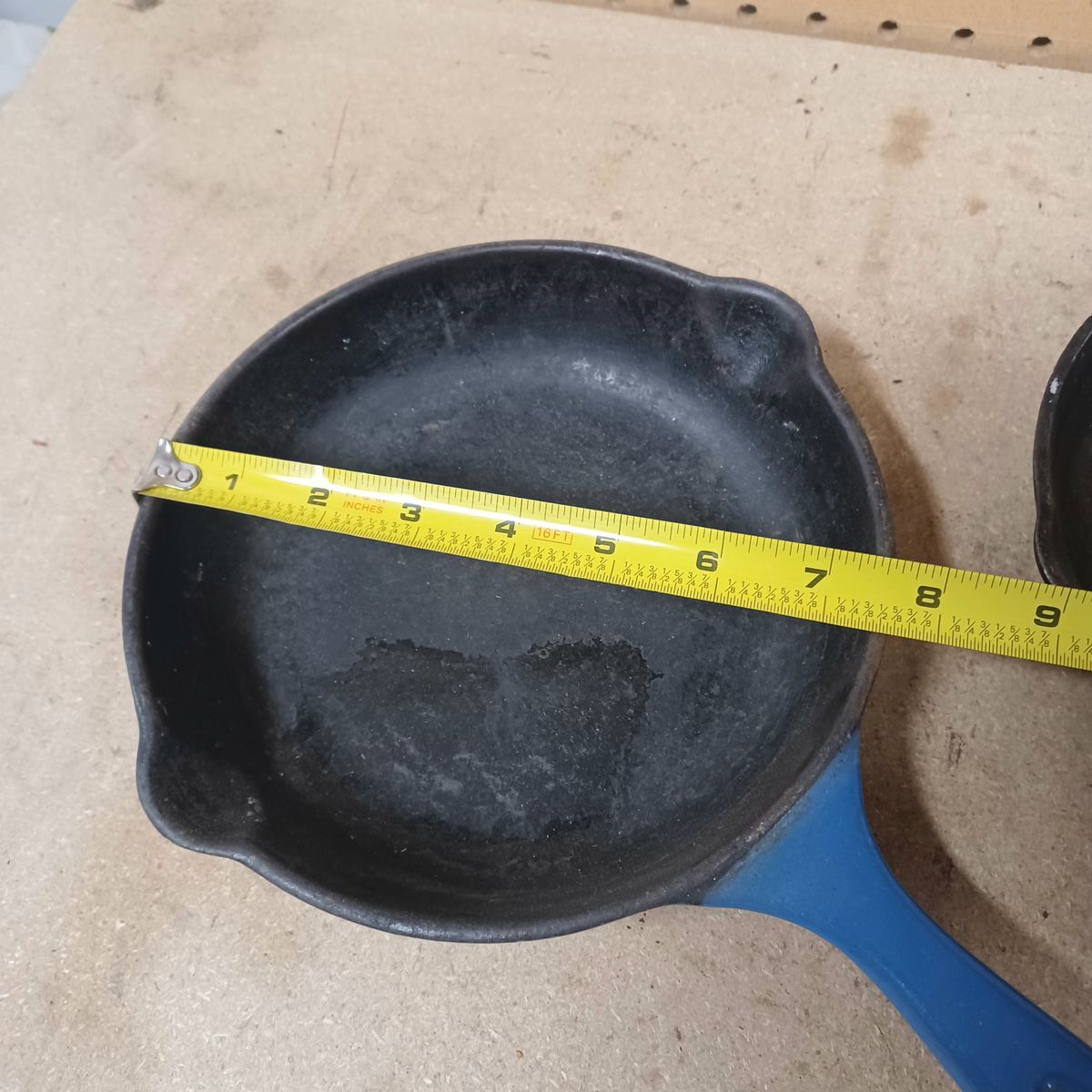 Two smaller skillets. Dimensions are shown. Both for $25 dollars.
