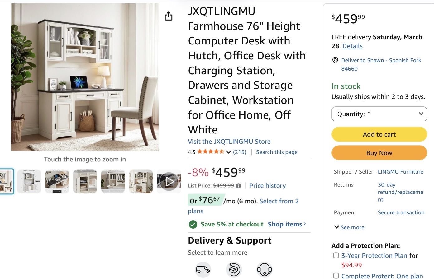 Purchased last Aug and gently used since then. This is like new, I’m just changing offices and no longer need this. Very solid construction. Purchased new on Amazon, this is selling for $450+.