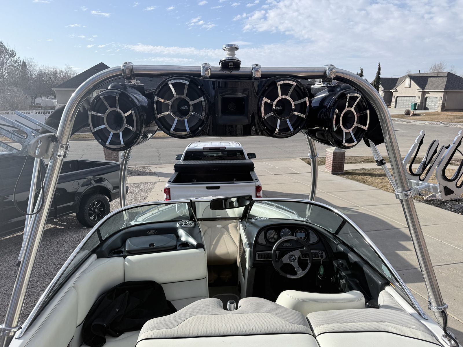 Original vinyl still in good shape. Has aftermarket stereo that is very loud (4 10s on the tower in addition to the stereo in the boat).