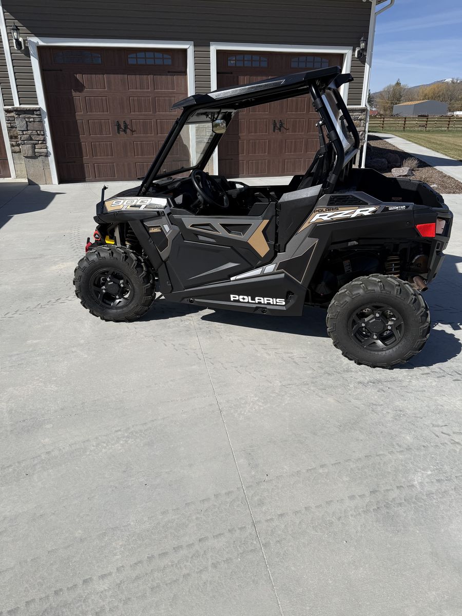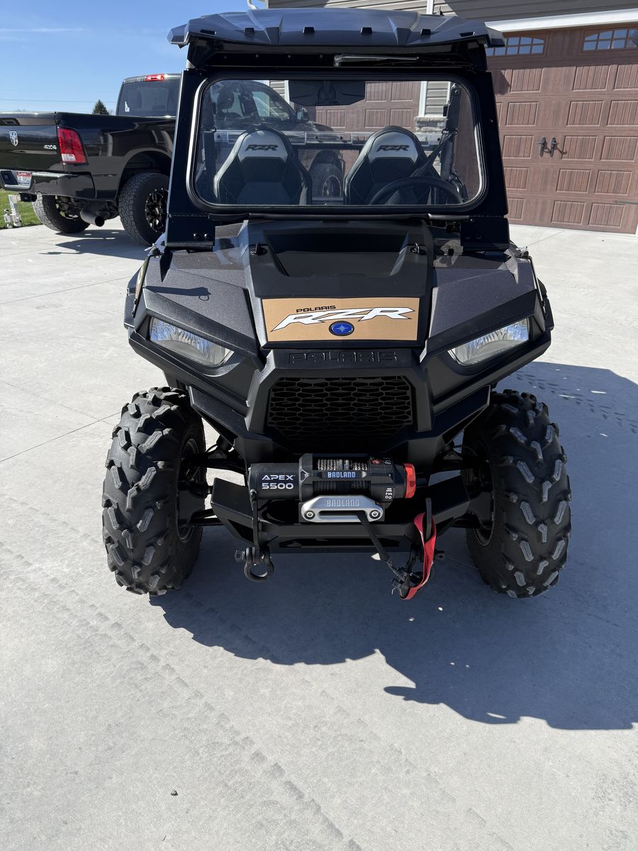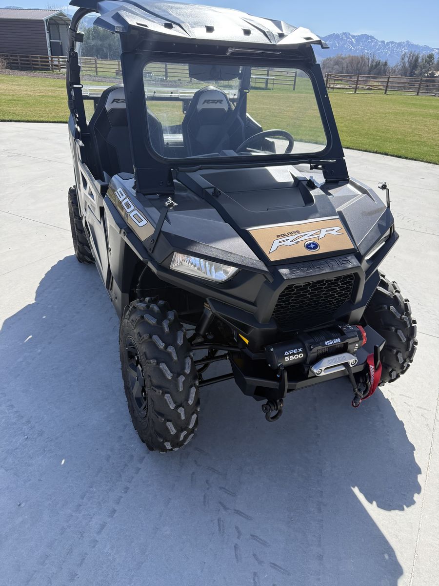 Extremely low mileage Rzr 900 trail. Year 2018 with 628 miles. Always garage stored. Has front mounted bumper with Badlands winch. Ryfab fold down windshield with wiper. Rear view mirror. Has roof and rear windshield installed. Tires are like new and also comes with an extra set of factory takes off tires.